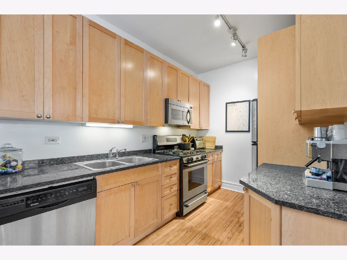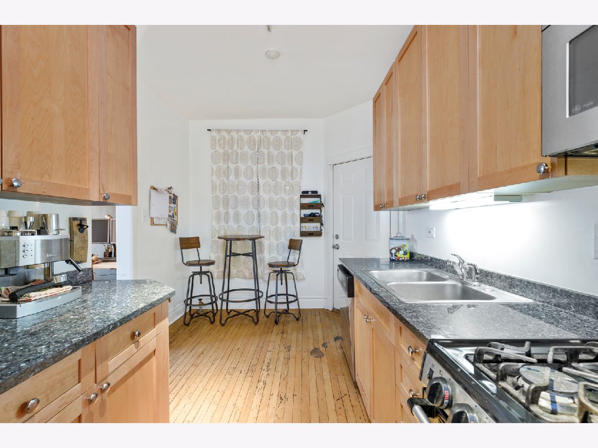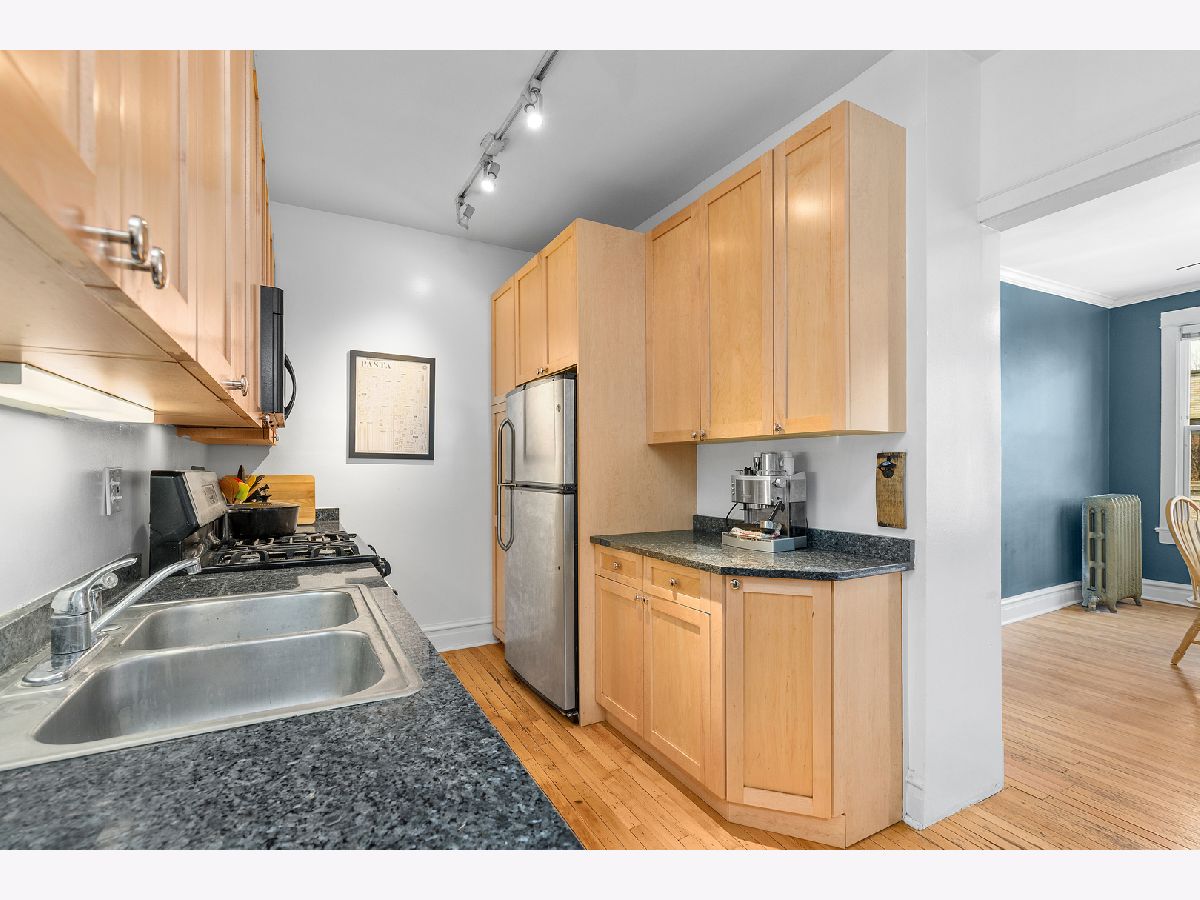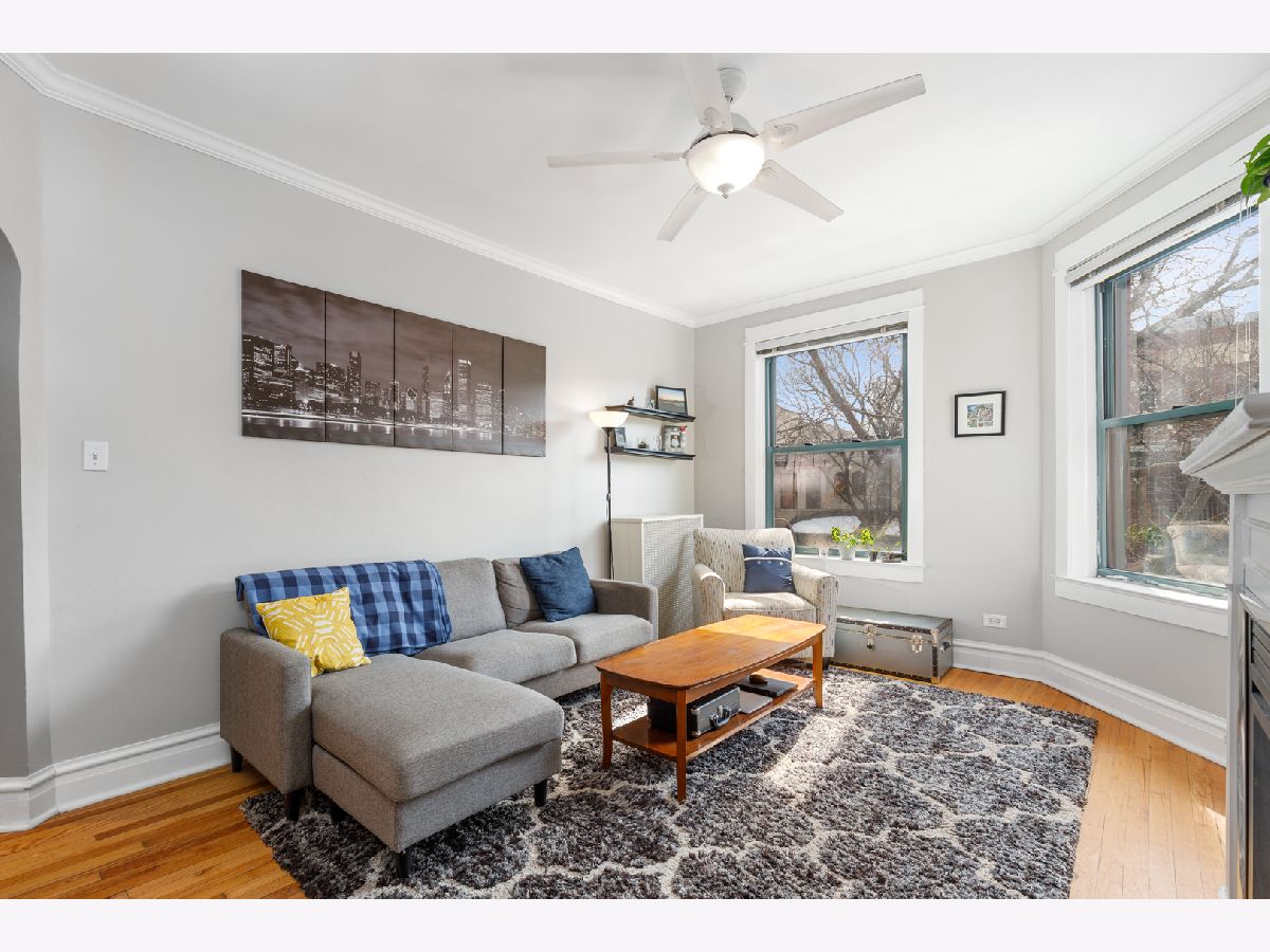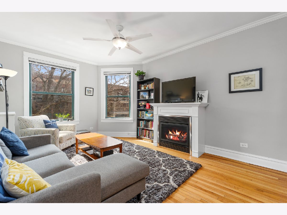 Live by the lake in this vintage 2 bedroom 1 bath condo on a quiet one-way tree lined street. The living room is flooded with light and has a ventless, gas fireplace. Hardwood floors throughout the unit. Enjoy the summers on your private balcony. The spacious dining room with a bay window offers plenty of room for a dining table and an office. Both bedrooms fit queen sized beds. The bathroom features a claw foot bathtub. The kitchen has granite counter-tops, maple cabinetry, and stainless steel appliances. 1 deeded exterior spot in a gated lot included. Free laundry in the building and a huge storage locker included. Enjoy Lake Michigan, Montrose Dog Beach, Foster Beach, Uptown entertainment district, shops, cafes, restaurants, buses, and the CTA red line train.