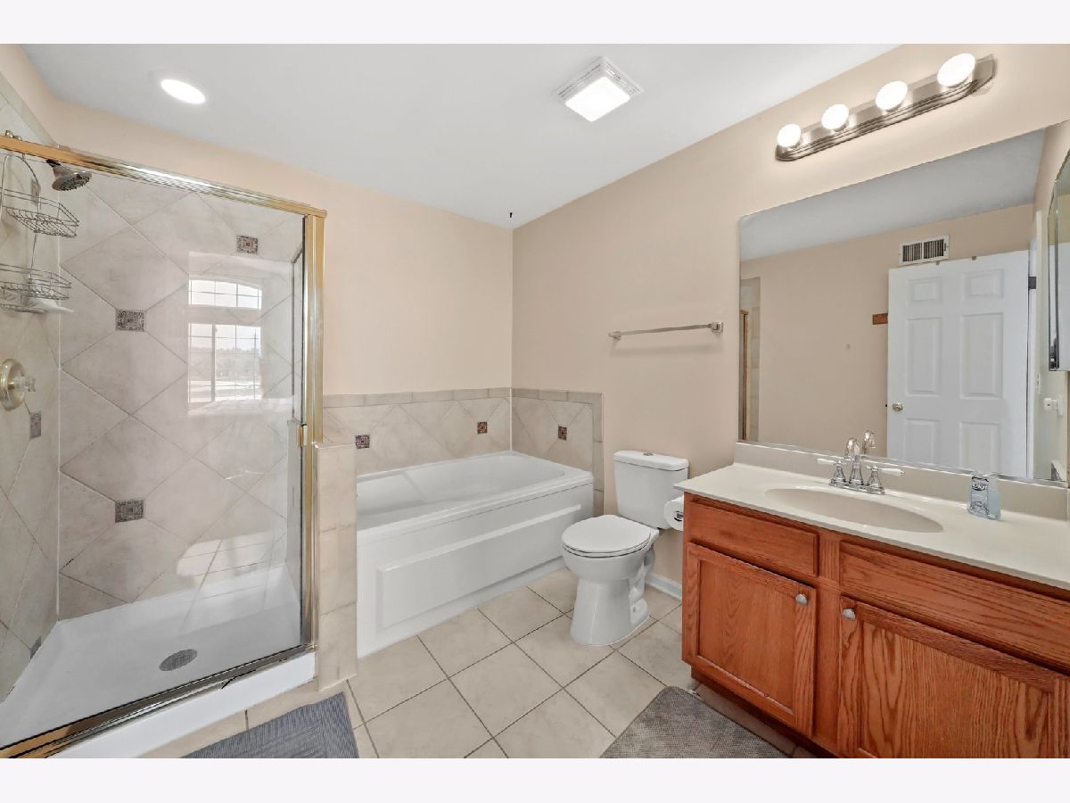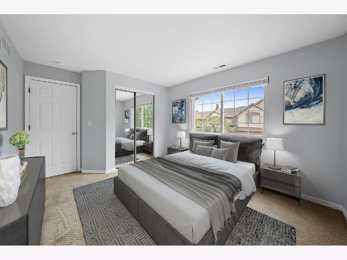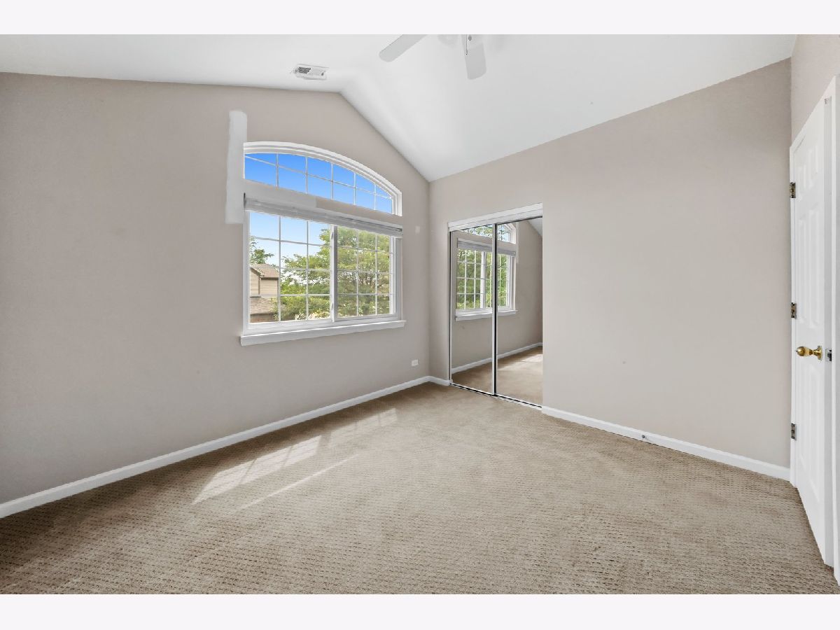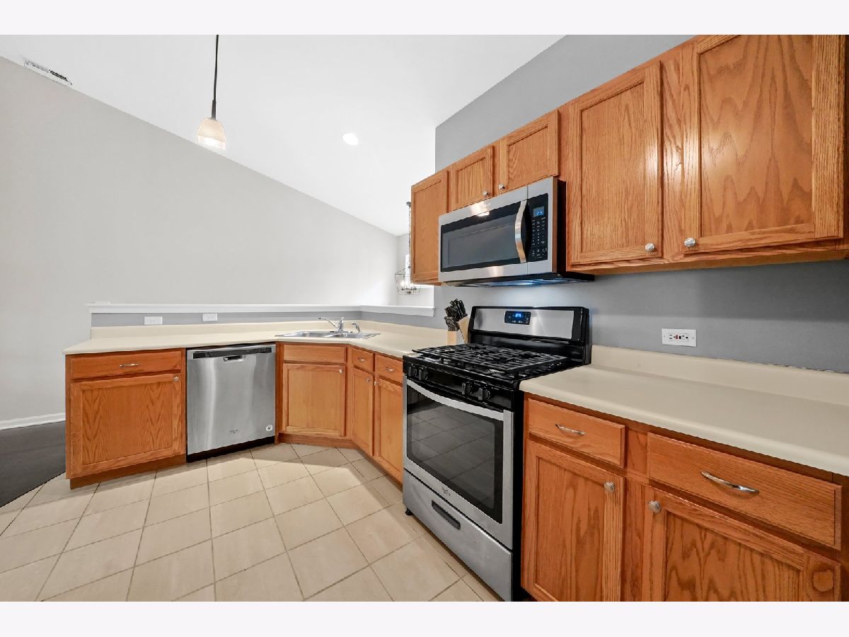 Gorgeous and turn-key townhome in the fantastic Woodlands of Oakhurst Subdivision! This cozy home features 3 bedrooms, 2 bathrooms and an attractive open concept floor plan. Up the stairs, you're greeted by the great room with vaulted ceilings, wood laminate flooring, gas fireplace and an abundance of natural light. The spacious kitchen boasts plenty of cabinet space, closet pantry, stainless steel appliances and opens into the dining room with new modern light fixture and sliding glass doors that lead onto the balcony - perfect for grilling. Primary Bedroom also offers vaulted ceilings as well as walk in closet with organizers and Primary Bath with tub and separate shower. Additional two rooms are perfect for bedrooms or home office. Main floor laundry room. Private entry with access to 2 car garage. Just steps away from pool/clubhouse and minutes from I88, Metra, park, shopping and much more.