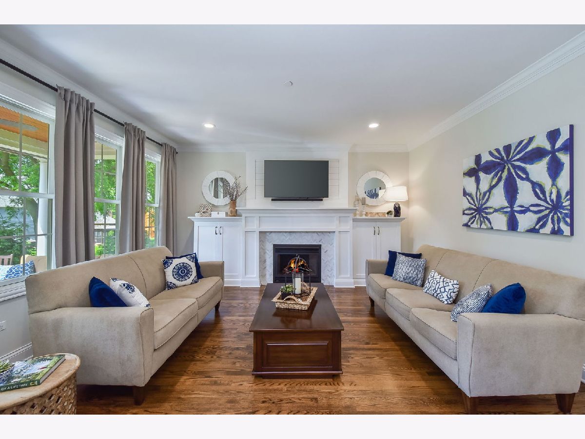 This sophisticated home offers a welcoming, relaxed elegance for owners and guests. Built in 2016, it has been thoughtfully maintained and enhanced by the current owners, and quality in craftsmanship and materials is apparent throughout the residence. The main floor features 9 foot ceilings, crown molding, paneled wainscot, expansive windows and an ideal floor plan for indoor-outdoor living. The kitchen, breakfast room and family room span the north side of the home and enjoy picturesque views onto the covered patio, gardens and yard. The family room is anchored by a striking fireplace with wood mantle, built-in cabinets and shiplap-paneled wall. The kitchen has custom cabinets with lighting, stainless steel appliances and seating at the center island in the breakfast room. A large Butler's pantry provides additional storage and counters for entertaining. Both the dining and living rooms enjoy airy, sunny views and are designed to be used often. A large half bath and mudroom sit inside the garage entrance. The second level includes four spacious bedrooms and a large laundry center with walk-in closet. The main bedroom has two walk-in closets and a luxurious ensuite bath with soaking tub, separate shower, water closet and dual sink Carrara marble vanity. The three additional bedrooms are all large in layout with walk-in closets and a hall bath. The unfinished lower level features 9+ foot ceilings and a bathroom rough-in. Use as is -ideal for play area, exercise room and casual seating- or finish based on your needs. Outside a variety of trees, shrubs and perennials display beauty in all seasons. Construction highlights include Anderson windows, Trane dual-zone high efficiency heating/AC, cellulose insulation, Hardie Board cement siding and architectural-grade 30 year roof. This private cul-de-sac enjoys a special camaraderie among neighbors and is convenient to schools, dining, shopping, downtown Glen Ellyn and interstates. MULTIPLE OFFER SITUATION. ALL OFFERS DUE BY NOON SUNDAY JUNE 12