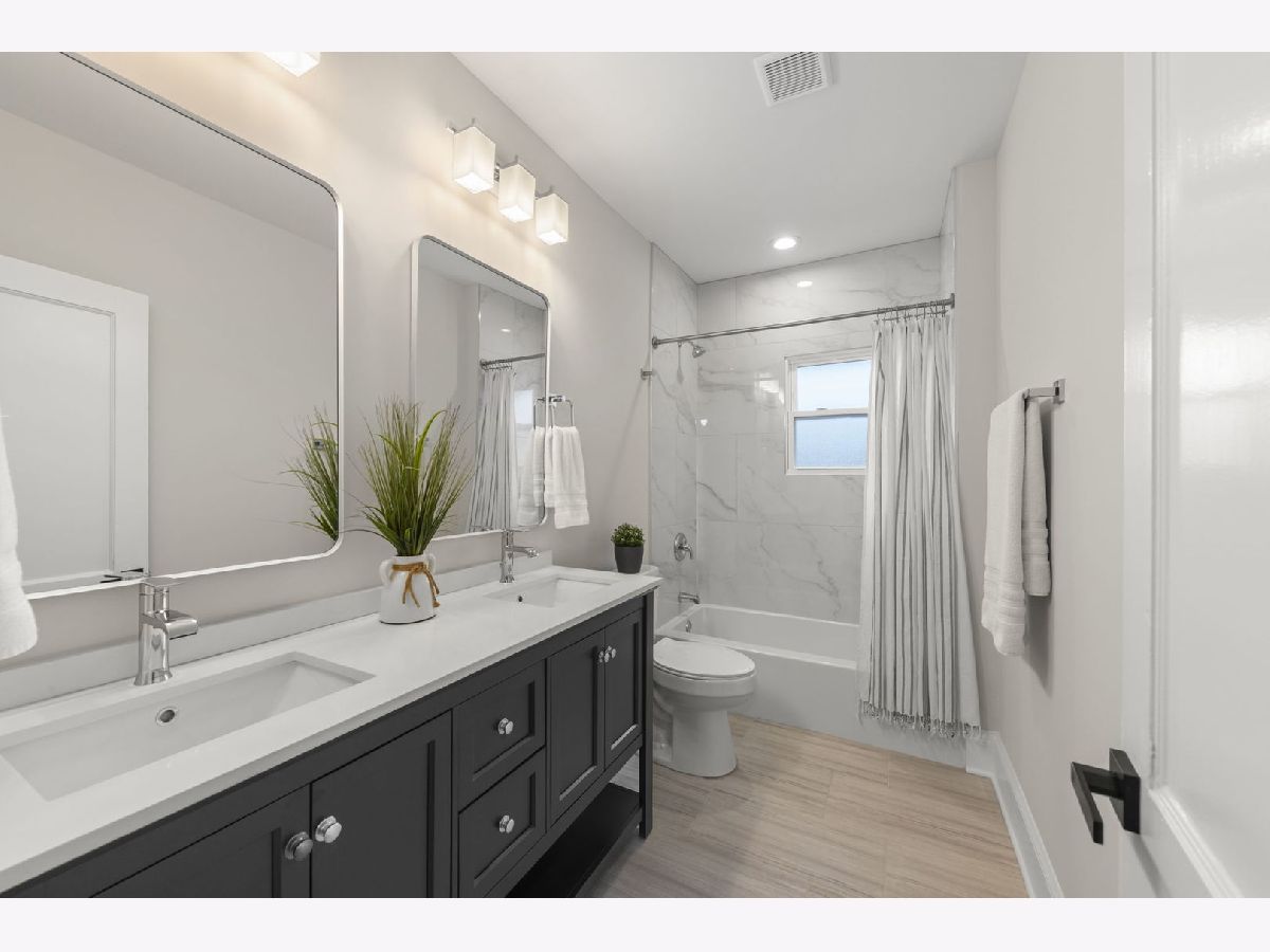 A classic Oak Park American foursquare that has been fully renovated, bringing a 1906 build to 2024. Boasting tremendous curb appeal and our levels of finished space, this gut rehab was done tastefully. The exterior has hardie board siding, windows, roof, and paint to both front and back porches. The main floor layout has been reimagined with a half bath and a brand new kitchen. Enjoy plenty of cooking space and an island stove with overhanging exhaust. Upstairs you'll find three bedrooms, a full bath, and a laundry room with access to the finished third level bonus room. The basement is finished with a drain tile waterproofing system, a bed with an egress window, and full bath. All mechanicals are brand new; forced air, central AC, and sprinkler systems. Extended back yard with a two car garage with alley access. Don't miss the Wenonah Park playground around the corner. Please see private remarks regarding access!