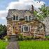 This is an absolutely charming home. So warm and inviting with it's hardwood flooring on the 1st floor, woodburning fireplace and wonderful sunroom. This kitchen has been updated with white cabinets and stainless steel refrigerator and oven/range. Large eating area has sliding glass doors that lead to a 2 tiered deck with a privacy fence overlooking a fully fenced yard and a 2 car garage with newer cement driveway (driveway is entered on Harrison). Three bedrooms on 2nd floor with an updated bath. The 3rd floor has lots of light and could be used as a family room, office or hobby room. Basement is partially finished with an updated full bath and great storage. Windows have been replaced, roof has high end fish scale shingles. Freshly painted interior. Easy walk to downtown shopping, train station and parks. Don't miss seeing this wonderful home in a great friendly neighborhood. Has been cleaned and sanitized and is all ready for the next owner. Gas Light "As is".