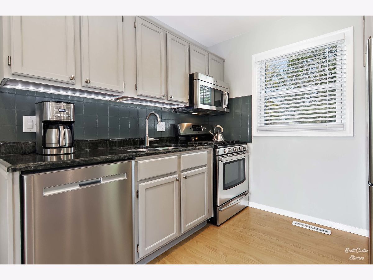 Centrally located Coventry home with 3 Bedrooms and 2 Full Bathrooms. Super cute MODERN UPDATE with fresh neutral paint, white trim, and flooring! Eat-in Kitchen features GRANITE COUNTERTOPS, Oak Cabinetry, tile backsplash, and a large CENTER ISLAND with breakfast bar seating. Kitchen opens to the Living Room and both offer beautiful HARDWOOD FLOORING and recessed lighting. Access the Huge FENCED BACKYARD and PATIO from sliding doors in the Eating Area. GAS FIREPLACE in sunny living room. Lower level includes spacious family room, laundry room, and storage space. Cozy carpeting in the bedrooms upstairs and UPDATED BATHROOMS. Attached garage on peaceful tree-lined street. So close to schools, parks, and downtown Crystal Lake with shopping, dining, and Metra train.