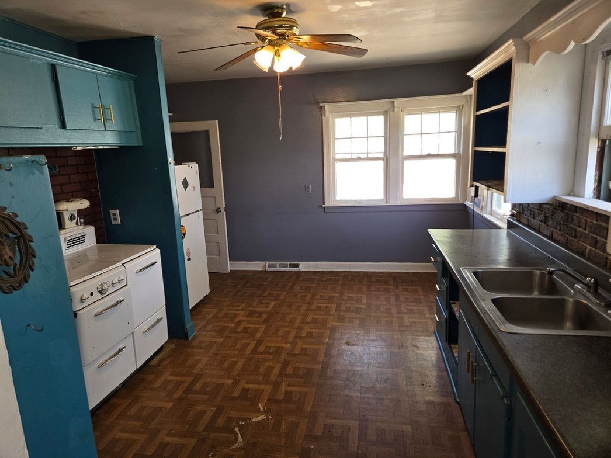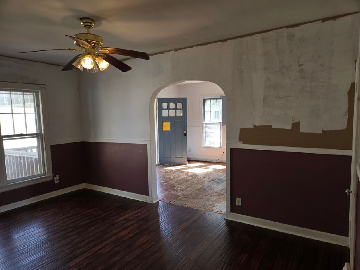 This 3-bedroom, 1-bath, 2-car-garage property has excellent potential with the right investor. It features a fenced-in backyard with a patio and a shed behind the garage, which is a possible additional storage area with a little TLC. The front yard has lovely established landscaping with flowers and a beautiful wooden fence! There is a large kitchen with many cabinets and shelves, the always popular "Window over the kitchen sink!" and a ceiling fan with lights, too. The spacious dining room has a beautiful arched doorway leading into the living room, a ceiling fan with lights, and large windows letting in natural light. The good-sized living room has many large windows overlooking the front yard. A charming covered front porch is sure to please!