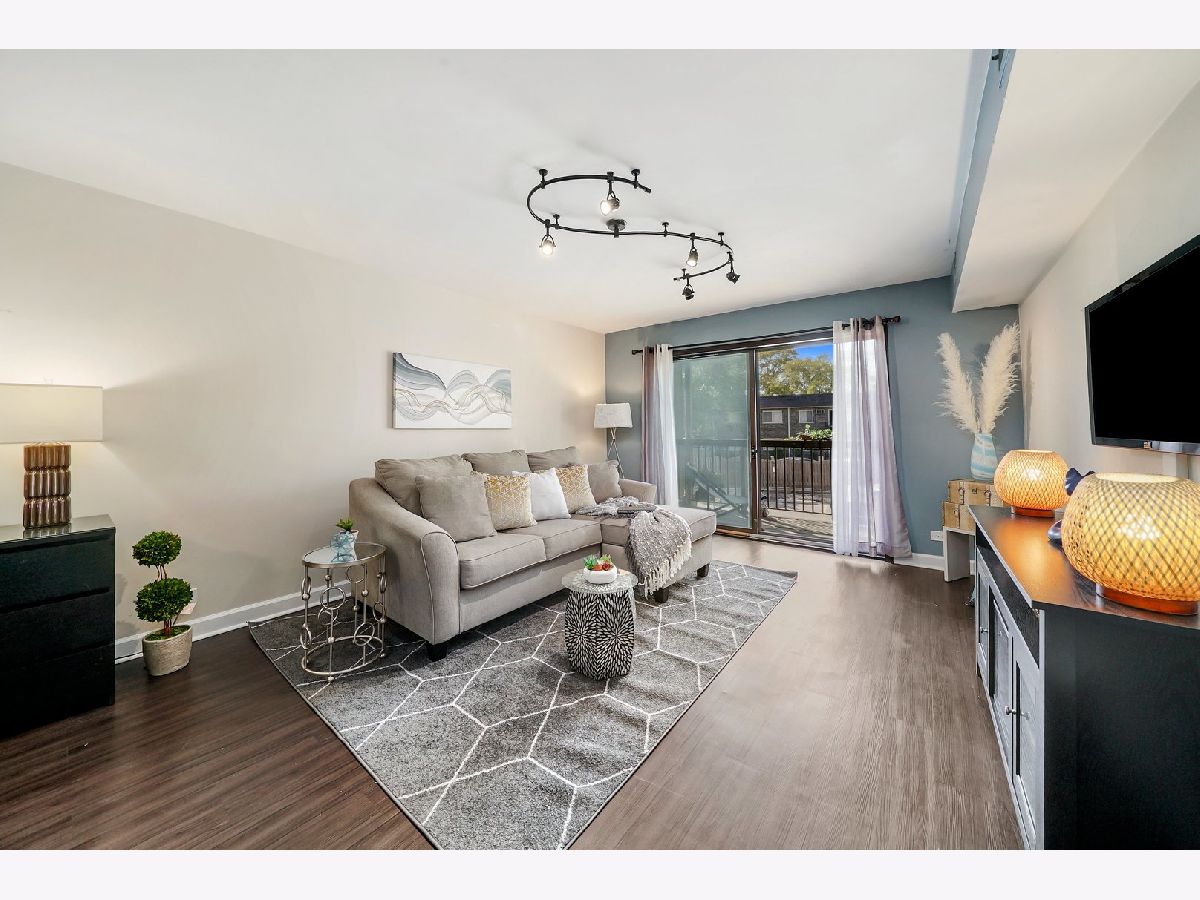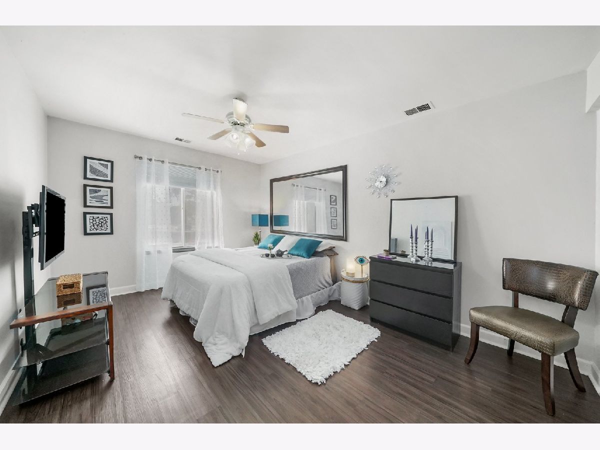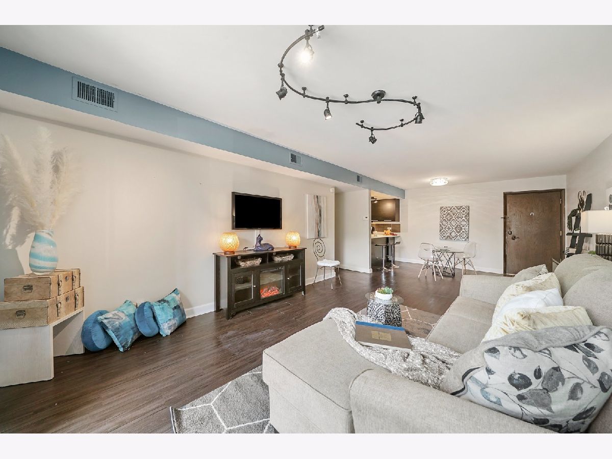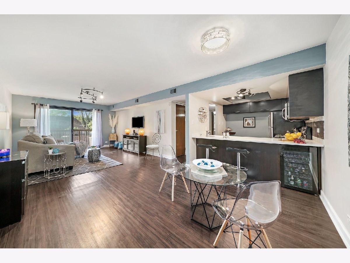 Interior designer remodel and staging of - 2 bedroom 1-1/2 bath condo. Soft close European style cabinets in kitchen. Bathrooms feature Maple cabinets with (1) tall linen. Steller White Quartz with sparkles in kitchen and Pearl Blue Granite in bathrooms. Newer S.S. appliances + quiet Bosch dishwasher. Dining room boasts 18 bottle wine/beverage chiller and 1 USB wall outlet for charging phone/accessories. Easy care vinyl plank flooring in living/dining/kitchen/hall/master and 1 bathroom. Main bathroom has porcelain tile walls & floor with adjustable shower head and niche. Each bath has recessed mirrored medicine cabinets. Updated lighting and ceiling fans above beds. Elevator building, secure storage area, same floor laundry and onsite parking. Club house with party room, indoor swimming pool and sauna. Great Homewood/Flossmoor schools just steps away. EZ access to shopping, dining and major expressways. NO RENTALS ALLOWED. CONVENTIONAL FINANCING AND CASH ONLY. Small cats/dogs ok.