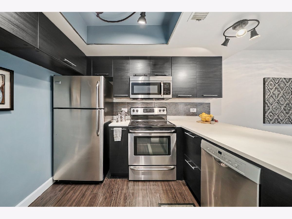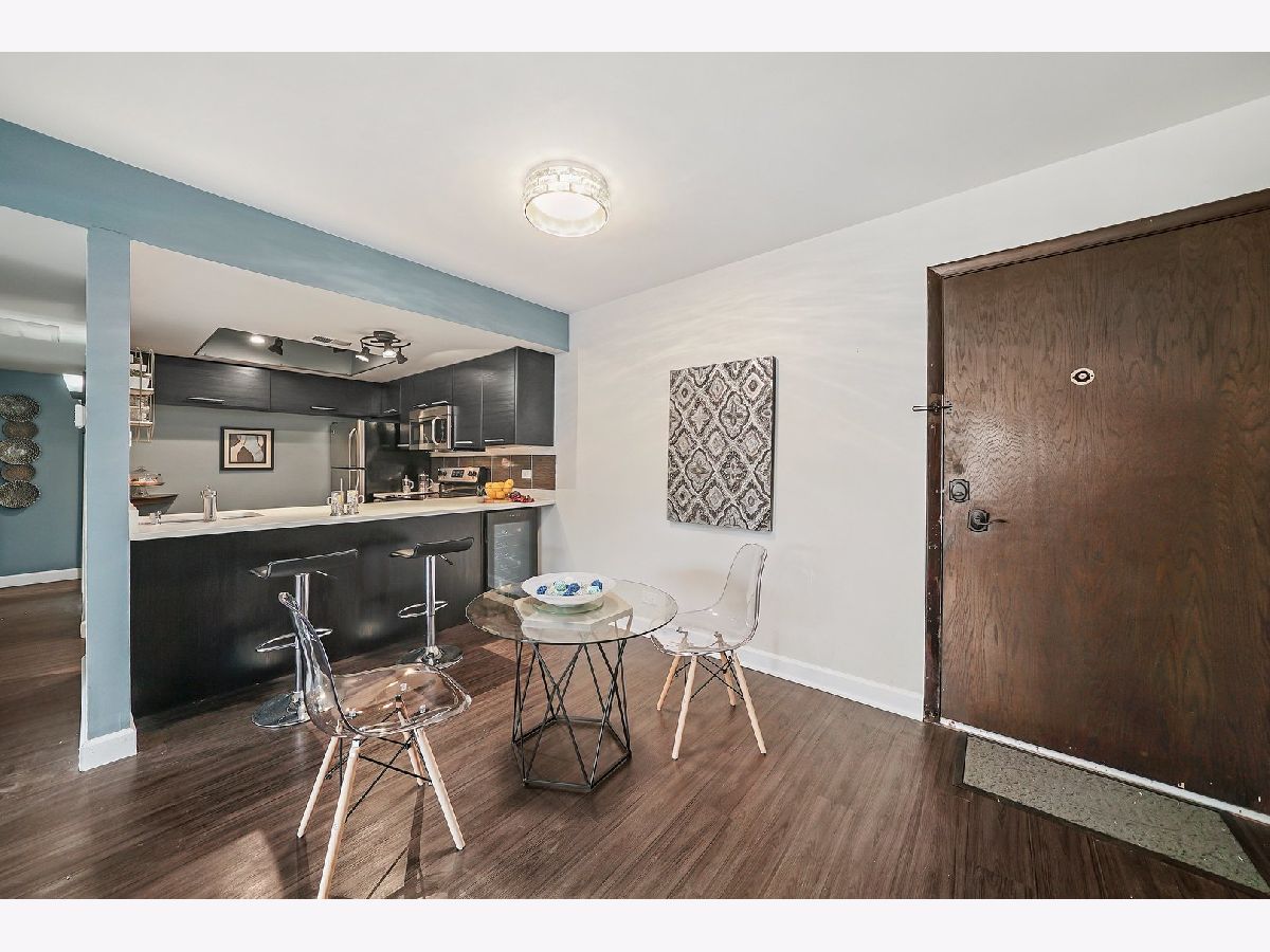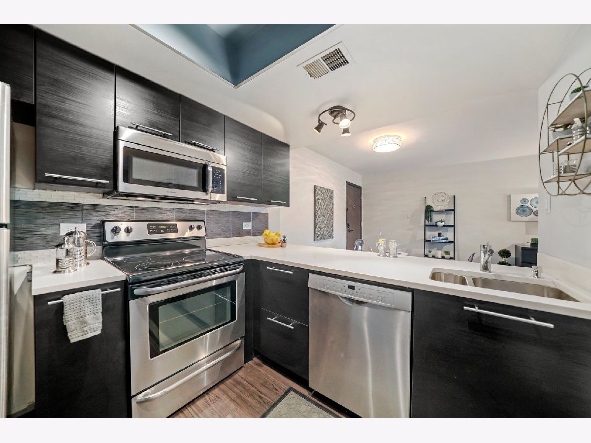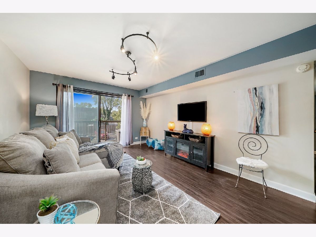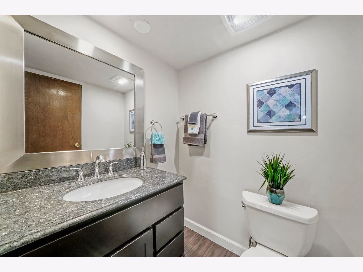Interior designer remodel and staging of - 2 bedroom 1-1/2 bath condo. Soft close European style cabinets in kitchen. Bathrooms feature Maple cabinets with (1) tall linen. Steller White Quartz with sparkles in kitchen and Pearl Blue Granite in bathrooms. Newer S.S. appliances + quiet Bosch dishwasher. Dining room boasts 18 bottle wine/beverage chiller and 1 USB wall outlet for charging phone/accessories. Easy care vinyl plank flooring in living/dining/kitchen/hall/master and 1 bathroom. Main bathroom has porcelain tile walls & floor with adjustable shower head and niche. Each bath has recessed mirrored medicine cabinets. Updated lighting and ceiling fans above beds. Elevator building, secure storage area, same floor laundry and onsite parking. Club house with party room, indoor swimming pool and sauna. Great Homewood/Flossmoor schools just steps away. EZ access to shopping, dining and major expressways. NO RENTALS ALLOWED. CONVENTIONAL FINANCING AND CASH ONLY. Small cats/dogs ok.