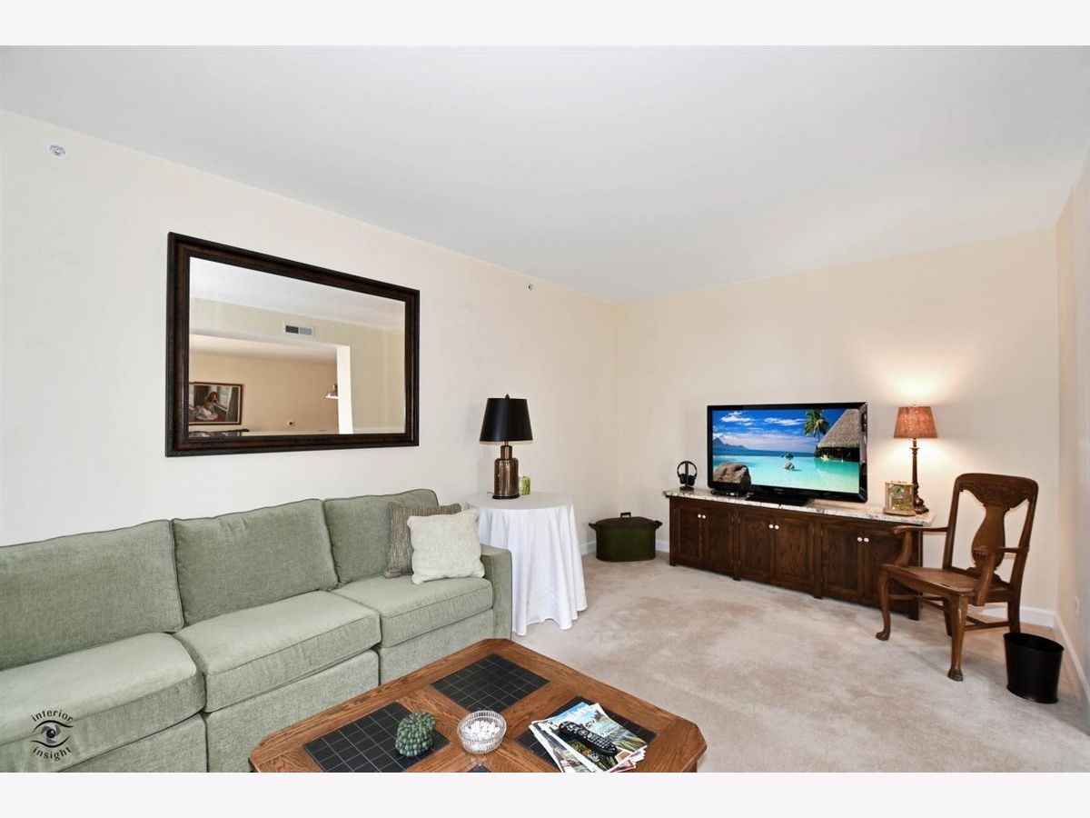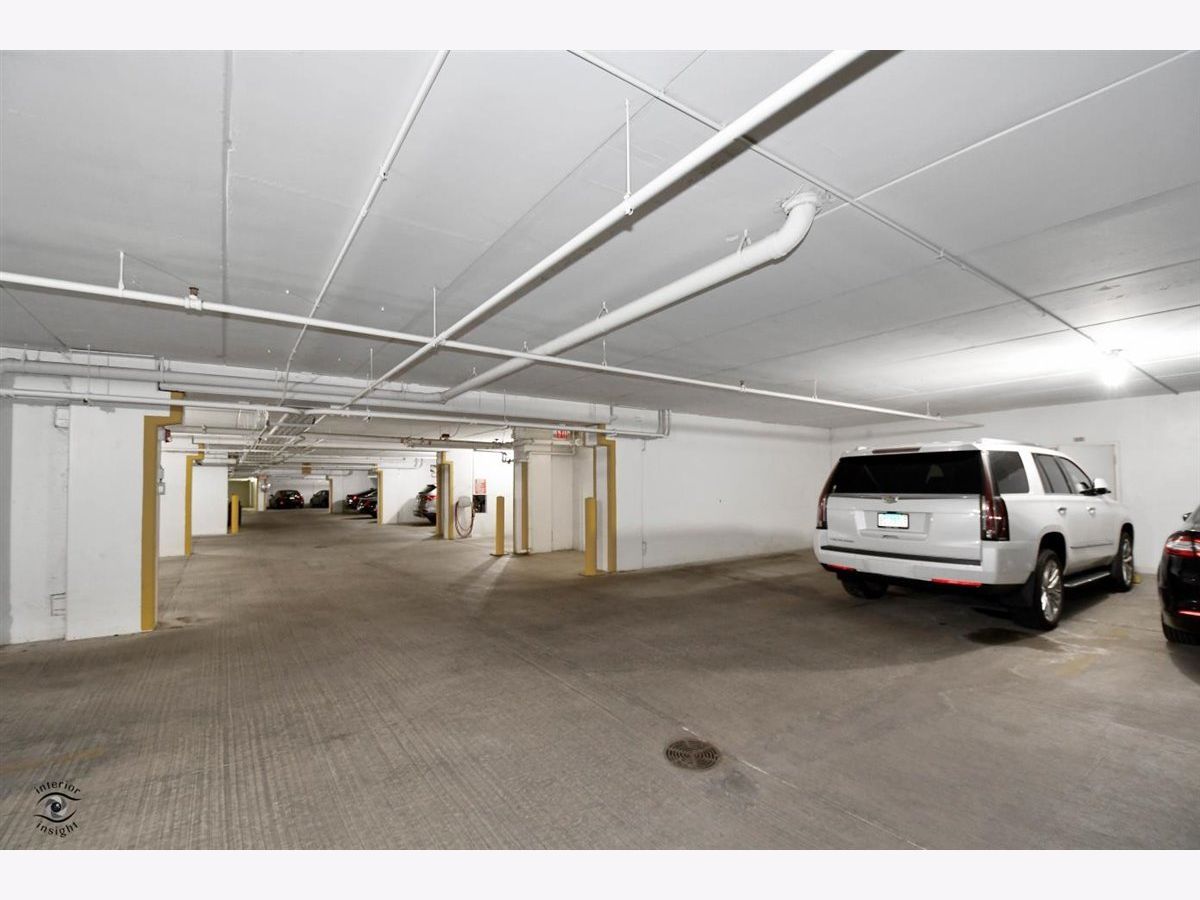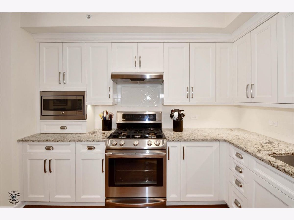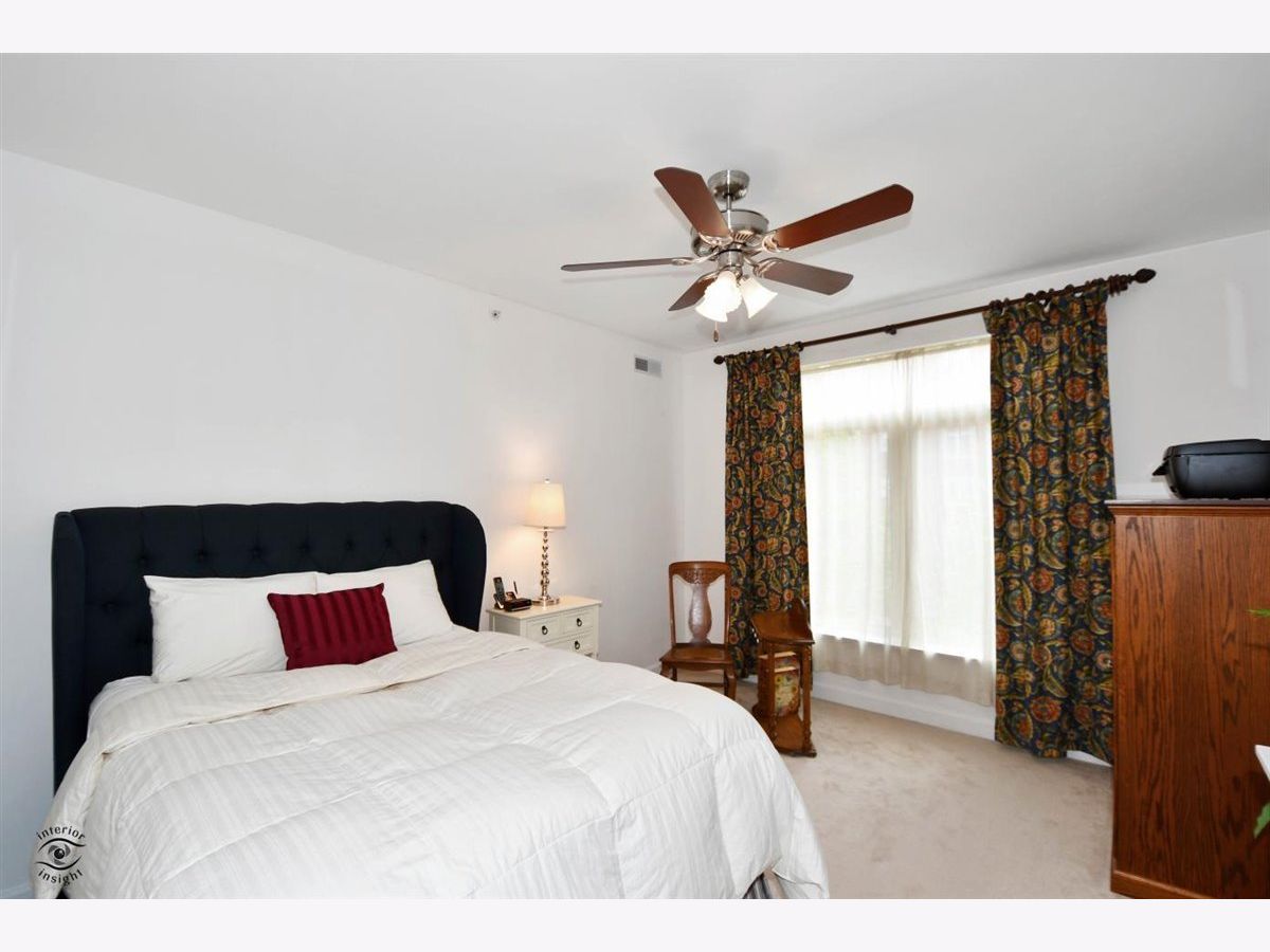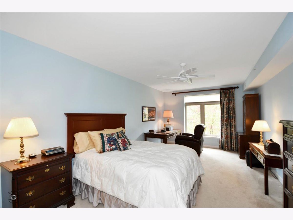 Rarely-available 2 bedroom plus den, 2 bath at The Woodlands of Morton Grove. (Not on train side of the building.) Bonus-private (appx 12 x 6) storage room on same floor. Gorgeous kitchen remodel 2015-16. Beautiful heated hardwood floors (floating) in kitchen, living and dining rooms and hallway. Kitchen boasts rich dark wood granite island with storage, contrasted with white cabinetry, also with granite counters. Extra-large swing out lazy susan for small appliances, pull-out garbage container. All stainless steel appliances: Bosch dishwasher, LG refrigerator, LG 5-burner oven/range, Zephyr exhaust fan & GE microwave. Lovely custom lighting (dining room fixture on dimmer) & subway tile backsplash. Living room with south-facing balcony. Den opens off living room with duet blinds. Front hall closet houses furnace and a/c - 3 years. Bedroom 2 with ceiling fan/light and walk-in closet with wire organizers. Hall bath with pedestal sink, tub/shower. Master suite features walk-in closet, duet blinds, ceiling fan and bath with separate shower and linen closet. Laundry room with 2020 GE washer/dryer, wash sink & cabinets. Garage space on lower level of 2 tier heated garage. Second large storage space adjacent. Garage also has a car wash stall. A truly beautiful condo.