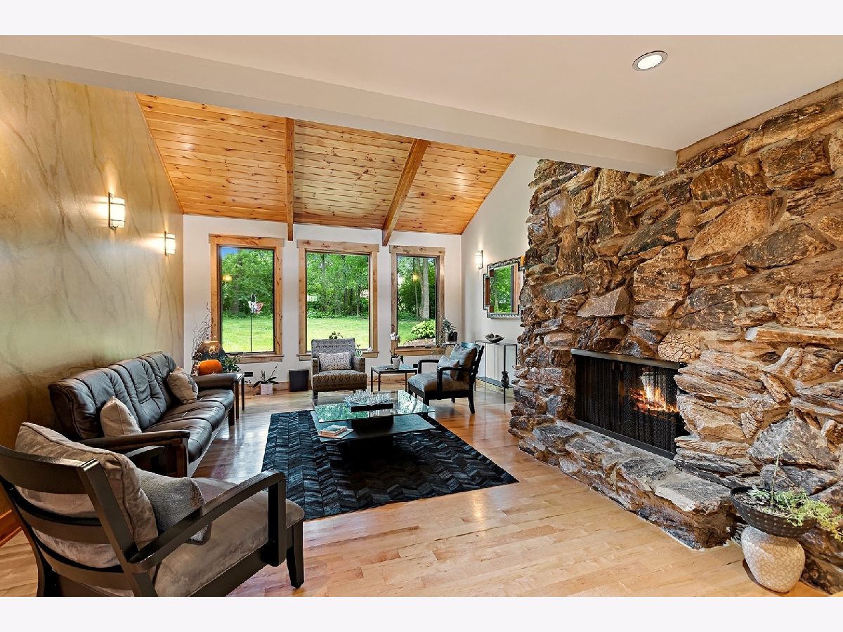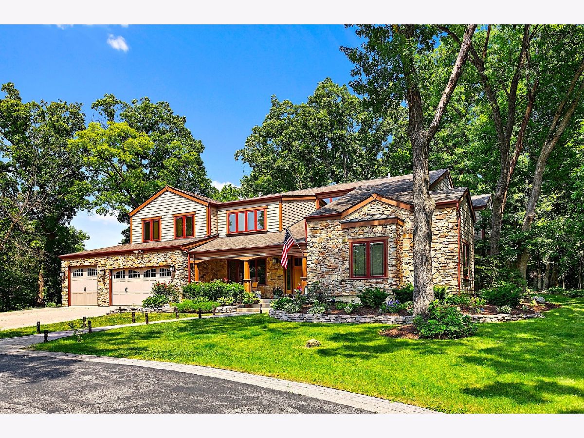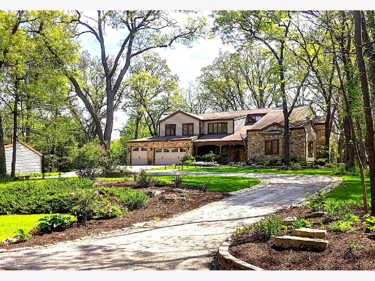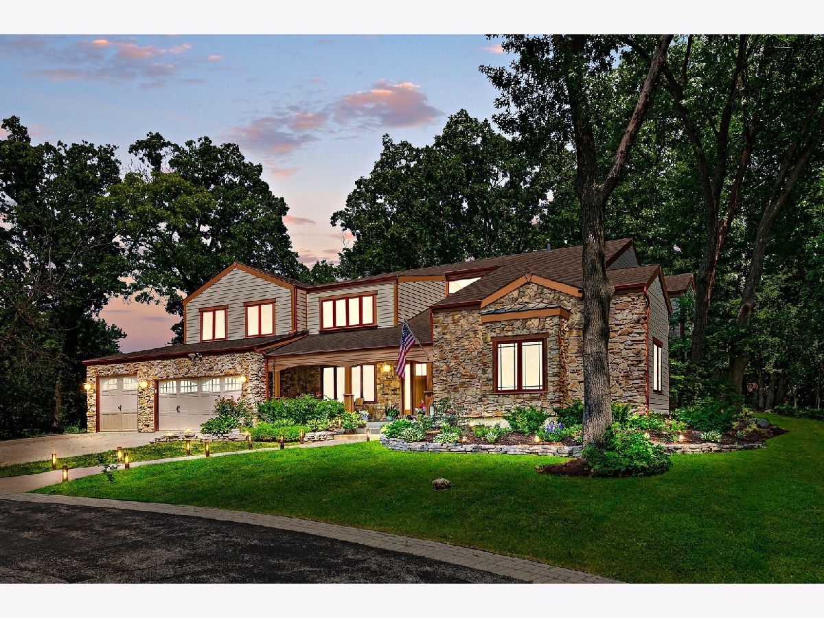 A hidden treasure! Very exclusive, Yellowstone Lodge-inspired, private luxury home on 1.5 acres wooded land in Woodridge with a Naperville address. Amazing lot surrounded by nature and majestic tall trees. Incredible value with many expensive upgrades - the whole place was upgraded, extended, & rebuilt in 2010. Impressive entrance at the end of the street, with a circular driveway that can park over 10 cars. Classy front porch with stone walls, wood-panel ceiling with recessed lights, and an exotic extra-wide entry door. Two-story foyer with a major wow factor preserving a unique lodge aesthetic with distinguished woodwork. Large formal Dining Room with crown molding, recessed lights & custom painted. The Living Room has a gorgeous high wood-panel ceiling, triple picture windows to the backyard, and an astonishing double-sided natural stone fireplace. Huge kitchen with custom warm cherry cabinets, beautiful granite countertops, high-end appliances, breakfast island, and a built-in China showcase. Well-built mudroom attached to 3 car garage. Den has a built-in gas fireplace & showcase, with windows looking out to a treehouse with a rock-climbing wall. Large Family Room with stunning stone fireplace, built-in bookshelves & desk. A large guestroom suite (second master suite) on the first floor with a high vaulted ceiling & an attached full bath. Upstairs has 4 bedrooms, 3 full luxury baths & a gorgeous Bonus room to relax and enjoy family time. Huge Master Suite with a gas fireplace & luxury bathroom featuring a shower with jets, jacuzzi tub, Hardware Restoration cabinets, and all high-end fixtures. 3rd & 4th bedrooms share a Jack & Jill bathroom. The laundry room with extra insulated walls is conveniently located on the 2nd level. Stunning hardwood floors with inlays & high-end finishes throughout. Dual-zone HVAC/AC, and 3 fireplaces serving 4 rooms. A small unfinished basement is used for storage. Private Backyard with beautiful nature view & tall trees. Perfect place for a family reunion & big outdoor gathering. 5 car garage (3 attached & 2 detached). Extra shed for the storage. Too many features to list, a one-of-a-kind place, bought for $420K, paid over $350K in addition & rehab, offers a huge value. Woodridge elementary & Downers Grove High school. Close to Benet Academy, Metra train station, nice restaurants, shopping, and to the highway! Must see before it disappears!