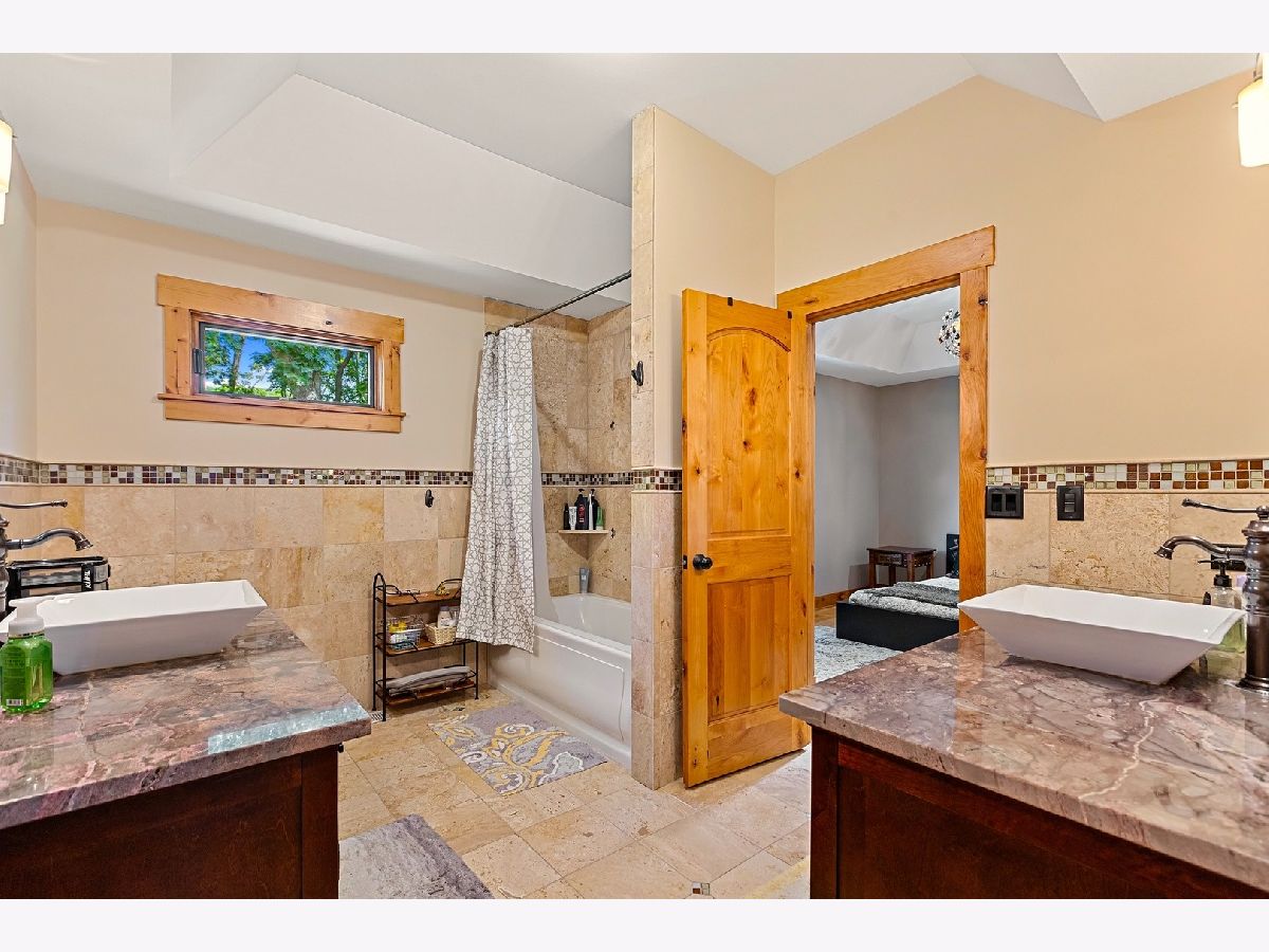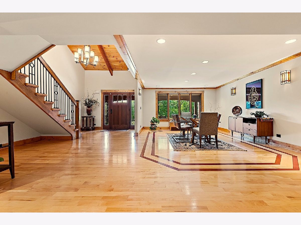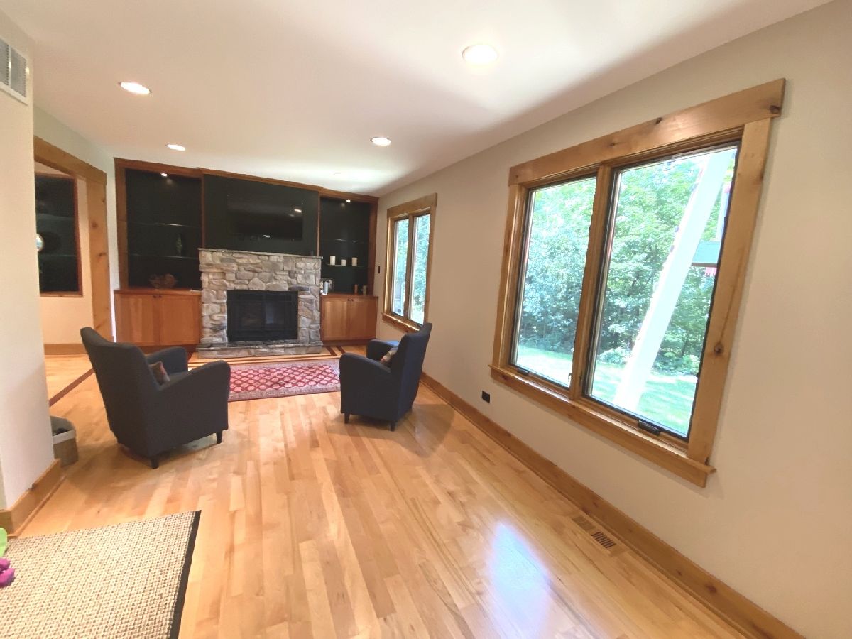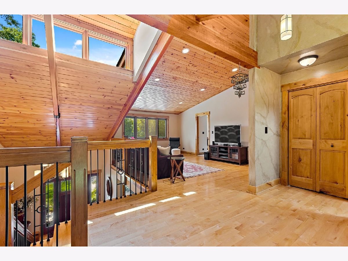 A hidden treasure! Very exclusive, Yellowstone Lodge-inspired, private luxury home on 1.5 acres wooded land in Woodridge with a Naperville address. Amazing lot surrounded by nature and majestic tall trees. Incredible value with many expensive upgrades - the whole place was upgraded, extended, & rebuilt in 2010. Impressive entrance at the end of the street, with a circular driveway that can park over 10 cars. Classy front porch with stone walls, wood-panel ceiling with recessed lights, and an exotic extra-wide entry door. Two-story foyer with a major wow factor preserving a unique lodge aesthetic with distinguished woodwork. Large formal Dining Room with crown molding, recessed lights & custom painted. The Living Room has a gorgeous high wood-panel ceiling, triple picture windows to the backyard, and an astonishing double-sided natural stone fireplace. Huge kitchen with custom warm cherry cabinets, beautiful granite countertops, high-end appliances, breakfast island, and a built-in China showcase. Well-built mudroom attached to 3 car garage. Den has a built-in gas fireplace & showcase, with windows looking out to a treehouse with a rock-climbing wall. Large Family Room with stunning stone fireplace, built-in bookshelves & desk. A large guestroom suite (second master suite) on the first floor with a high vaulted ceiling & an attached full bath. Upstairs has 4 bedrooms, 3 full luxury baths & a gorgeous Bonus room to relax and enjoy family time. Huge Master Suite with a gas fireplace & luxury bathroom featuring a shower with jets, jacuzzi tub, Hardware Restoration cabinets, and all high-end fixtures. 3rd & 4th bedrooms share a Jack & Jill bathroom. The laundry room with extra insulated walls is conveniently located on the 2nd level. Stunning hardwood floors with inlays & high-end finishes throughout. Dual-zone HVAC/AC, and 3 fireplaces serving 4 rooms. A small unfinished basement is used for storage. Private Backyard with beautiful nature view & tall trees. Perfect place for a family reunion & big outdoor gathering. 5 car garage (3 attached & 2 detached). Extra shed for the storage. Too many features to list, a one-of-a-kind place, bought for $420K, paid over $350K in addition & rehab, offers a huge value. Woodridge elementary & Downers Grove High school. Close to Benet Academy, Metra train station, nice restaurants, shopping, and to the highway! Must see before it disappears!