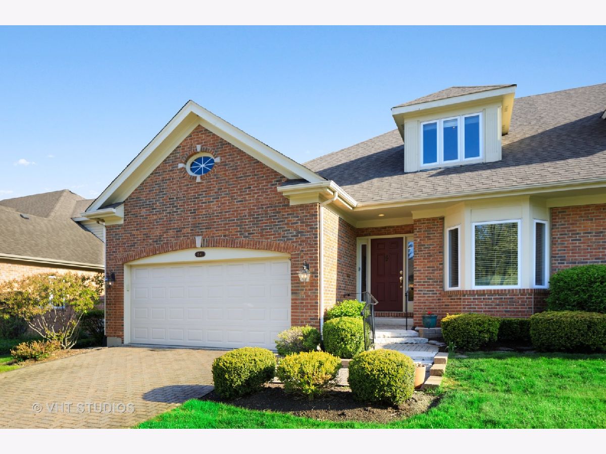 FANTASTIC PRICE for this lovely all brick end unit townhome with 1st Floor Primary Bedroom and situated on a quiet culdesac. Super sharp curb appeal with brick driveway and front walk. Amenities include: hardwood floors on all of first floor, abundant light from many windows, beautiful eat-in Kitchen with planning desk, quartz counters, stainless steel appliances, and 1st Floor Den. The Dining Room overlooks the Living Room which features a fireplace a nice view of yard. The Primary Bedroom boasts a private Bath with tub and shower, walk-in closet. Upstairs are 2 more spacious bedrooms, bath, and Loft. Two Laundry areas: first floor and basement. Also offered are in-ground sprinkler system. Note the low HOA fee! Close to shopping, parks.