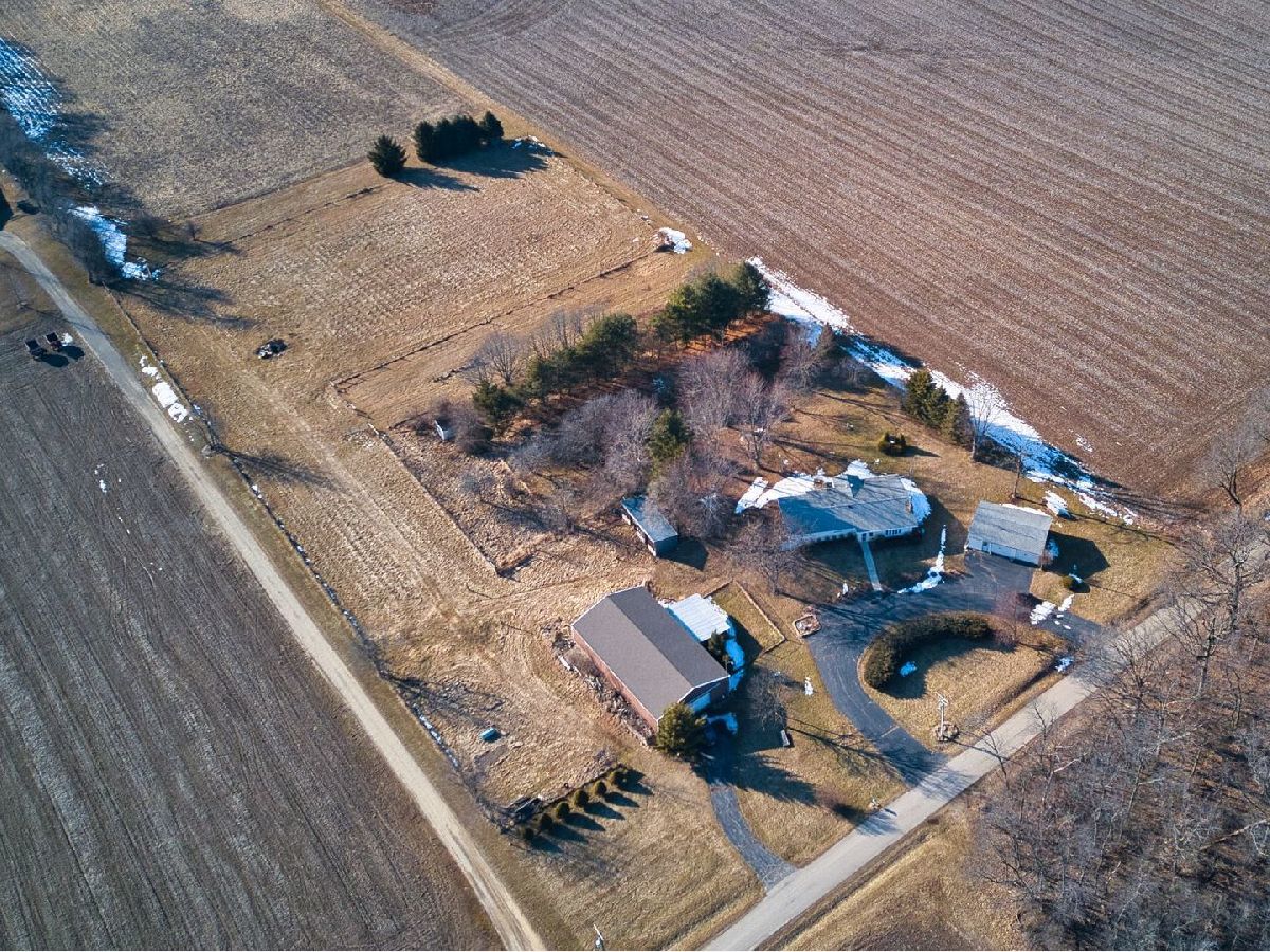 TEN ACRE property! Ranch home with large detached garage, barn and outbuilding. Home has vaulted ceilings and a fireplace in the spacious family room. Kitchen has an oversized island with prep sink and beverage fridge. Lots of counter space! Bright and sunny dining space and sunroom overlook the backyard. There are 2 bedrooms and 2 full bathrooms on the first floor. Laundry room/3rd bedroom is also on first floor. Head downstairs to the walk out basement with 3 more rooms and another full bathroom. Back 5 acres have been rented as farm land, continue to rent or use as your own. Front 5 acres are semi wooded with house, chicken coop, barn with 2 horse stalls and full concrete floor making it perfect for automotive use or other hobbies. Bring your horses, goats, chickens, cars...endless opportunities to make this your own.