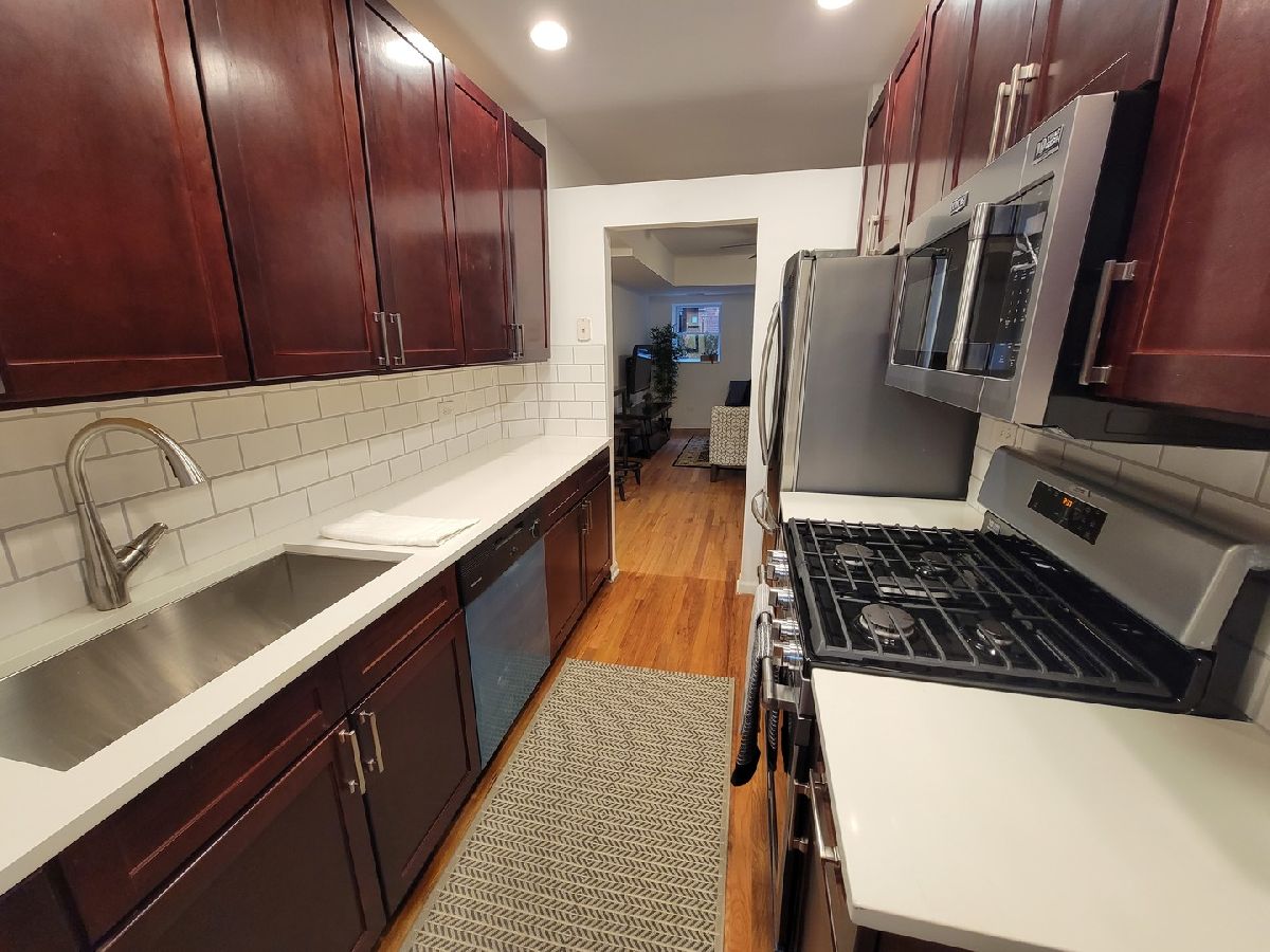 Charming & updated condo located in a meticulously landscaped courtyard building with E & W exposure that allows more natural light in than you would expect from a ground floor! This Buena Park beauty has everything you need to live comfortably. The kitchen has been remodeled and everything is new. White quartz counter-tops, cherry wood cabinetry, stainless steel appliances and a fresh glass-tiled backsplash really make this crisp kitchen pop! The living room is spacious, and offers two nooks that can serve as dining and office areas. The living room window faces west that looks out on the luscious green courtyard that blooms with flowers throughout the summer months. Enjoy your central heating and air conditioning, in-unit washer & dryer as well as a jacuzzi tub in your bathroom. Bedroom offers an east facing window for morning light, comfortable space for a queen size bed, and a large closet. This building is well managed, providing you access to an infrared sauna, clean workout room and common areas. This incredibly convenient location is right by the lakefront, parks, beaches, golf course and the bike/running path. It's not far from Wrigley, nightlife, shopping and grocery stores. There's easy access to all public transportation: Lake Shore Drive, express buses to downtown, and CTA Sheridan Red Line. Come and see for yourself!