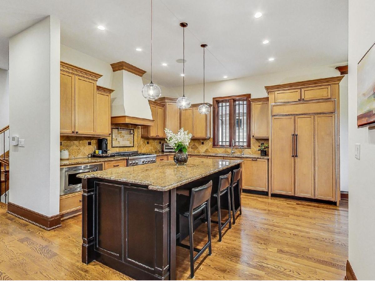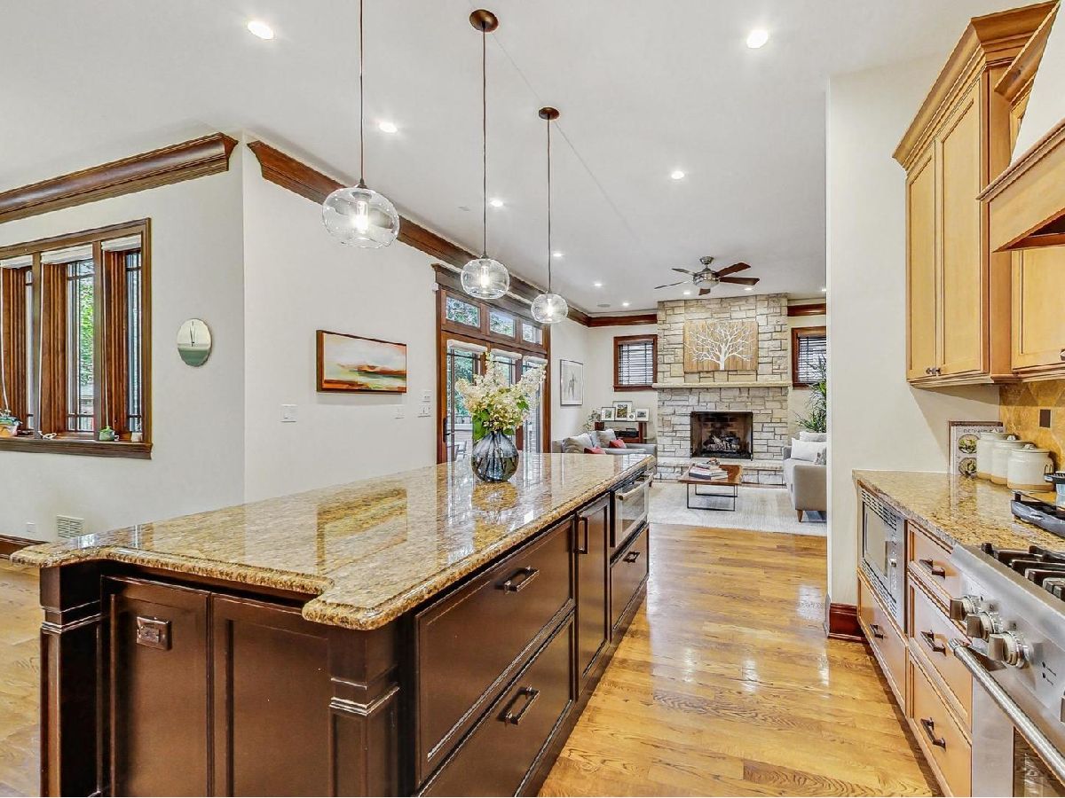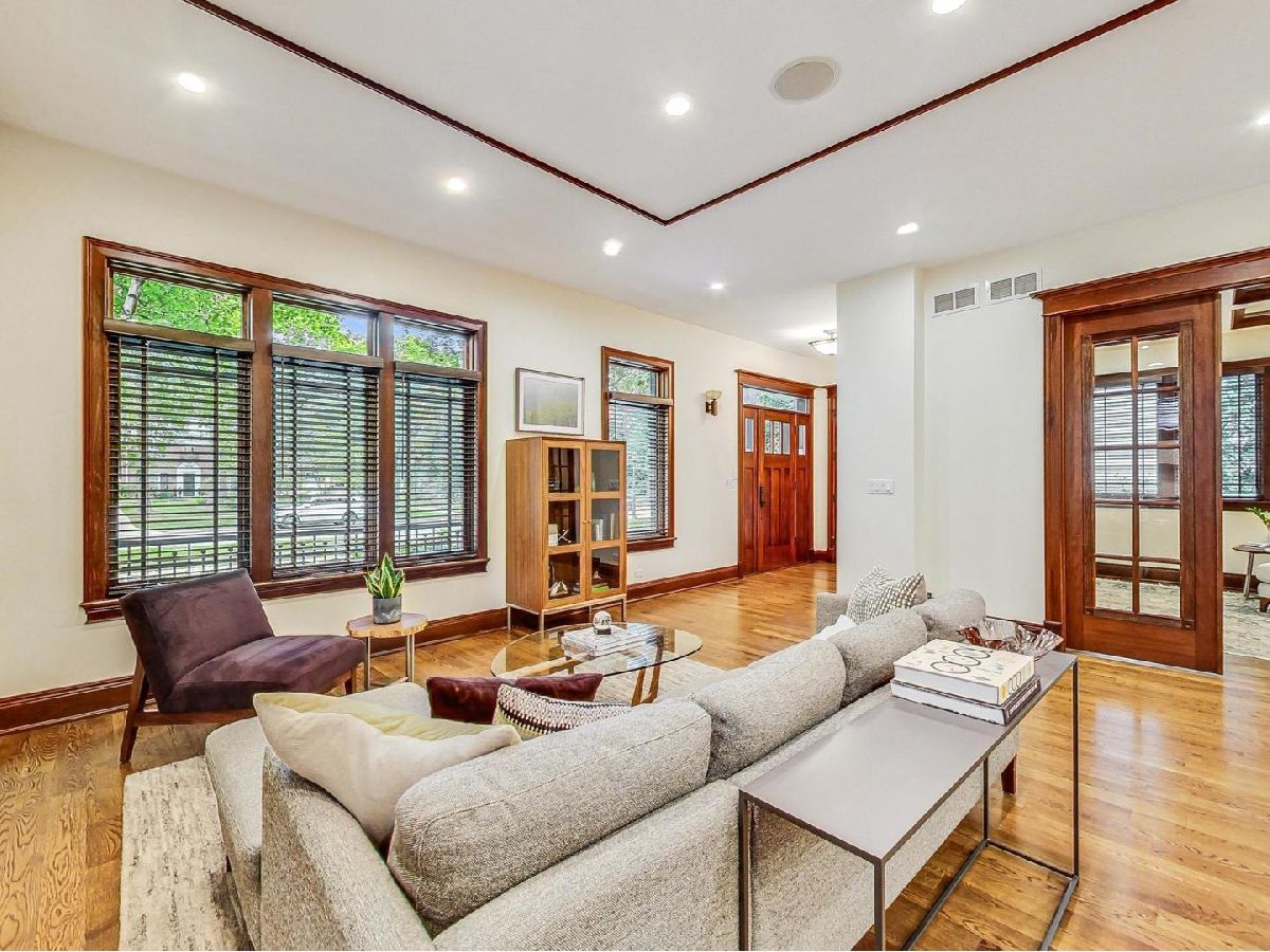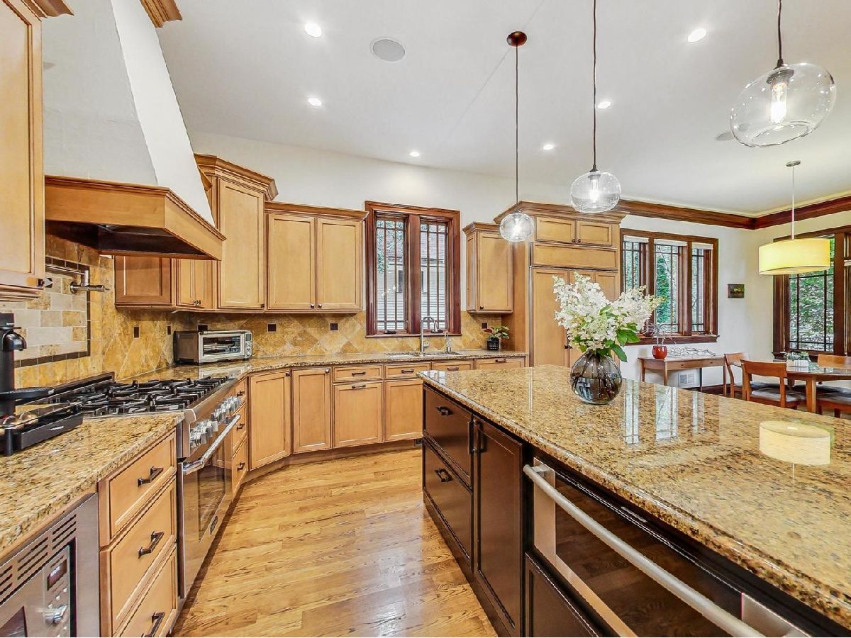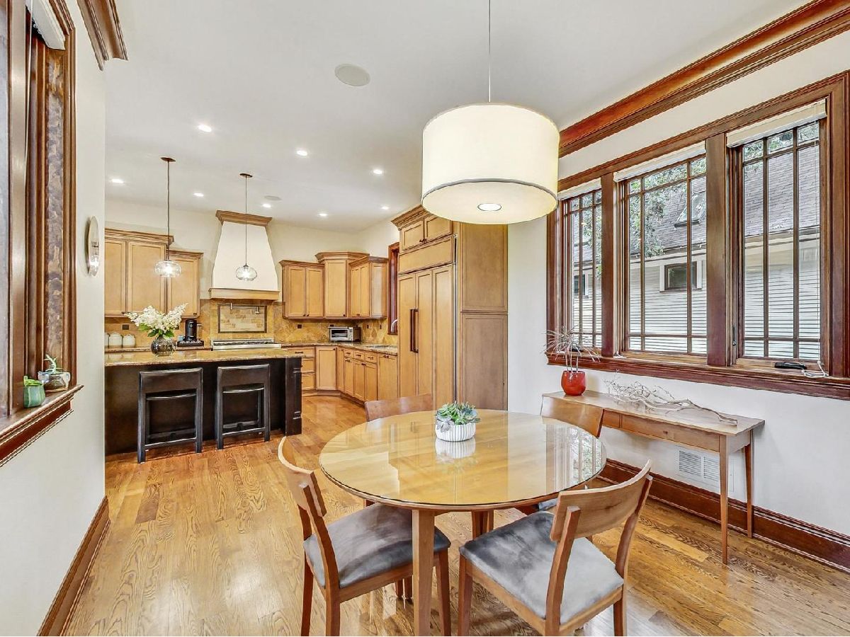 All the finest characteristics of prairie style combined with the most desirable modern elements! Built in 2008, this spectacular residence offers over 5,600 total square feet of open concept living space plus a coach house above the garage with a kitchenette and full bathroom. Each room is enveloped in detailed windows, custom crown molding, and voluminous ceilings. The first floor offers a den or bedroom with coffered ceiling and attached full bath. Spacious living and dining rooms are separate from the gourmet kitchen which features a large island, premium grade appliances, and separate eating area. Adjacent family room features stately, built-in bookshelves and a stone fireplace. A mudroom with built-in storage and an updated powder room complete the first-floor footprint. Quality continues to the second floor with the spacious primary suite lined with windows and a tray ceiling. Primary bath has a separate steam shower and jetted tub, dual vanities, and heated floor. Includes oversized walk-in closet with custom built-ins. Three additional bedrooms with generous closets, full bath, and laundry room with dual washers and dryers complete the floor. The basement is a recreational dream containing a movie theatre with 4k projection and 7.1 surround sound. There is also a kitchenette attached to the enormous great room, full bath, and tons of storage. The living space outside is just as lovely including an expansive bluestone front porch with professional landscaping and irrigation. An elevated patio in back includes a built-in, natural gas grill and lower patio with seating surrounding a natural gas firepit. Recently renovated coach house above the detached garage has full bathroom, bar with refrigerator, microwave, sink and speaker system. New roof, gutters, gutter guards installed in 2017. Heated garage. New, zoned HVAC systems. 400 AMP service. Kohler 20 kw generator. Solar panels installed in 2018. Whole home was recently re-painted. The finest you will find on beautiful Keystone Avenue!
