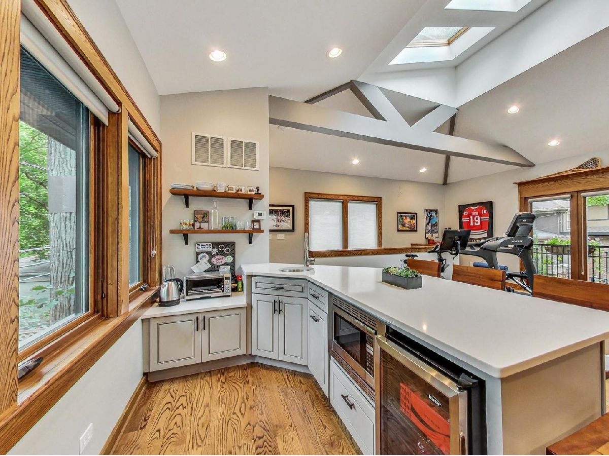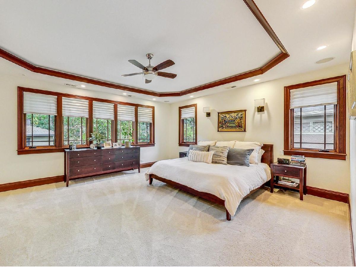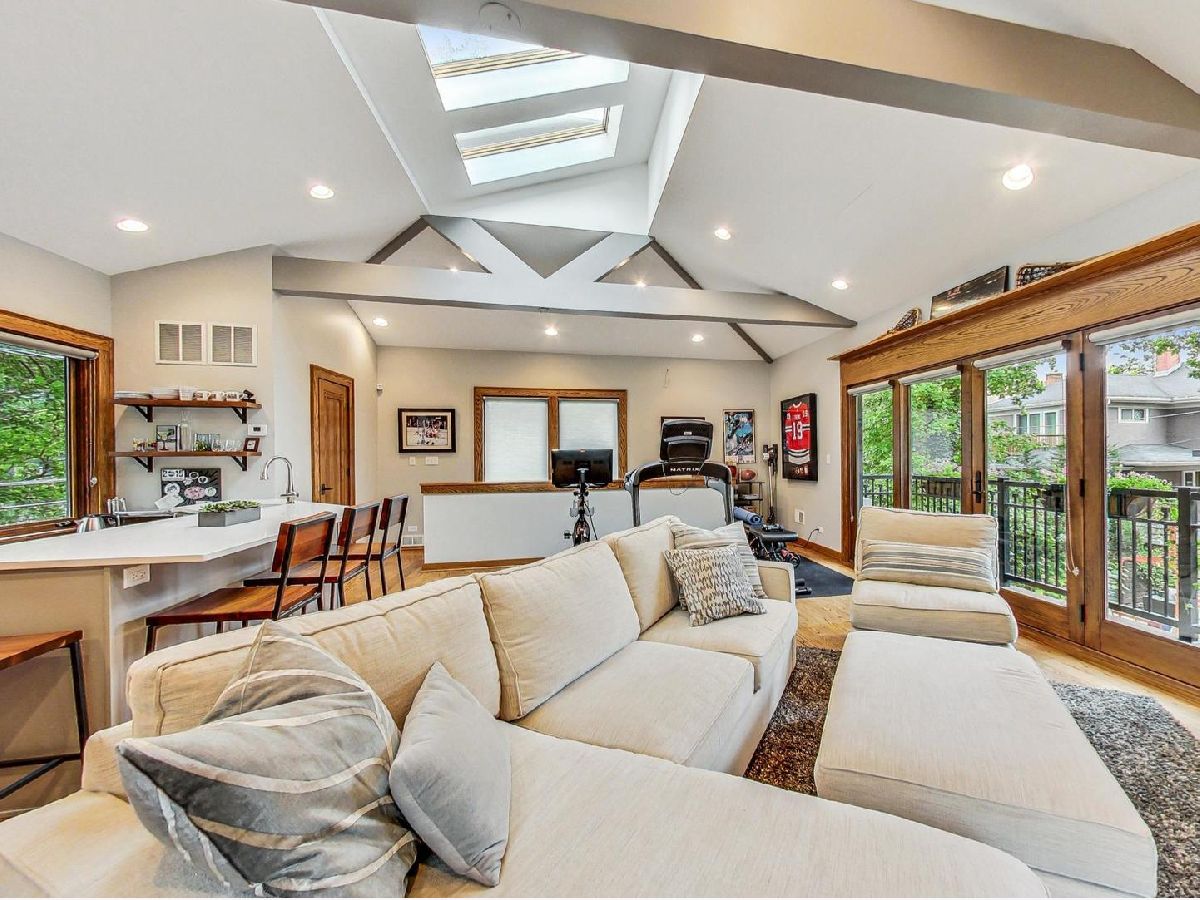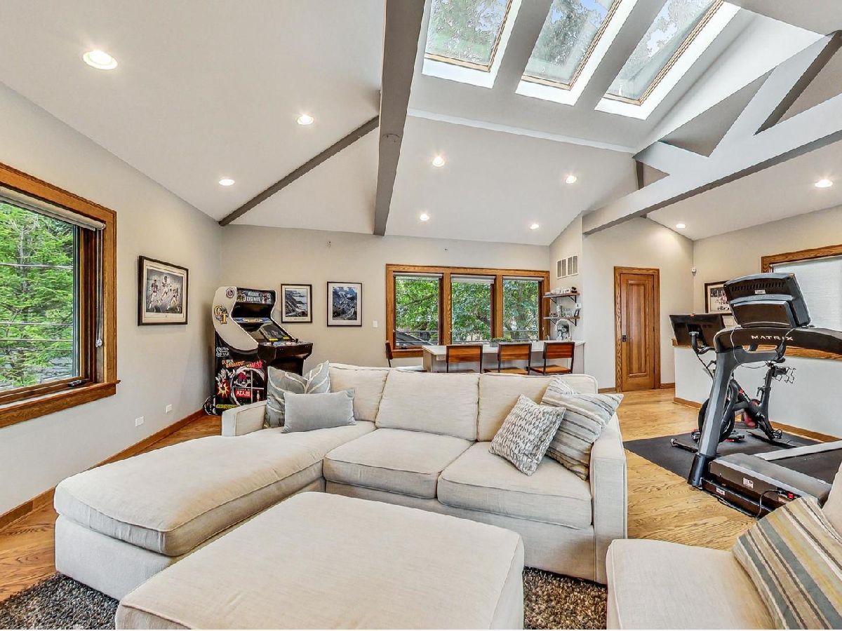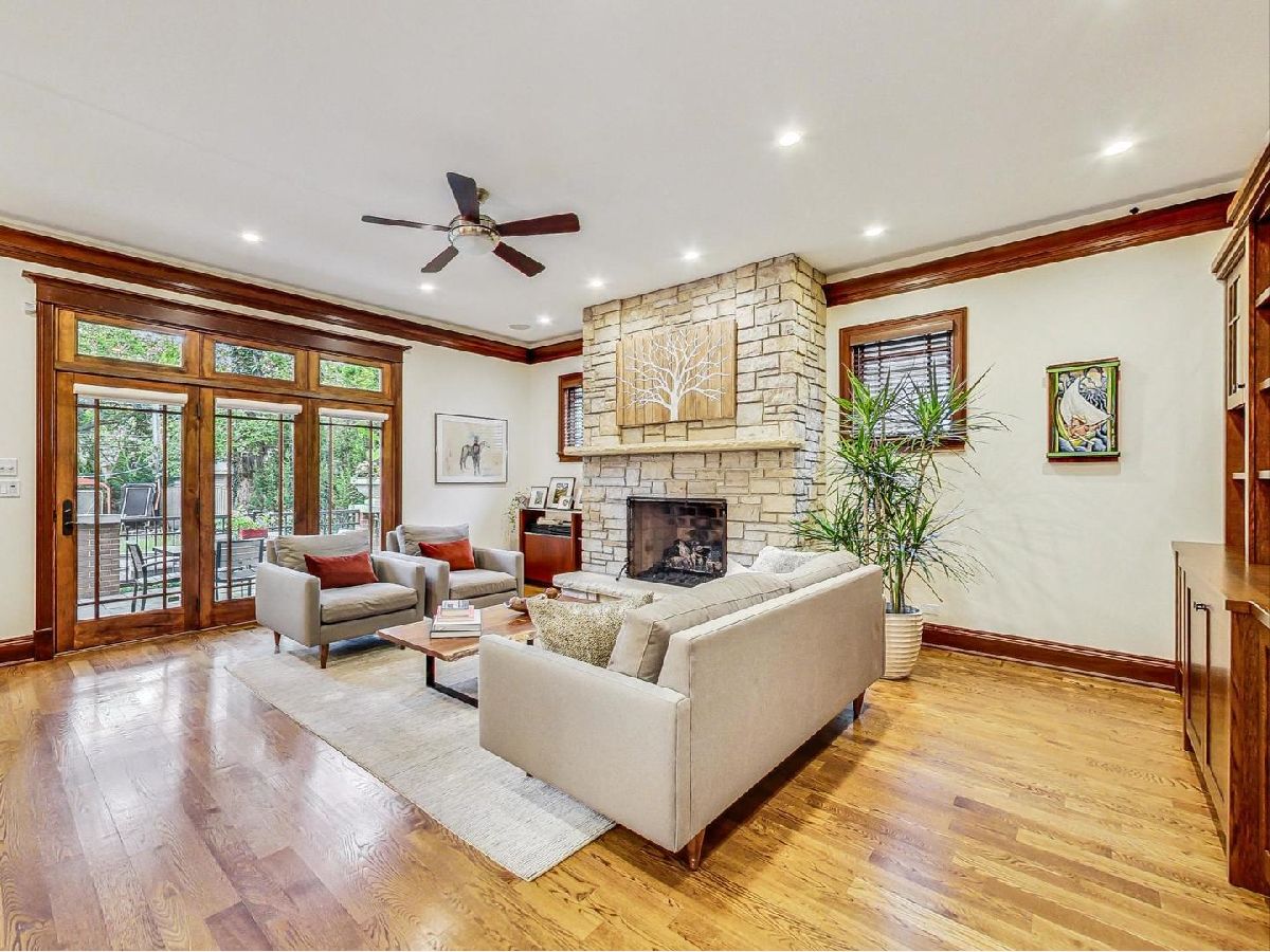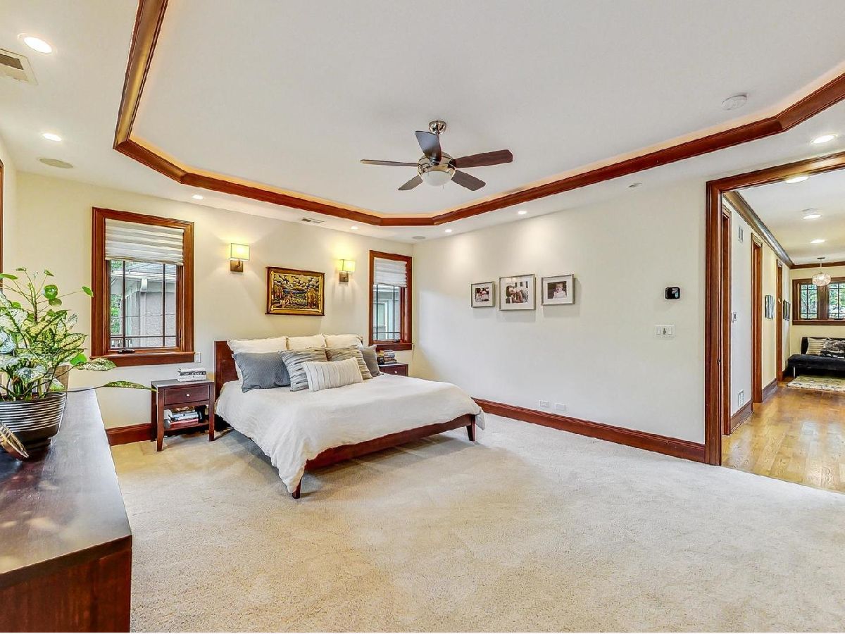 All the finest characteristics of prairie style combined with the most desirable modern elements! Built in 2008, this spectacular residence offers over 5,600 total square feet of open concept living space plus a coach house above the garage with a kitchenette and full bathroom. Each room is enveloped in detailed windows, custom crown molding, and voluminous ceilings. The first floor offers a den or bedroom with coffered ceiling and attached full bath. Spacious living and dining rooms are separate from the gourmet kitchen which features a large island, premium grade appliances, and separate eating area. Adjacent family room features stately, built-in bookshelves and a stone fireplace. A mudroom with built-in storage and an updated powder room complete the first-floor footprint. Quality continues to the second floor with the spacious primary suite lined with windows and a tray ceiling. Primary bath has a separate steam shower and jetted tub, dual vanities, and heated floor. Includes oversized walk-in closet with custom built-ins. Three additional bedrooms with generous closets, full bath, and laundry room with dual washers and dryers complete the floor. The basement is a recreational dream containing a movie theatre with 4k projection and 7.1 surround sound. There is also a kitchenette attached to the enormous great room, full bath, and tons of storage. The living space outside is just as lovely including an expansive bluestone front porch with professional landscaping and irrigation. An elevated patio in back includes a built-in, natural gas grill and lower patio with seating surrounding a natural gas firepit. Recently renovated coach house above the detached garage has full bathroom, bar with refrigerator, microwave, sink and speaker system. New roof, gutters, gutter guards installed in 2017. Heated garage. New, zoned HVAC systems. 400 AMP service. Kohler 20 kw generator. Solar panels installed in 2018. Whole home was recently re-painted. The finest you will find on beautiful Keystone Avenue!