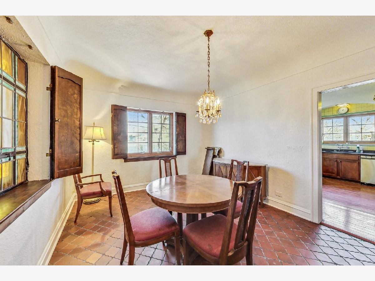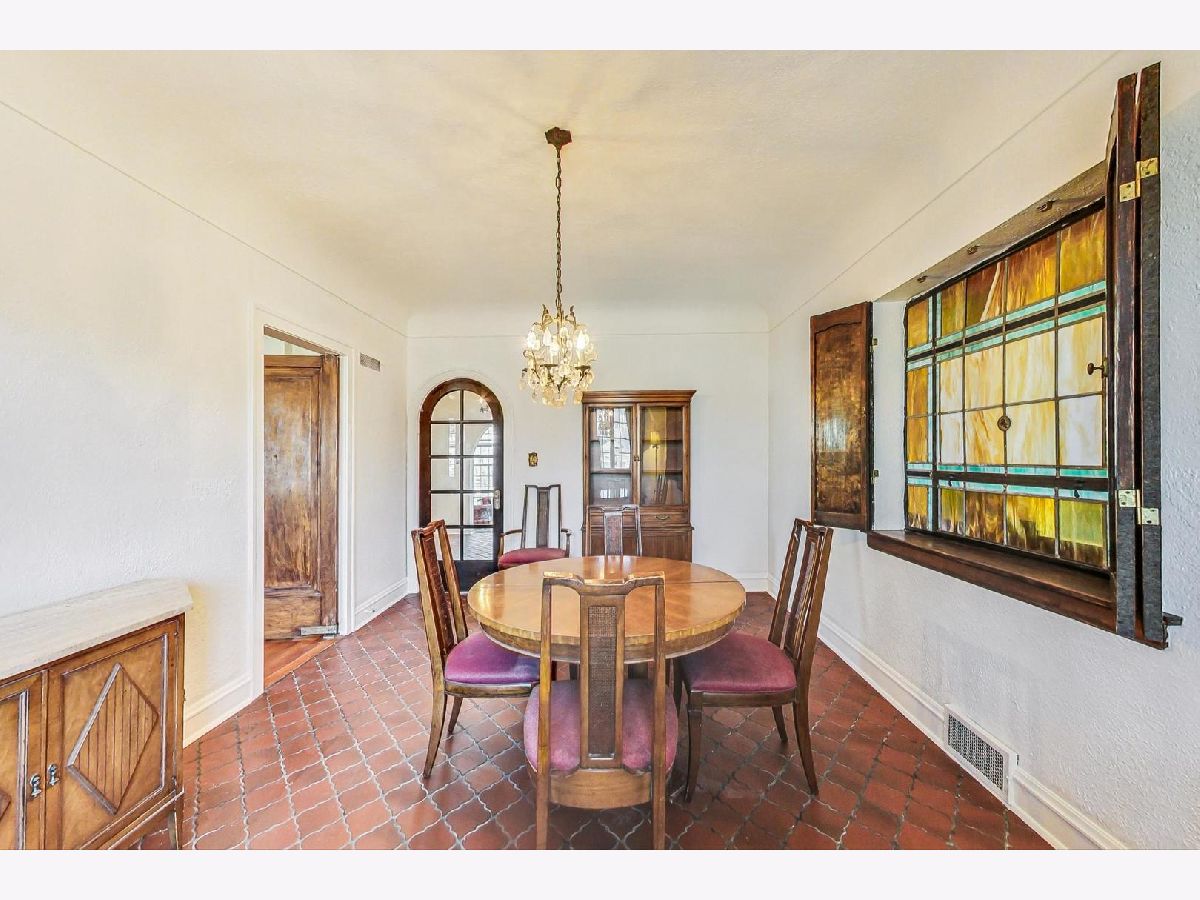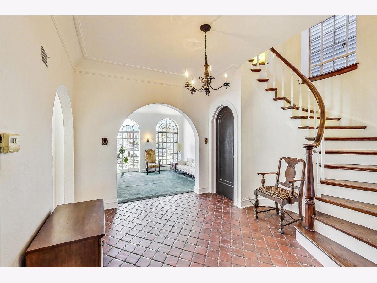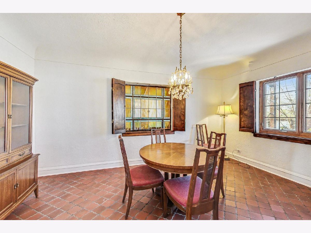 Stately brick Mediterranean home in great North Oak Park location. Owned and maintained by same family for the last 55 years. Features stunning, sunken LR with gas fire place with beautiful ornate mantle, palladium windows/door leading to front concrete porch/lanai, formal and separate DR with decorative art glass. Home boasts curved staircases, arched doorways, Spanish tile, Eat-in kitchen with granite countertops, stainless DW and refrigerator and hard wood floors, Powder room on 1st with original fixtures and tile, wood burning fire place in lower level, 2 car attached garage with unique sloped drive way entrance, drain tiles assure no issues with run off, plus parking for two or three more cars, Large primary bedroom with his/her closets, one is cedar, 2nd floor full bath with separate shower and original tile, 2 more large bedrooms on 2nd floor, one features 1/2 bath. 2nd and 3rd bedroom have doors leading to covered back porch/deck. Additional 1/2 bath in lower level. Many sconces throughout and antique light fixtures. Subtle stucco walls in LR & DR fit beautifully with style of home, fresh paint in LR, DR & Foyer. Very special and unique home with character and detail, awaiting new owner to make it spectacular!
