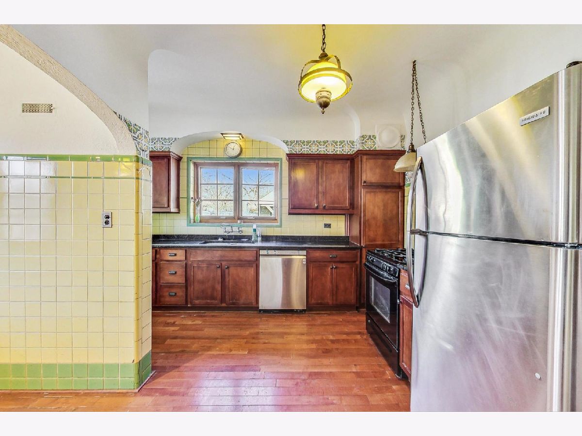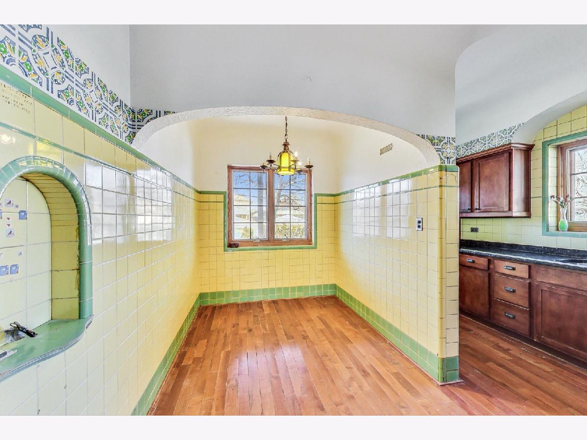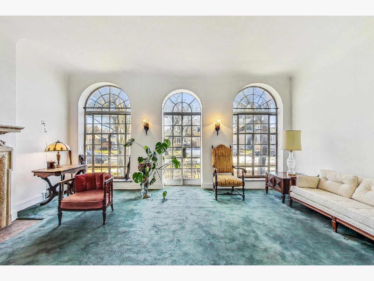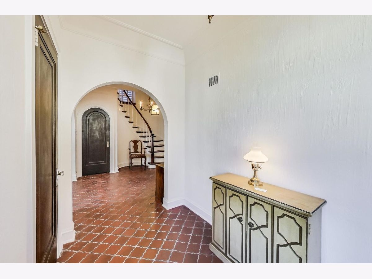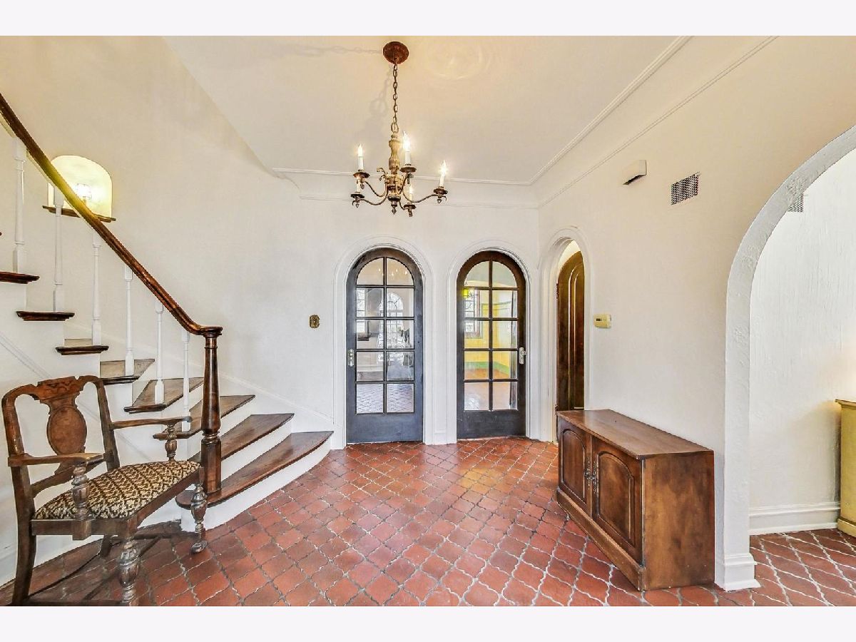 Stately brick Mediterranean home in great North Oak Park location. Owned and maintained by same family for the last 55 years. Features stunning, sunken LR with gas fire place with beautiful ornate mantle, palladium windows/door leading to front concrete porch/lanai, formal and separate DR with decorative art glass. Home boasts curved staircases, arched doorways, Spanish tile, Eat-in kitchen with granite countertops, stainless DW and refrigerator and hard wood floors, Powder room on 1st with original fixtures and tile, wood burning fire place in lower level, 2 car attached garage with unique sloped drive way entrance, drain tiles assure no issues with run off, plus parking for two or three more cars, Large primary bedroom with his/her closets, one is cedar, 2nd floor full bath with separate shower and original tile, 2 more large bedrooms on 2nd floor, one features 1/2 bath. 2nd and 3rd bedroom have doors leading to covered back porch/deck. Additional 1/2 bath in lower level. Many sconces throughout and antique light fixtures. Subtle stucco walls in LR & DR fit beautifully with style of home, fresh paint in LR, DR & Foyer. Very special and unique home with character and detail, awaiting new owner to make it spectacular!