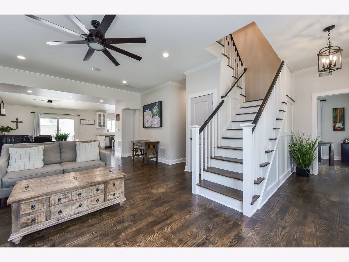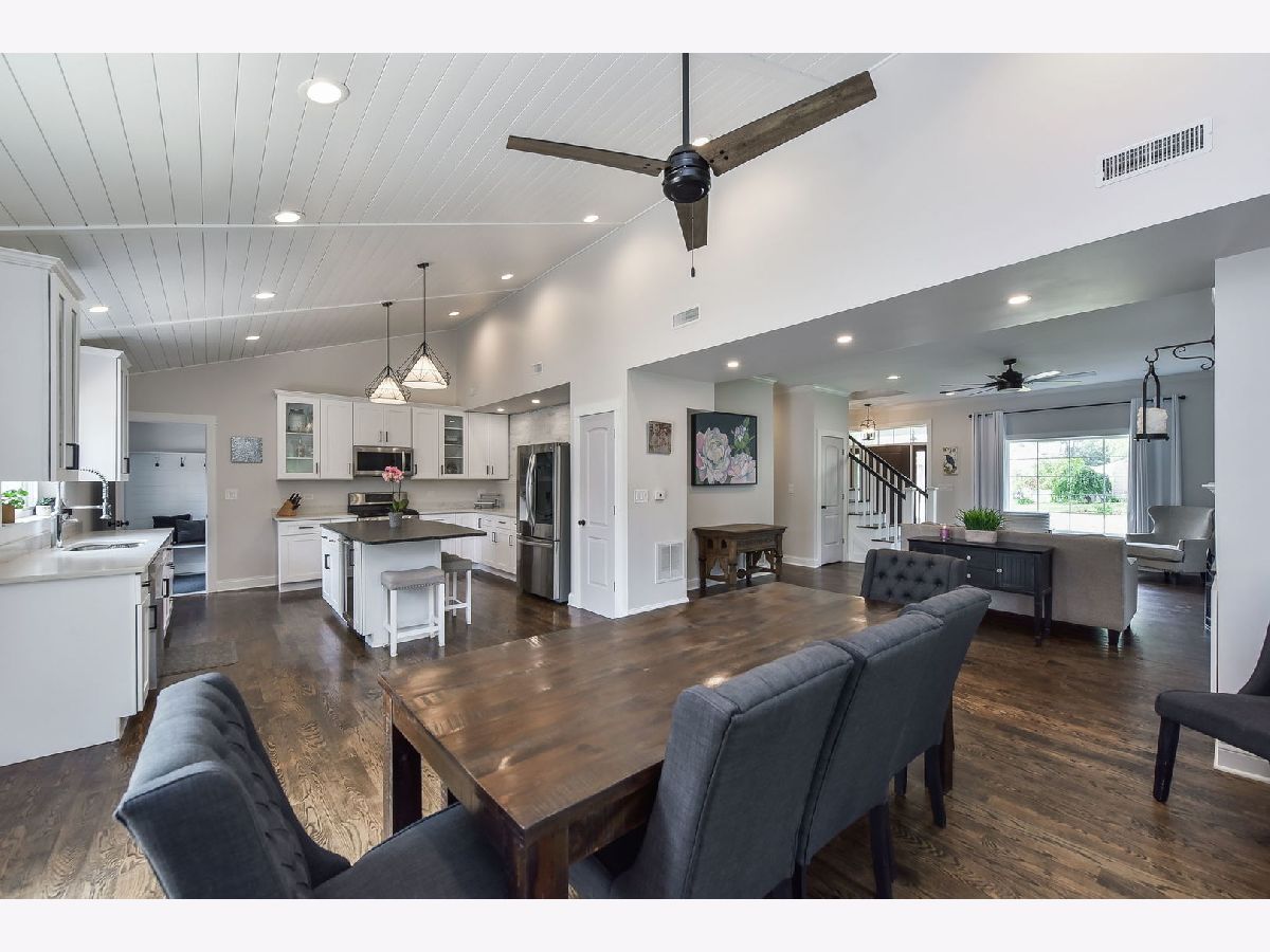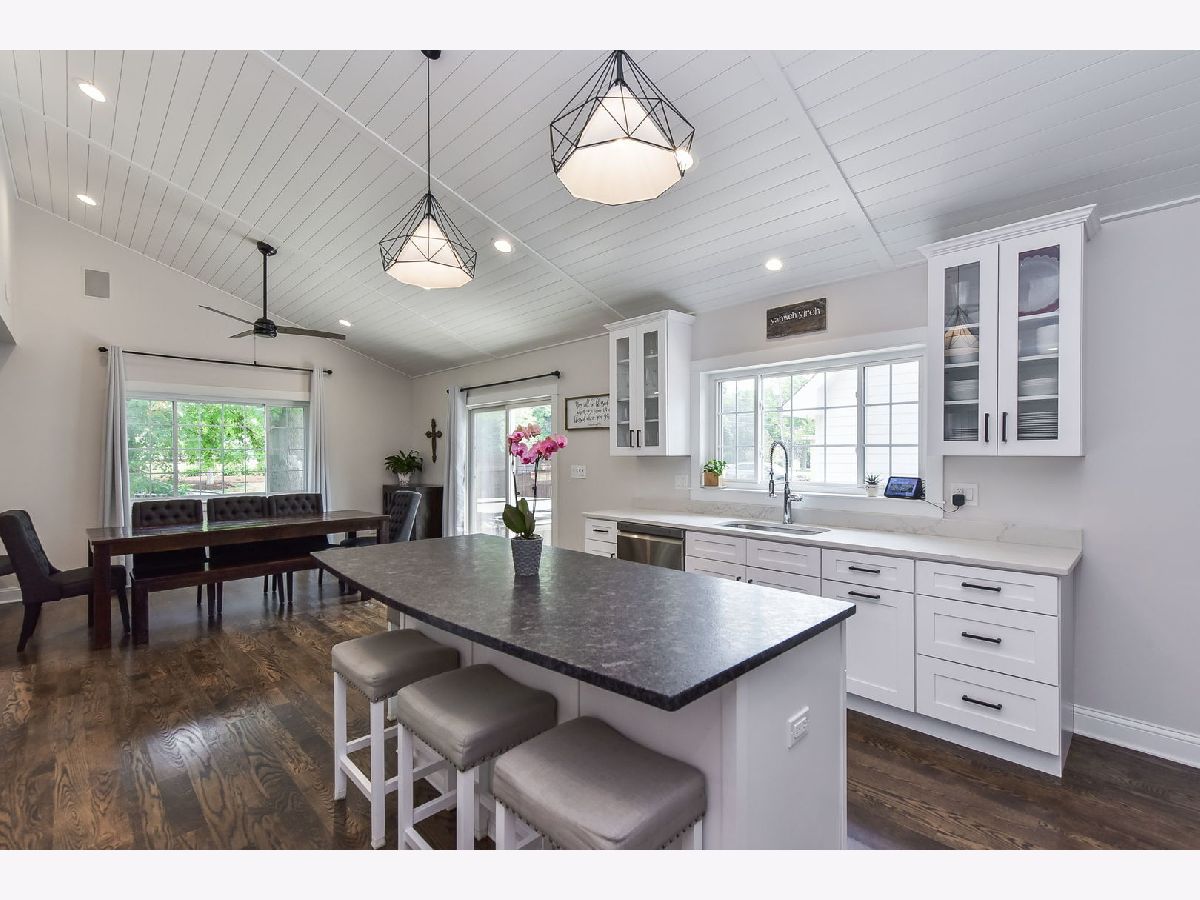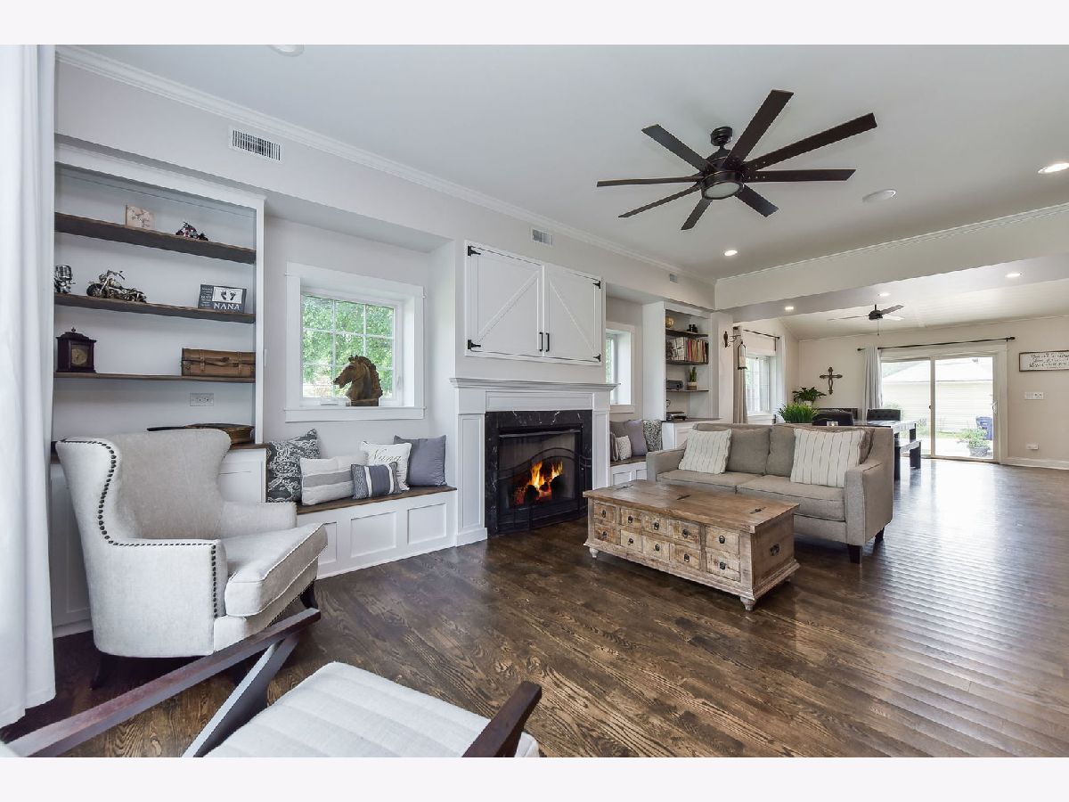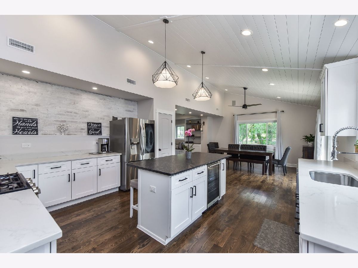 This beautiful two-story home was rebuilt in 2019 and features stunning finishes and craftsmanship throughout. The rich hardwood floors begin in the spacious, welcoming foyer. To your right is a private office with large window, and the family room opens up to the left. Built-in cabinetry and benches flank the gas fireplace, and custom doors above the fireplace close-off the television when not in use. The kitchen and dining rooms span the east side of the home, highlighted by 12 foot vaulted wood ceilings. The kitchen features white cabinets, quartz perimeter counters with honed-granite on the island, stainless steel LG appliances, and pendant and recessed lighting. Opening to the dining and family rooms, this layout is perfect for daily living and entertaining. A large glass door opens to the back patio, as does a door from the mudroom. The first level also features the home's fourth bedroom adjacent to a stunning bath with walk-in shower. The private rooms on the second level are all gracious in size and storage. The primary bedroom includes a luxurious ensuite bathroom and a walk-in closet with window. The two secondary bedrooms share the beautiful hall bath, and the laundry room is also conveniently located on the second level. Outside, the yard is this charming as the home itself, with a variety of perennial plants and mature trees. Relax on the private back patio or on the covered front porch. The two-car garage has a full interior staircase and dormers on the second floor, offering excellent storage or ideal for finishing as a private office, workout room, art studio, playroom... wherever your imagination leads. This lovely North Wheaton location is under 1/2 mile to the College Avenue train Station, Wheaton College and the IL Prairie Path, and just one mile to downtown Wheaton's dining, shopping and French Market. District 200 schools.