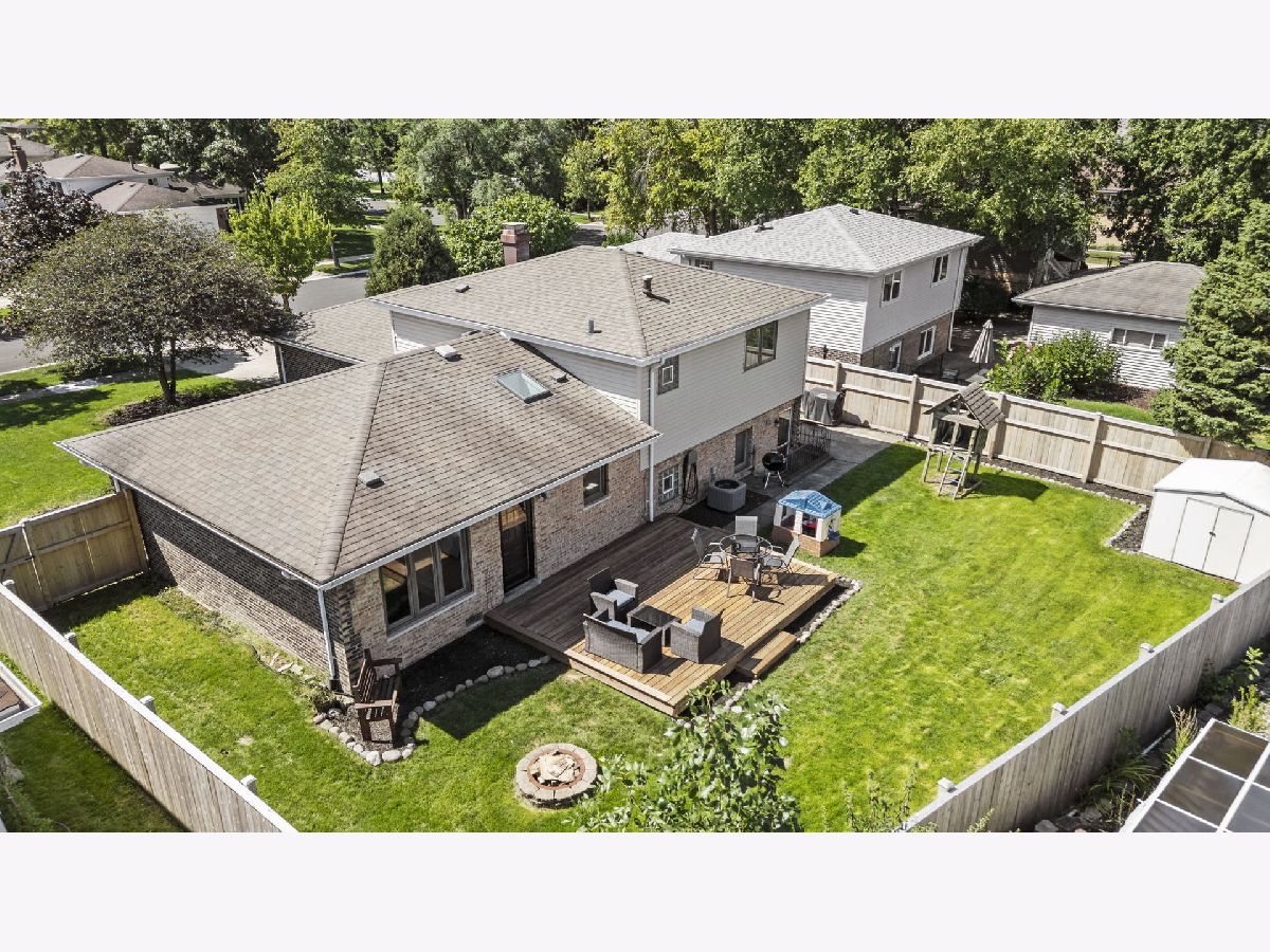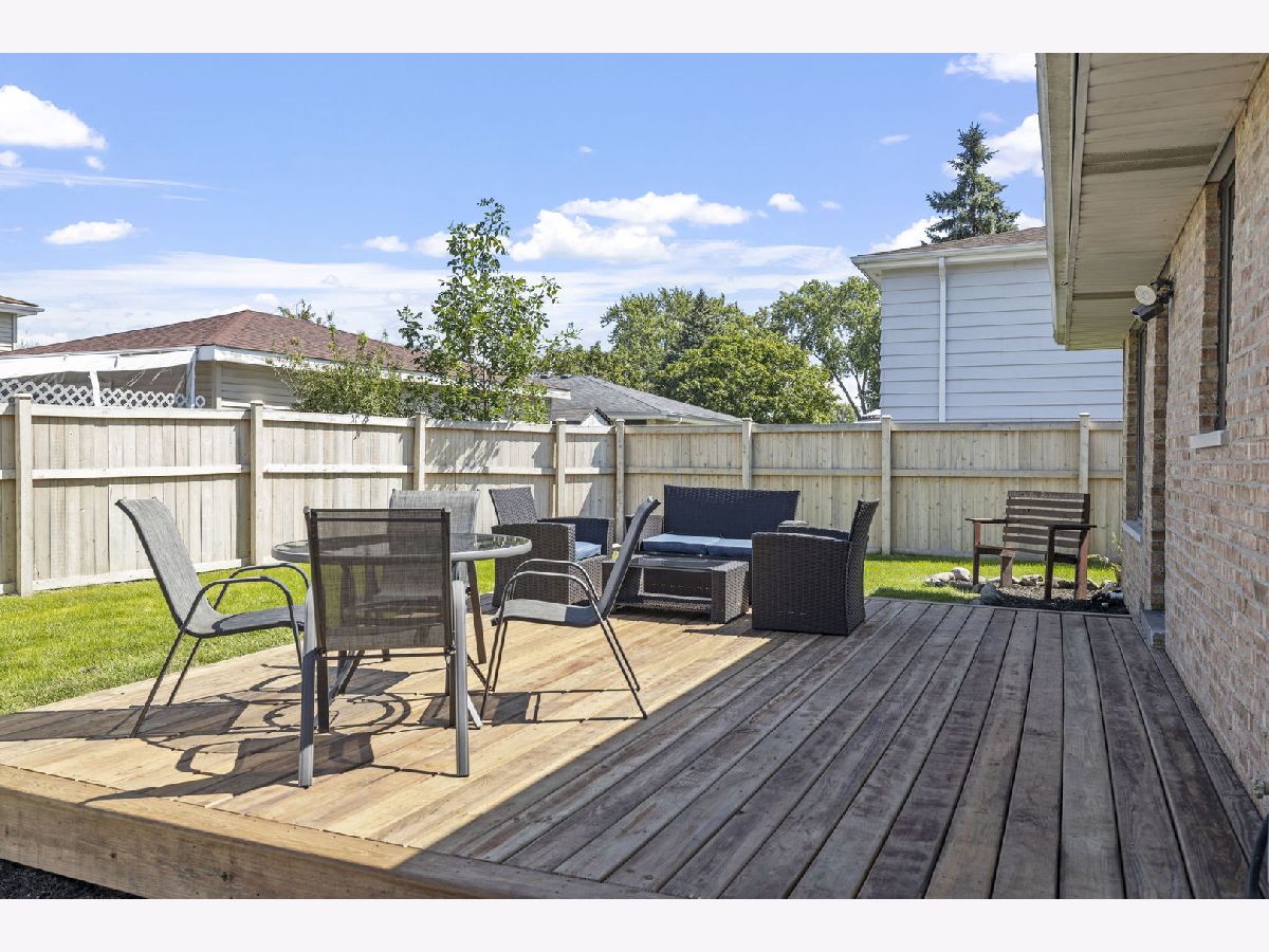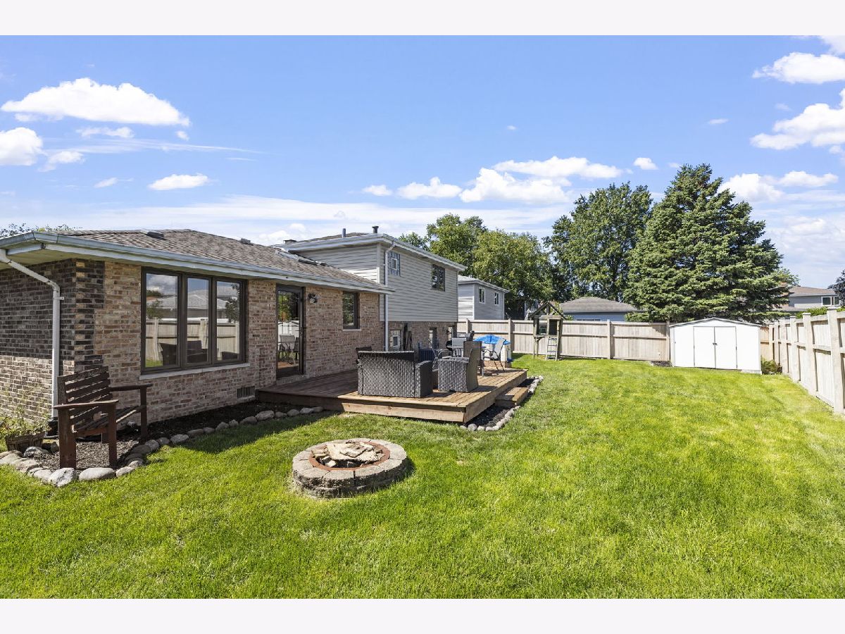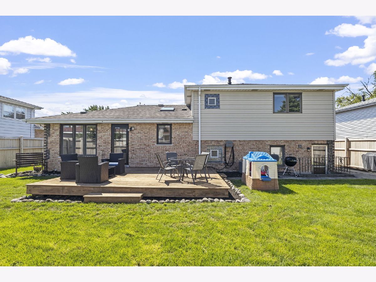Bright, move-in ready split-level in a prime Tinley Park location with an attached 2-car garage and a fully fenced backyard. Sun-splashed living room with a big picture window opens to an updated eat-in kitchen with skylight, white cabinets, quartz marble-look counters, custom tile backsplash, stainless steel appliances, and island seating. Three comfortable bedrooms up with great closets and a refreshed full bath. The lower level features a spacious family room with an updated stone fireplace and a second full bath, plus a flex room with laundry and exterior access - perfect for a mudroom, home office, or workout space. Outdoor living shines with a brand-new 2025 back deck and the 2024 fence. Major improvements for peace of mind: 2025 new sump pump and new garage opener, 2023 new HVAC system, 2021 kitchen enhancements with quartz counters, updated hardware, wood-look tile, and new carpet throughout. Close to Buedingen Park, schools, shopping, dining, and Metra. Easy living in a central location - just move in and enjoy.