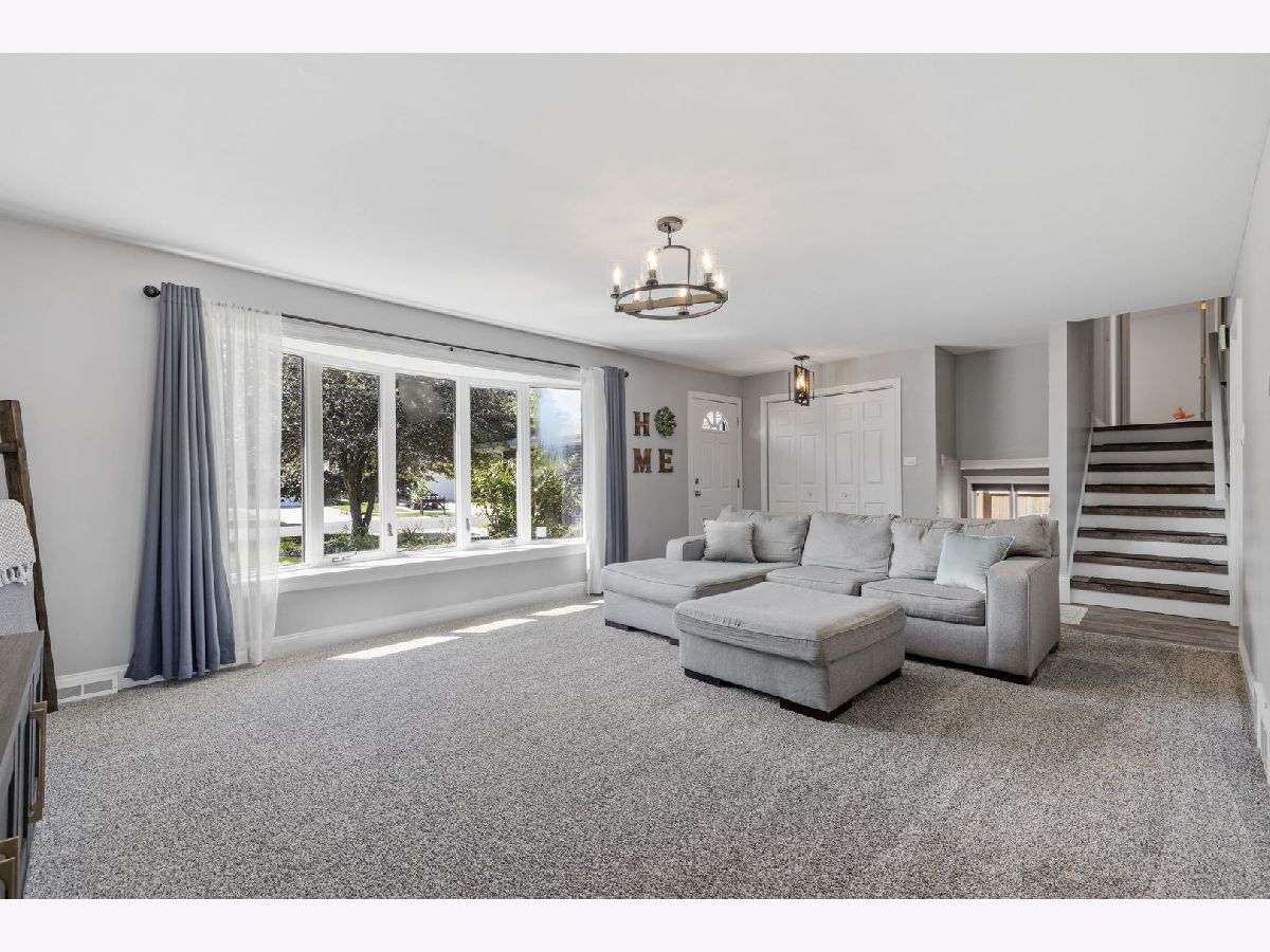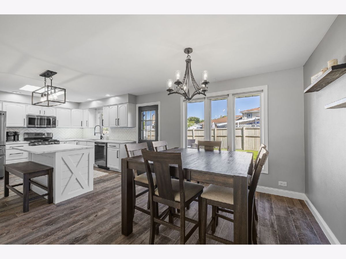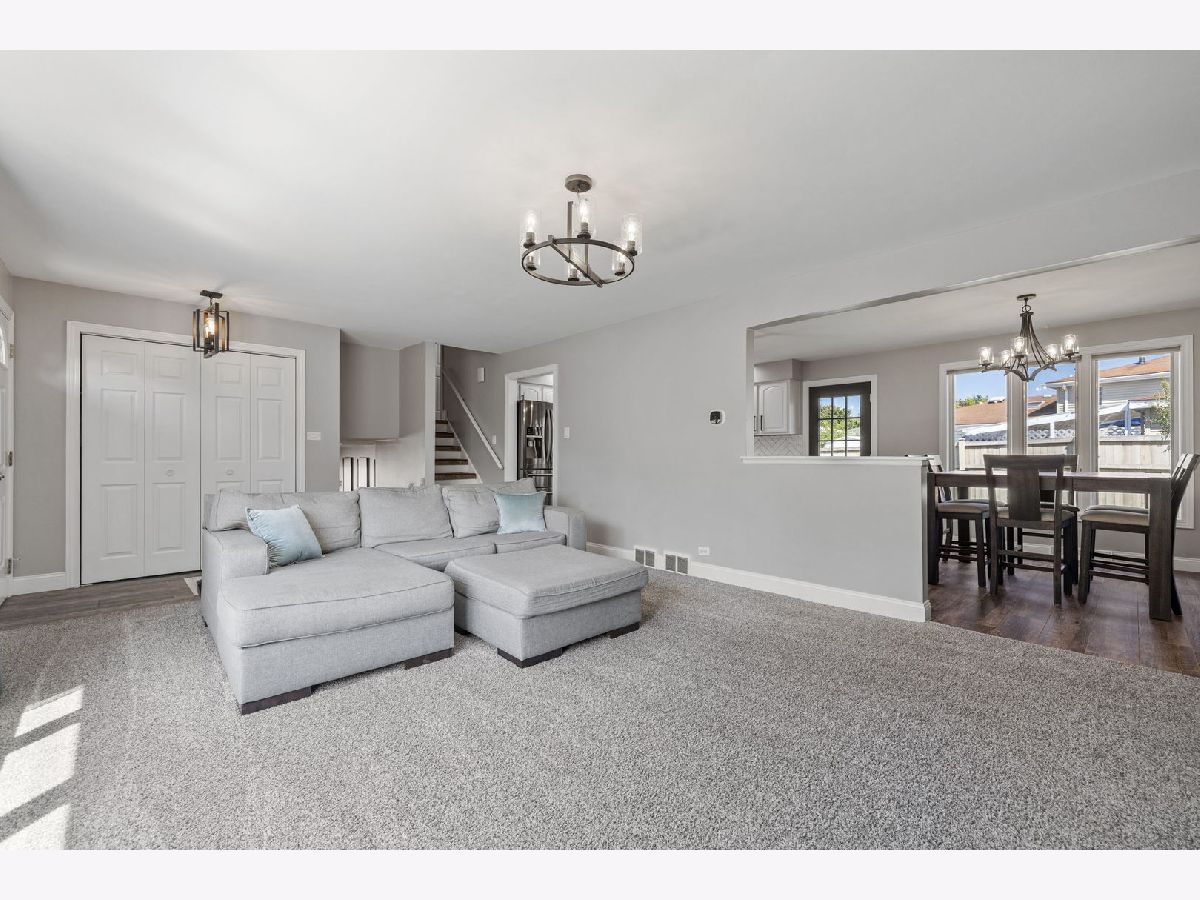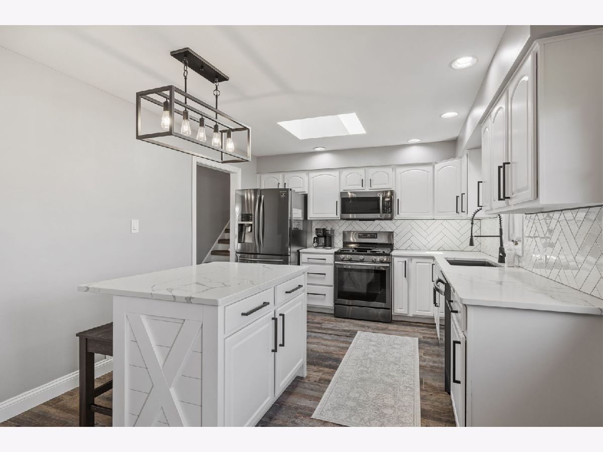 Bright, move-in ready split-level in a prime Tinley Park location with an attached 2-car garage and a fully fenced backyard. Sun-splashed living room with a big picture window opens to an updated eat-in kitchen with skylight, white cabinets, quartz marble-look counters, custom tile backsplash, stainless steel appliances, and island seating. Three comfortable bedrooms up with great closets and a refreshed full bath. The lower level features a spacious family room with an updated stone fireplace and a second full bath, plus a flex room with laundry and exterior access - perfect for a mudroom, home office, or workout space. Outdoor living shines with a brand-new 2025 back deck and the 2024 fence. Major improvements for peace of mind: 2025 new sump pump and new garage opener, 2023 new HVAC system, 2021 kitchen enhancements with quartz counters, updated hardware, wood-look tile, and new carpet throughout. Close to Buedingen Park, schools, shopping, dining, and Metra. Easy living in a central location - just move in and enjoy.