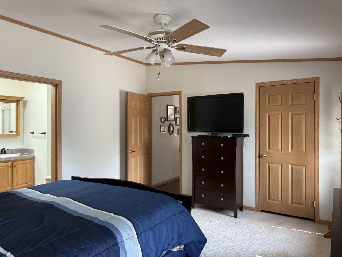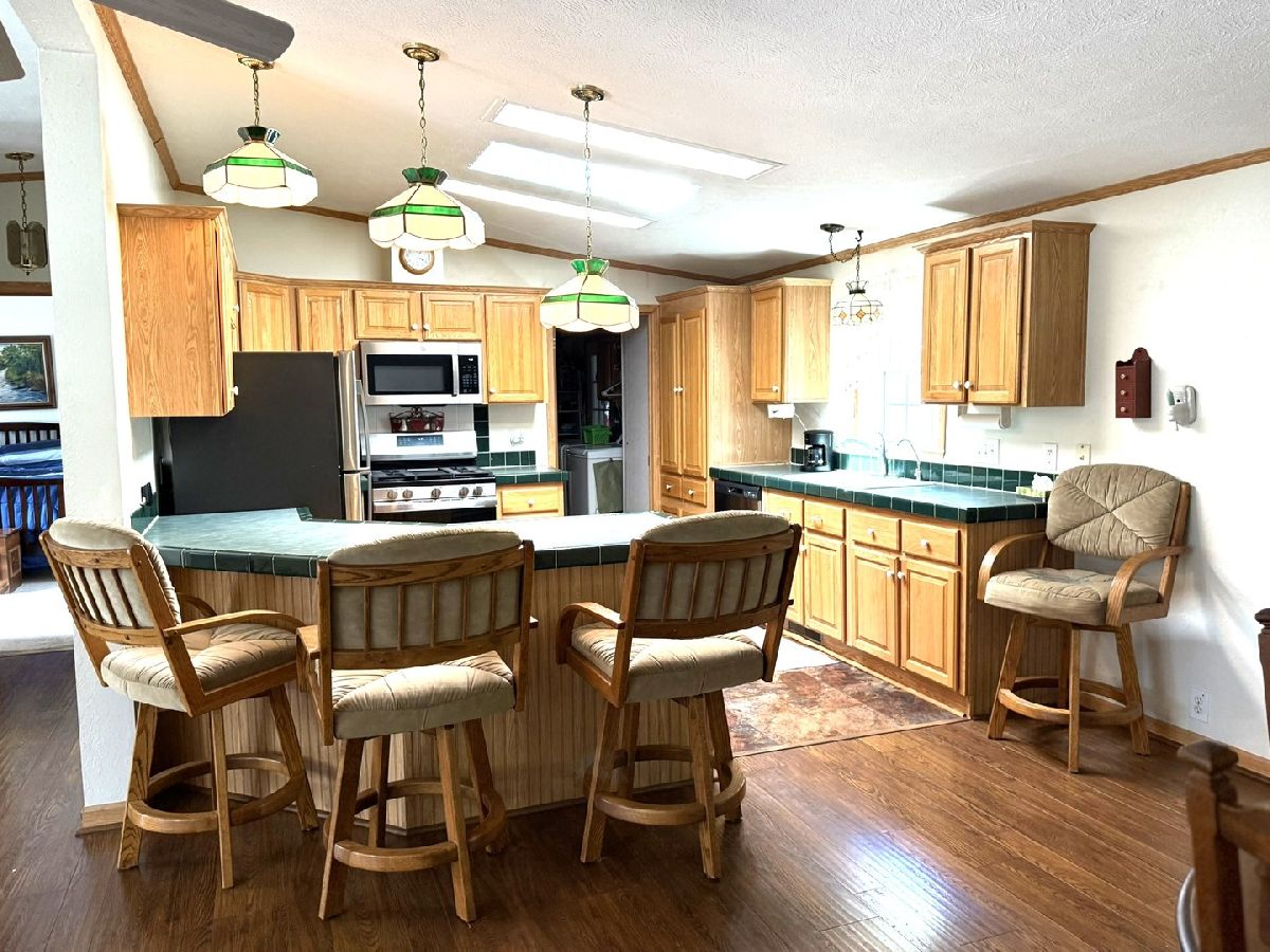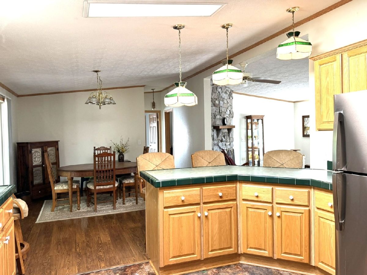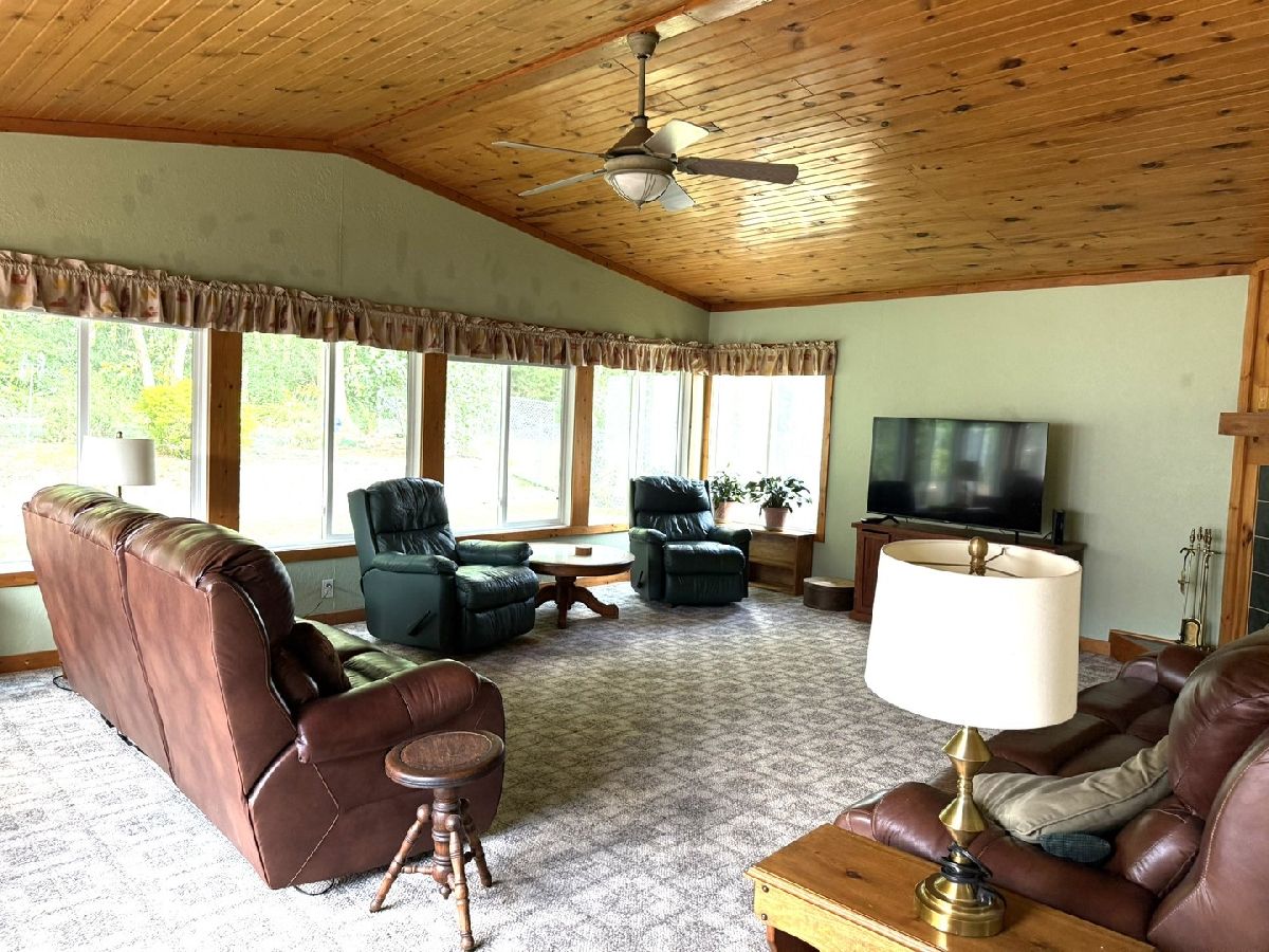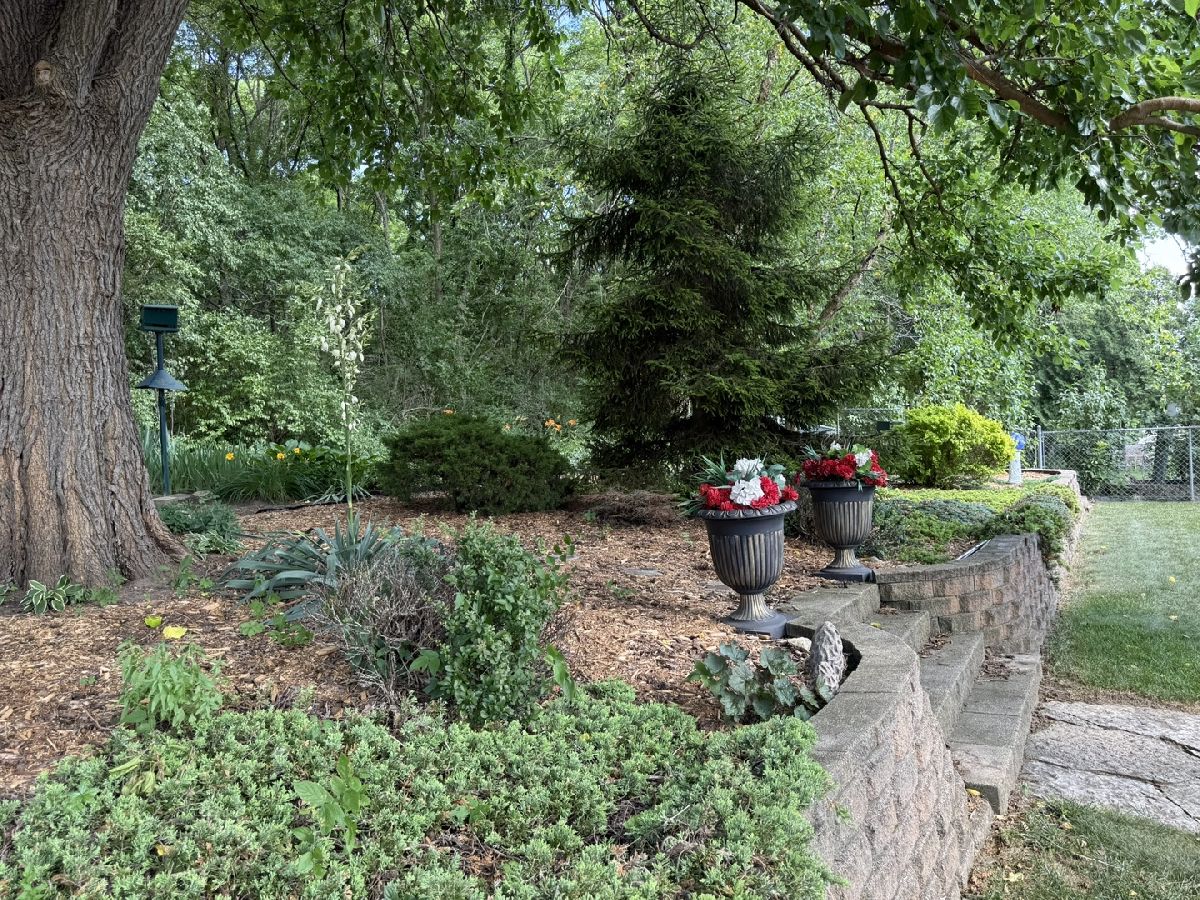 It is all right here!! Split Bedroom floor plan with 3 bedrooms and 2 full baths. Plenty of light with cathedral ceilings and Large 3 season room that walks out onto a shaded Patio and Beautiful Flower Garden. 3 season room also has fireplace so room can be used in winter. All this backs up to Kieselburg Forest Preserve. Completely Private!!. Kitchen boasts of custom built storage inside kitchen cabinets. All new appliances. Large kitchen snack bar. 6 panel doors. Large Master Bedroom Suite with double bowl sinks, whirlpool and large shower in Bath. Skylights in bathrooms and kitchen. Added features are 2nd fireplace in living room, gutter guards and a heated 2 car attached garage. The Lot rent is $755, plus water, sewer, gar