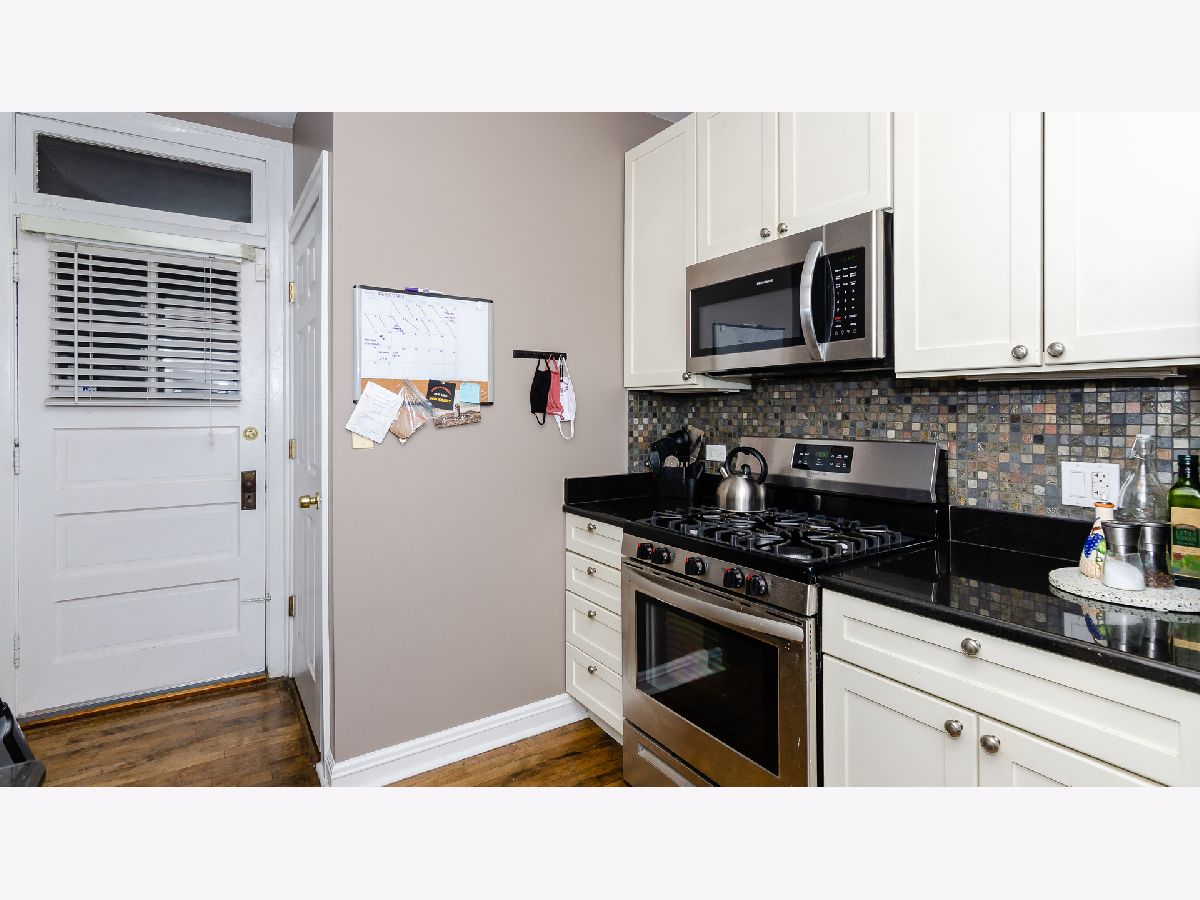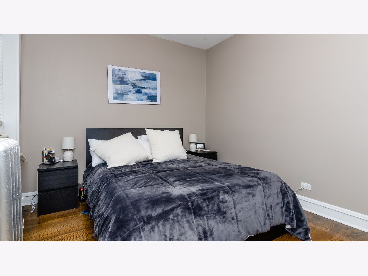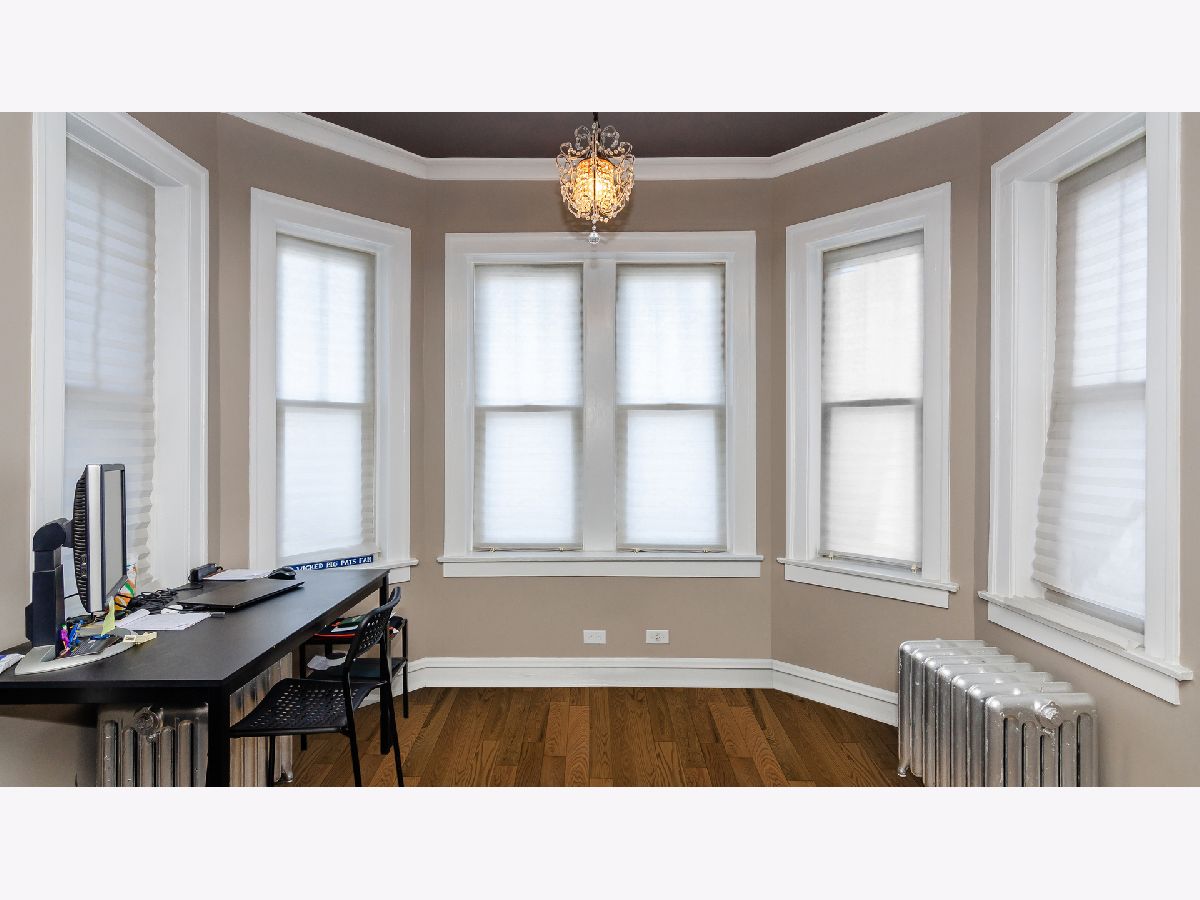 There's No Place Like Home! The only unit in the building with dedicated parking. 2 spaces! Charming vintage condo on a brick paver street in the Harrison Arts District. Freshly painted and newly refinished hardwood floors throughout. Spacious living room with decorative fireplace and built-in shelving. Enjoy the additional sunroom (office) space for your work from home needs. Condo features separate dining room and beautiful kitchen with all new SS appliances, granite countertops and in-unit laundry. Bathroom with neutral brick-layer style tile. Additional storage space in basement. Walk to blue line, and Harrison Street arts district shopping and restaurants.