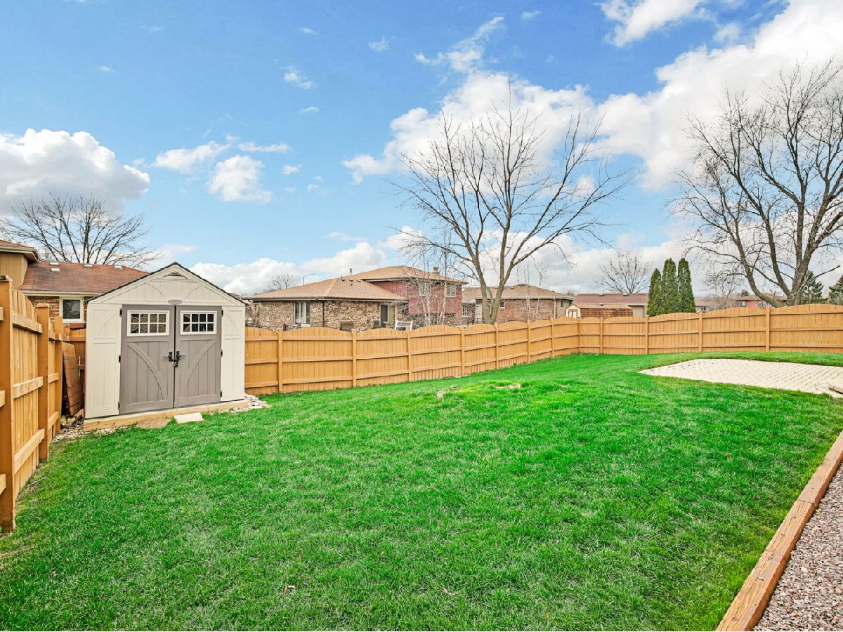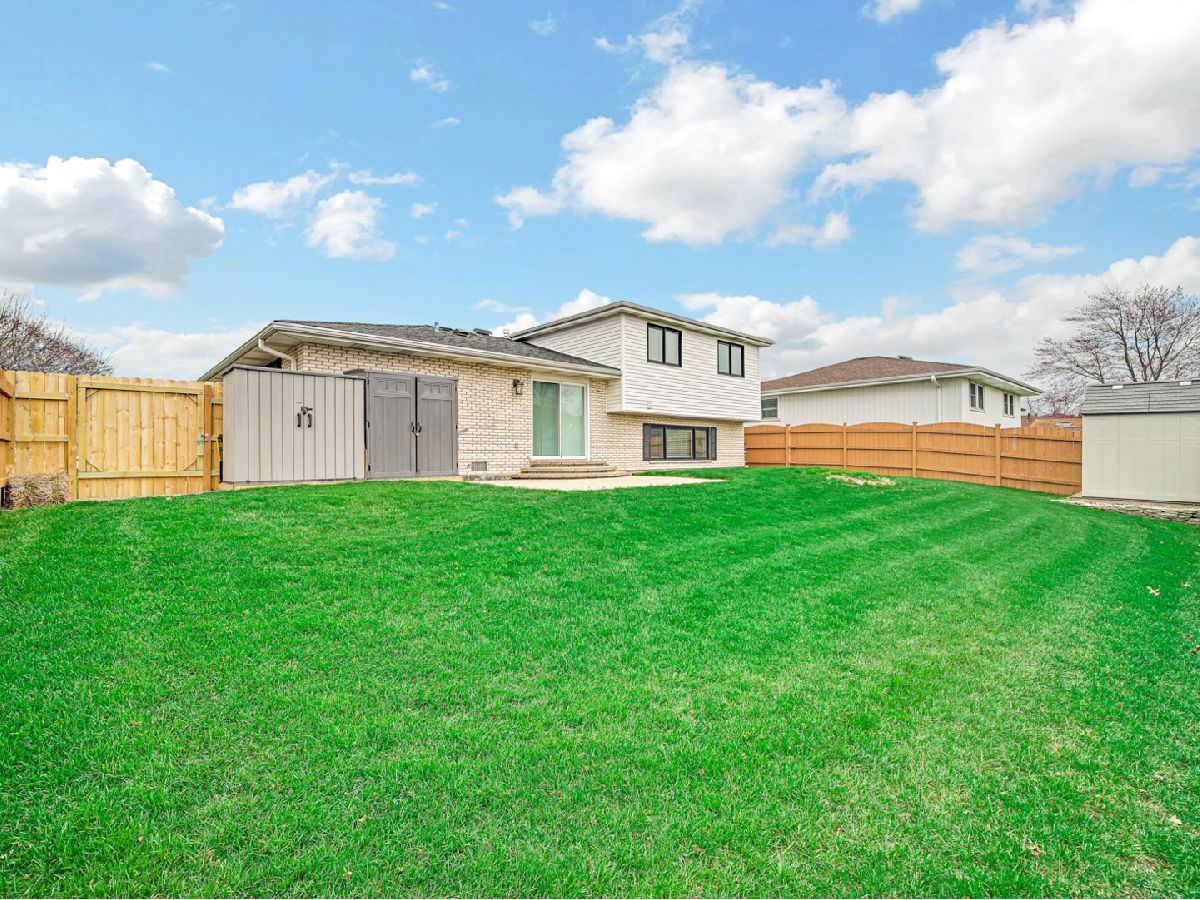 Pristine Split Level in a great Tinley Park neighborhood, Low taxes! 3 Bedrooms, 2 Full Baths, and immaculately cared for. Completely updated from top to bottom. The spacious living room, formal dining room, hardwood floors throughout. Tile foyer are all part of an open floor plan. Plus, there's a bright and sunny eat-in kitchen with granite counters and backsplash, and white trim; and all the appliances stay, plus washer and dryer! Large Family Room with Brick, Wood-burning Fireplace (or gas); 6-panel doors; crown molding; Marvin windows; 2.5-car attached garage, new concrete driveway! Great fenced in backyard, sheds for storage, paver patio. New furnace, water heater, lighten, outlets, landscaping and sprinkler system. Shows Extremely Well! Located in the 230 High School District, close to 80th train station, shopping and highways
