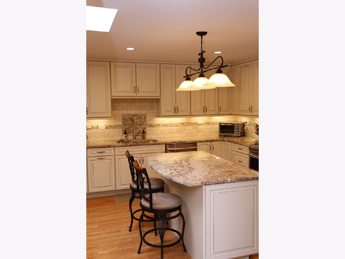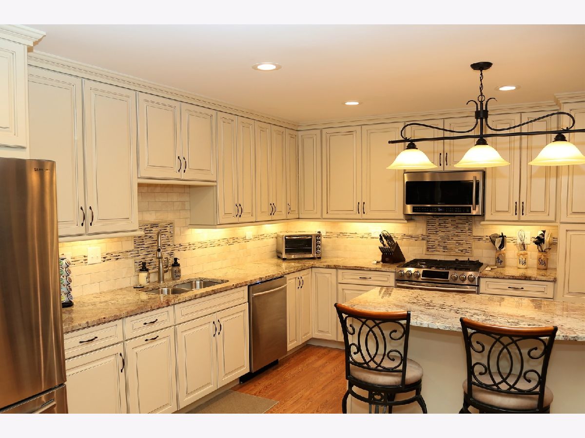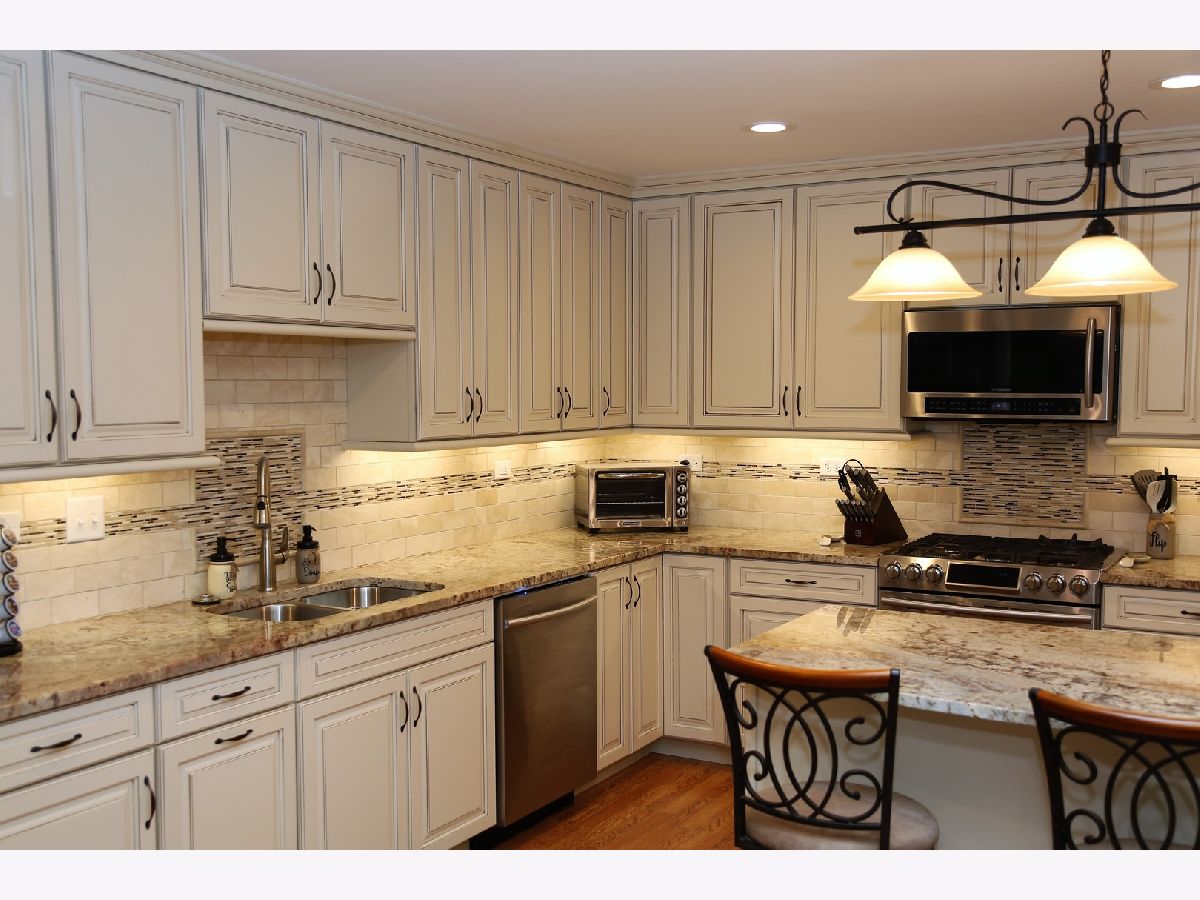 This beautiful townhome has it all! It backs up to a gorgeous, sprawling hilly grassy expanse, is located on a cul-de-sac, and shows like a model! The stunning chef's kitchen was totally redone in November of 2019 and includes pull out shelving and cabinets, slow closing drawers and cabinets, a pull out trash cabinet, wine racks, a double sink, beautiful cabinetry and lots of cabinet room, a beautiful custom tile backsplash, a large center island with extra cabinet space and space for chairs, gorgeous granite countertops, a large skylight, recessed lighting, a spice drawer, great stainless steel appliances, two icemakers in the refrigerator/freezer and more. The living room includes lots of windows and a cozy fireplace with glass doors, gas logs and a gas starter. The full sized dining room has sliding doors which lead to the deck, which overlooks the rear expanse. The second bedroom features a window seat and a ceiling fan with a built in lighting fixture. The large master bedroom includes a ceiling fan with a built in light, a big walkin closet with shelving and drawers, and sliding doors leading to the deck. There is also a private master bathroom with ceramic flooring, a shower, and a double sink and vanity. The beautiful lower level family room features recessed lighting, sliding doors leading to a patio, a full bathroom with a shower, sink, ceramic floor and a wide vanity. There is also a large utility room with a washtub. The 20'x20' garage is even fantastic! Its got many cabinets, a window, a heater, extra storage area, fully finished and paneled walls, a sealed floor (2020), lots of extra lighting, and drop down attic stairs. The garage door has been replaced. It's a handyman's dream! The main hall has a closet with cabinet space, a coat closet, and a custom nook. There is another full bathroom off the hall with ceramic tile flooring and a bathtub. There is lots of closet space throughout the home. The Pergo flooring is newer, and the carpeting was replaced in November of 2021. The windows and sliding glass doors were replaced in 2018. The furnace and central air conditioner were replaced in September of 2020. The kitchen was totally redone in May of 2019. There is a drop down shelf in the laundry room for your laundry needs. There is a huge crawl space allowing for extra storage. The composite floor of the deck was replaced in 2016. The gas grill is included. There is a tree line between the home and Heather Ridge. This subdivision is near schools, Route 294, Milwaukee Avenue, Route 120, stores, etc. The deck is 38x12.