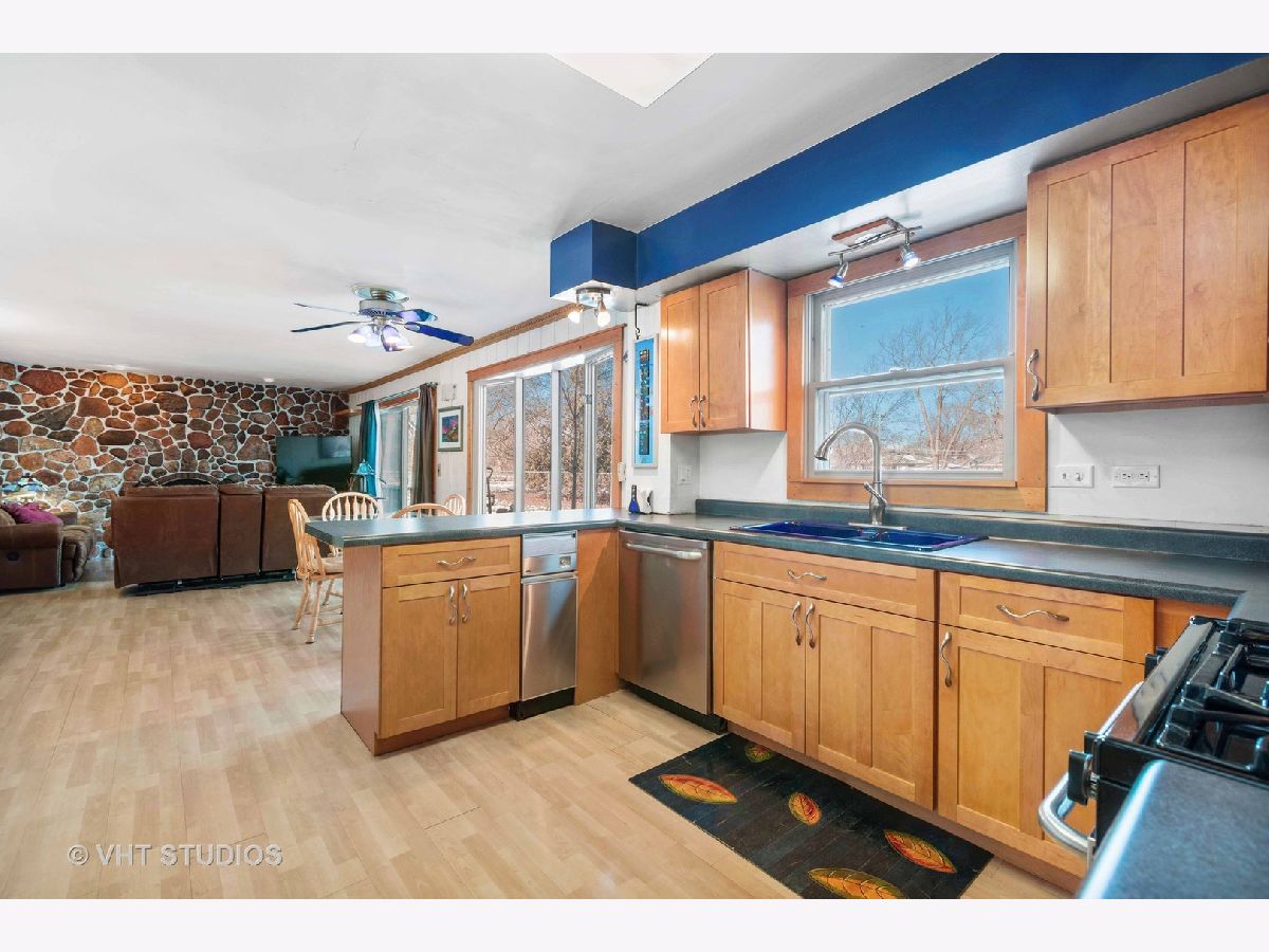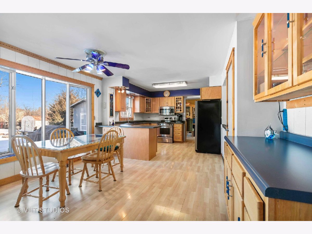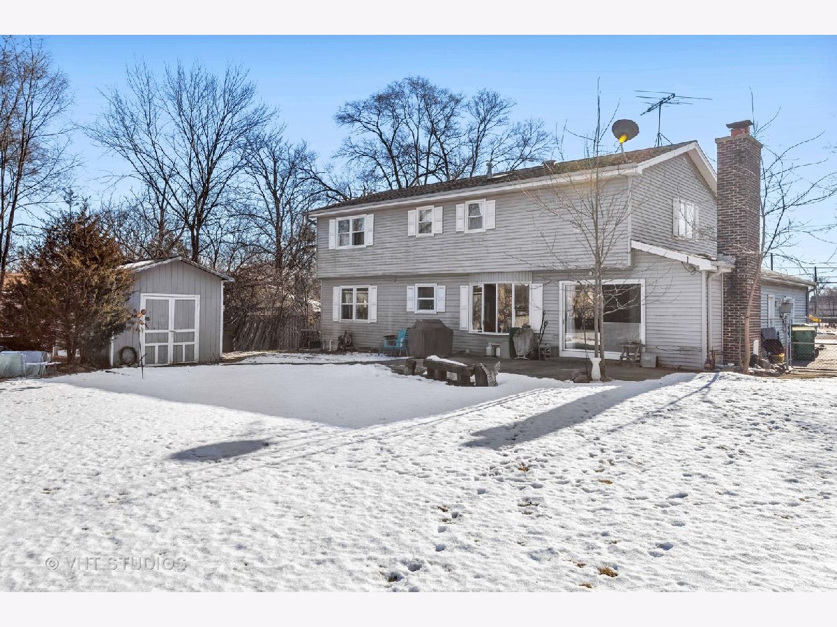Bring your cars, trucks, boats and campers...Rarely available large piece of fenced in land at .61 acres. Property offers a 4BR 2.1 BA home just one block from Wheeling High School. Home already has a 2-car attached garage on the property, new owner can easily add another 2-car garage and get 6-8 cars on the oversized driveway and side-pad. The main level features an open concept kitchen with an eating area connected to the family room that has a beautiful natural stone wood burning fireplace. Other kitchen features include peninsula counter space and a built-in buffet/dry bar area. All stainless-steel appliances and sliders to the huge backyard. Massive primary suite has a walk-in closet and en-suite bath. Three other nice sized bedrooms and another full bath. Main floor laundry/mud room has a utility sink. Partially finished basement hosts an office, extra storage space and another wood burning fireplace. Ideal location within walking distance to local library and parks. Close to new One Wheeling Town Center and Metra Train!