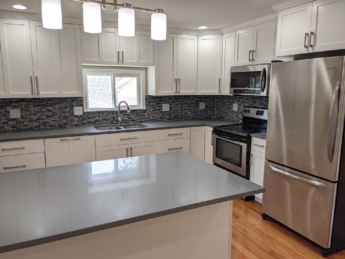 Must See, you'll be amazed at how beautiful this one is inside! Completely redone from the studs, new insulation, electrical, drywall, lighting, flooring, bathrooms, kitchen and more! Main floor all hardwood floors, kitchen with huge island breakfast bar, stainless steel appliances, Bosch cabinet front dishwasher and pantry. Main floor full bath and 2nd full bath upstairs. Upstairs 2 bedrooms and an office, bonus room or nursery. Fenced backyard. 10' x 8 deck. Mud room between garage and house. Oversized garage is 14' x 17'. Exterior is all vinyl siding and vinyl windows, don't let the exterior fool you!