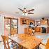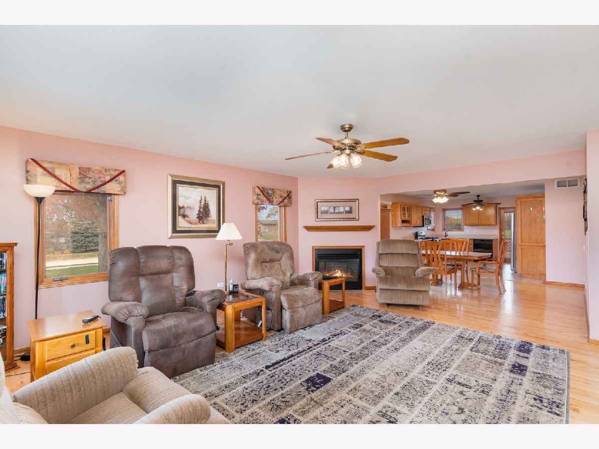 This inviting 2-bedroom, 2-bath home welcomes you with a charming covered front porch overlooking a professionally landscaped lot. Step inside to a spacious eat-in kitchen featuring oak cabinets, a built-in pantry, quartz countertops, ceramic tile flooring (kitchen), and Maple hardwood floors in the adjoining dining area. Enjoy easy access to the wrap-around deck, perfect for relaxing or entertaining through the kitchen door or the sliding glass doors in the dining area. The large living room offers warmth and comfort with its gas fireplace, Maple hardwood floors, and custom blinds. The primary suite features a private bath with a newer walk-in shower and a generous walk-in closet. Both bedrooms boast hardwood floors and ceiling fans for added comfort. Convenience continues with a main-floor laundry room complete with a utility sink and extra cabinetry for storage. The full unfinished basement is plumbed for a future bath and offers abundant storage or potential for expansion. Updates/upgrades include: HVAC (2019), roof (2018), Maple hardwood floors, custom pantry, quartz countertops (2004), tankless hot water heater ( 2019), master bath shower fitter (2023), and custom blinds throughout. Walking distance to the wonderful Children's Garden, park, and grade school.