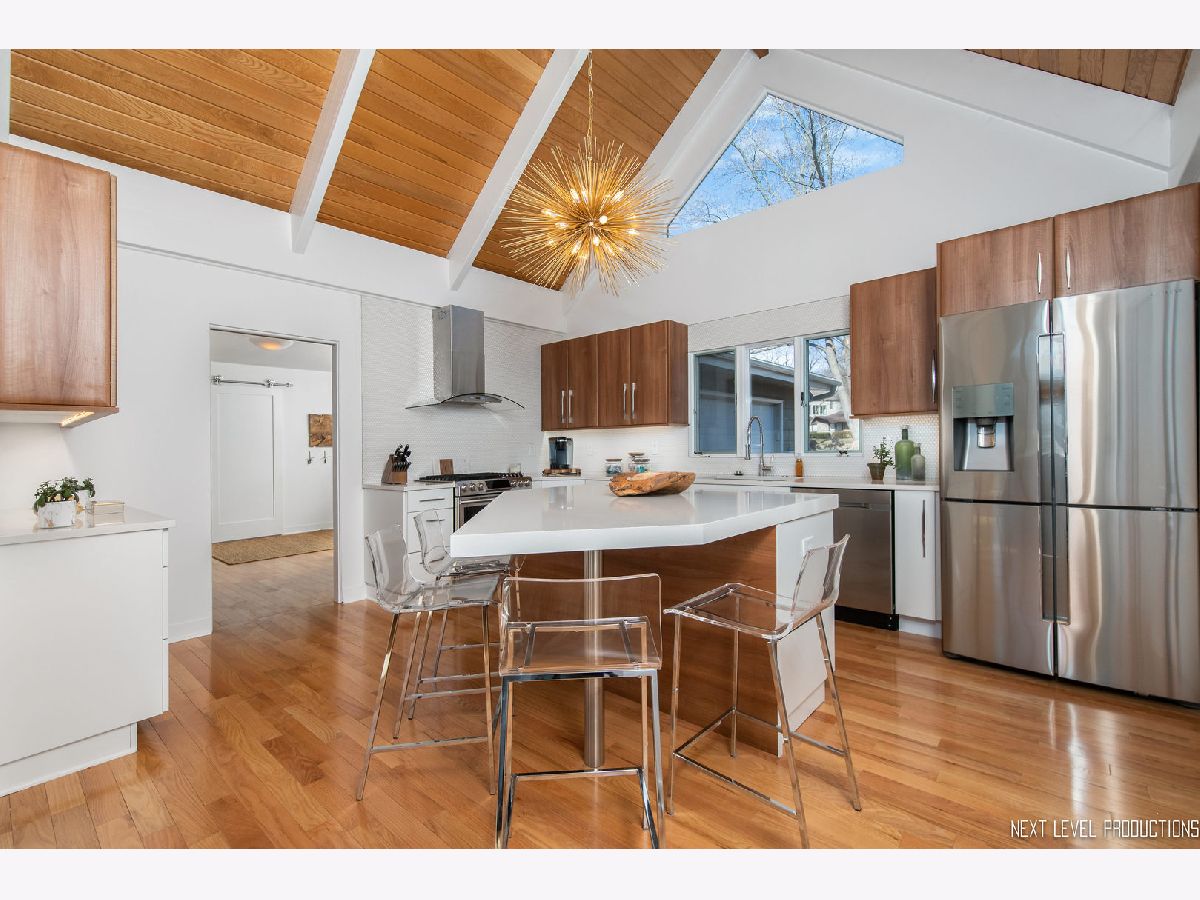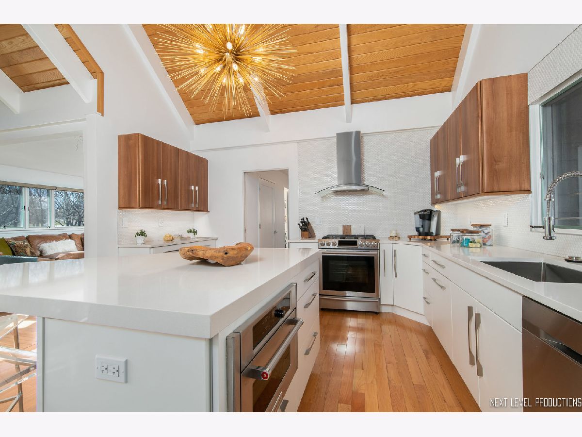 Rare opportunity to own this mid-century East Highlands cul-de-sac home with a stunning "million dollar view" of the DuPage River and the Lincoln Greenway. This stately ranch-style home has enjoyed a complete renovation (2015 - 2019). Fresh decor includes a completely repainted interior and exterior, beautiful oak flooring throughout, solid wood Jeld Wen doors and all new architectural trim. The pristine contemporary-style kitchen features all-new sleek cabinetry, stainless steel appliances, Quartz countertops and a large 4-seat island. A separate dining room is ideal for entertaining. The gorgeous Great Room boasts a vaulted light oak ceiling with white beams, floor-to-ceiling wall of windows (with heat and fade resistant film) offering a panoramic view of the River. Also, roller shade blinds, and a beautiful remote controlled Heat & Glo gas fireplace embedded in a tiled wall. The Master bedroom includes a double closet with built-in shelving; and an attached and completely updated master bathroom boasts all new - custom tile shower surround with glass doors, fixtures, vanity, ceramic tile flooring. Additional interior features -- separate laundry room, mud room, powder room, additional bathroom with tub/shower combo, full 2000 sqft, 5' deep, well lit, clean, dry, concrete crawl space, with easy access great for storage. New hot water heater, humifidier, and air-conditioning system. Exterior features include a 2-car "side load" garage (with new garage door). Professional landscaping, lawn & landscape sprinkler system, landscape lighting, custom fire pit, new driveway, new shingled pitched roof. Completely remodeled 3 season porch. Enjoy easy access to Downtown Naperville, trails, parks, School District 203, and major highways.