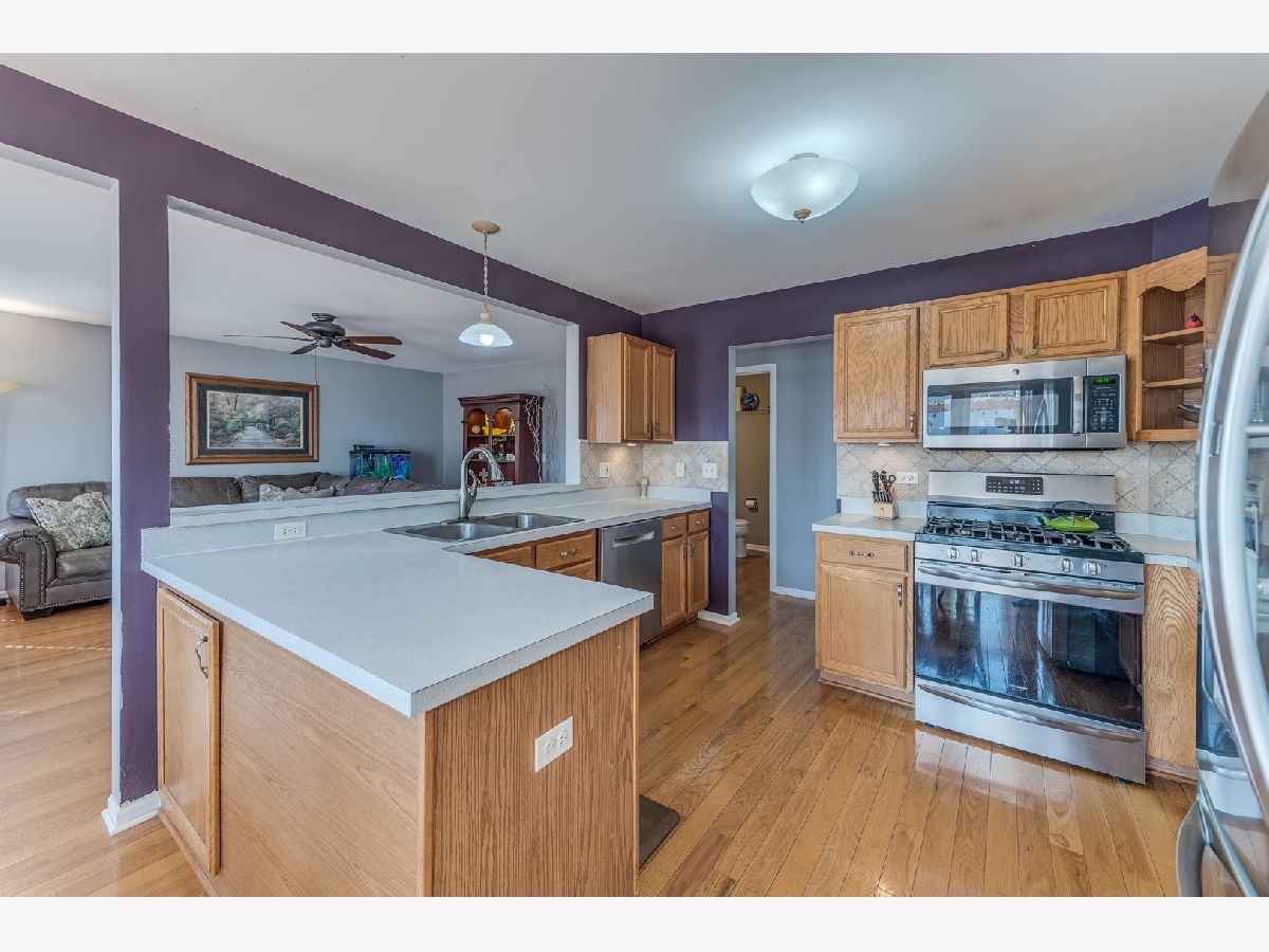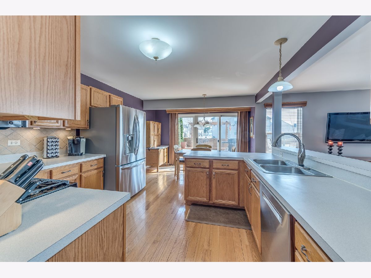 This Stonegate model in the highly sought after Misty Hill Farm subdivision offers a desirable floor plan + HW floors throughout! Premium cul-de-sac lot provides a fully fenced backyard with scenic views of the pond and nature preserve area. Lots of *NEW* including front door, stove/oven, dishwasher, micro, roof, furnace, A/C, sump pump battery back-up system, outdoor fire pit and garage door. Dramatic 2-story foyer leads to open concept kitchen with gorgeous backsplash and under cabinet lighting, separate eating area and access to the deck and hot tub. Adjoining Family Room with extra windows provides plenty of natural light and picturesque viewing of the nature refuge. Large stunning Dining Room, main level Laundry, separate cozy Living Room and 6-panel doors throughout provide highlights not found in other models. Spacious Primary BR ensuite features large windows, w/i closet and remodeled bathroom. Full partially-finished basement provides more entertaining space, large storage area and built-in workbench. Curb appeal and location can't be beat... near SO many amenities including schools, Metra and Brittany Park. This one is move-in ready, so put it on your list to see ASAP. Welcome Home!