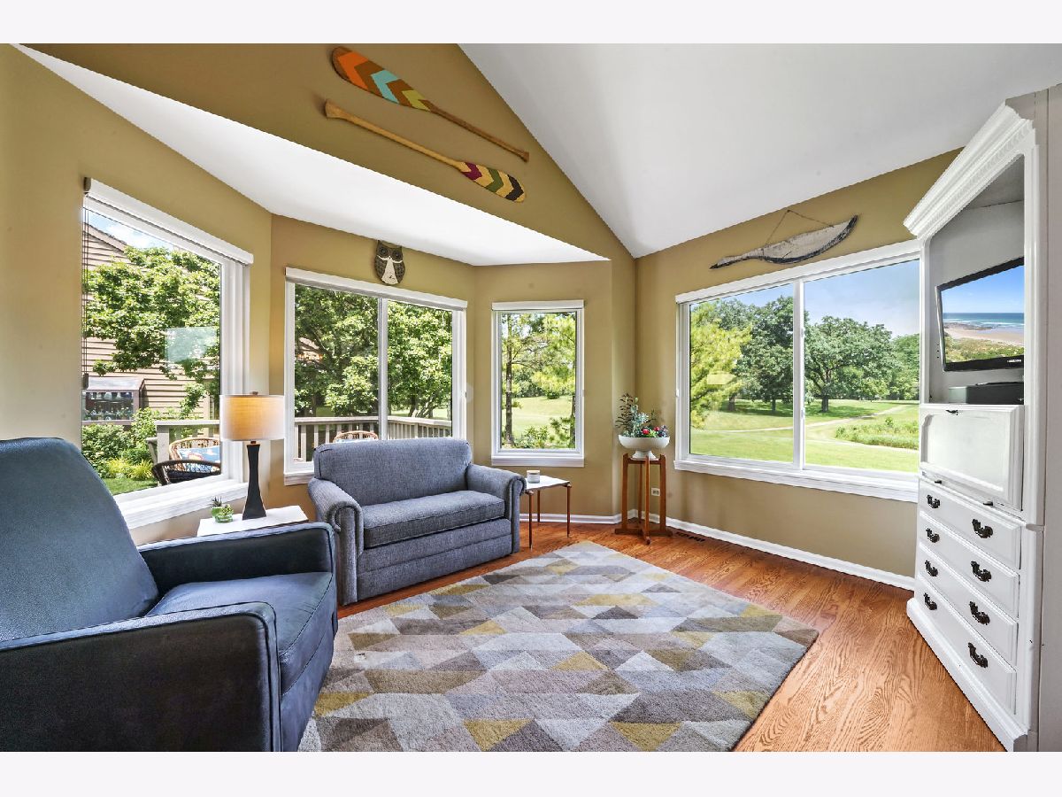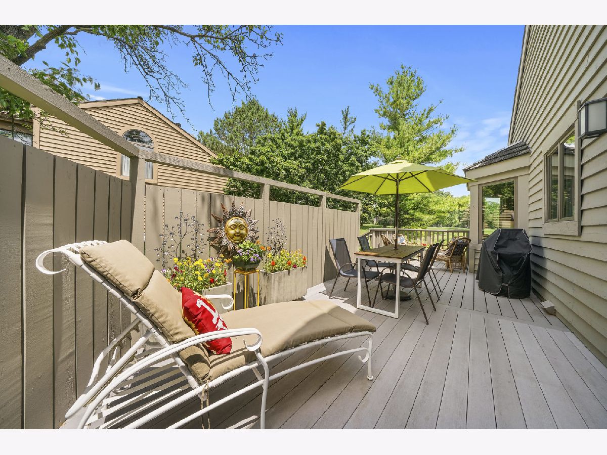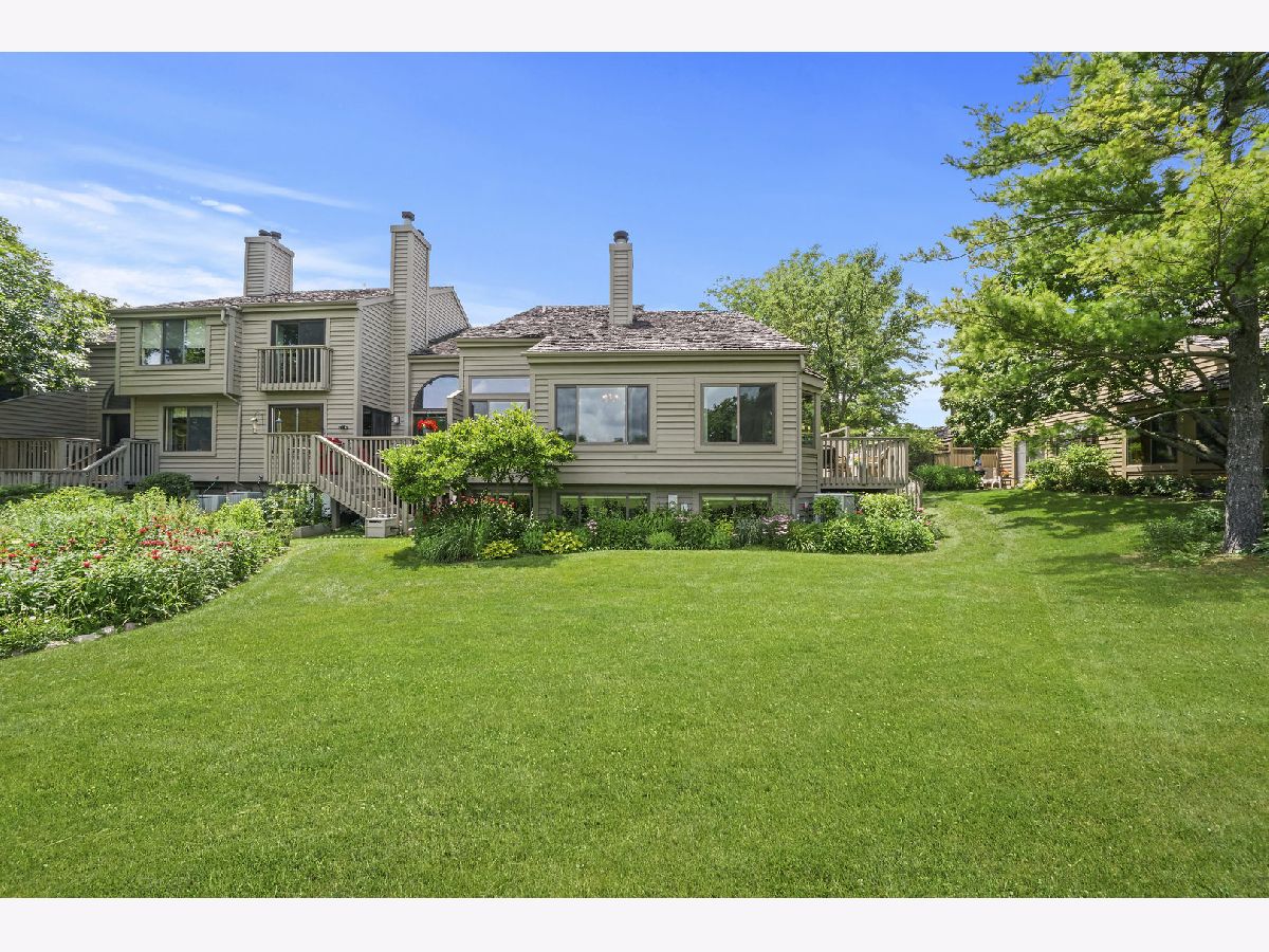 Most requested amenity in Lake Barrington Shores is a first floor master bedroom and we have a beauty in this home. Panoramic water views of large pond and open fairways in this light and bright lovely end unit Augusta home. Direct access to attached 2 car garage. THIS IS A MOVE RIGHT IN HOME with a sought after location. 3 bedrooms, 3 full and 2 half baths with a first floor master suite! Over the last 3 years all windows have been replaced, all new carpeting, new garage door, new and expanded enclosed deck for great entertaining, new refrigerator and new tile on backsplash in kitchen. Freshly painted in today's neutral colors. Located on a cul-de-sac close to the Oak Hill gate for easy access in and out of Lake Barrington Shores. Walk 1 block to the walking trails at Grassy Lake Forest Preserve. The golf course putting green and driving range are within 2 short blocks. You are surrounded by nature through all 4 seasons. Hardwood floors refinished on the first floor. White kitchen with granite countertops, stainless steel appliances, tile backsplash, double oven, large island, pantry closet, eating area and access to deck. Dramatic living room with cathedral ceilings and views over nature. First floor family room or study and large 1st floor master bedroom with walk in closet and large bathroom with 2 sinks, shower and tub. A loft/office area is located on the second level with custom built-in bookcases. There are 2 bedrooms on this level each with its own bathroom. The large English window lower level has a wet bar, laundry and half bath plus huge unfinished area great for storage or could be an exercise room, theater room etc. Current owner has added perennials to border areas which further enhances the homes appeal. Enjoy the incredible amenities Lake Barrington Shores offers all included in your assessment. Boat on the mile long lake, swim in 2 pools, play tennis, pickleball, paddle tennis or boccie ball, and for an extra fee join the golf club and golf on the 18 hole course. There are many fitness activities, and clubs for every interest. This is a one of a kind community in Chicagoland.,