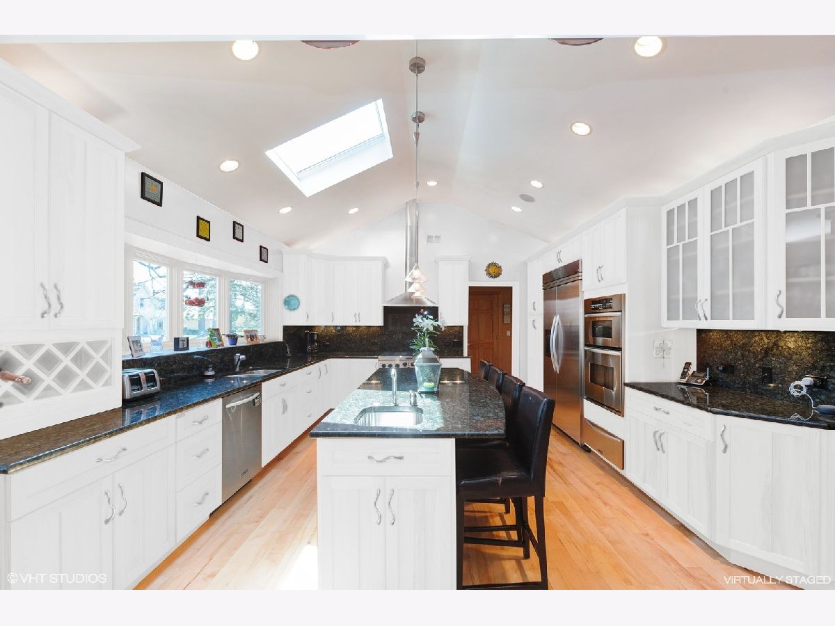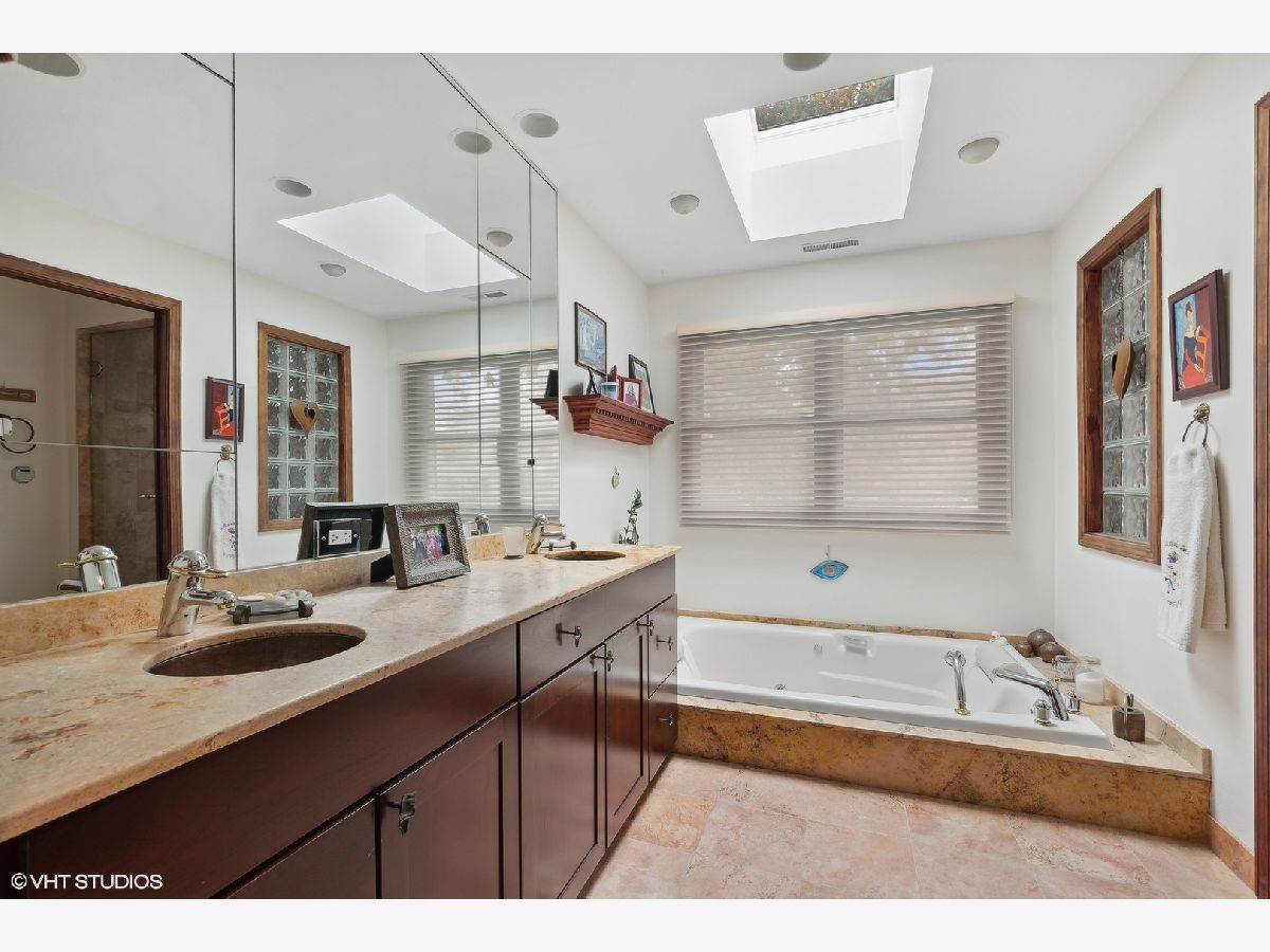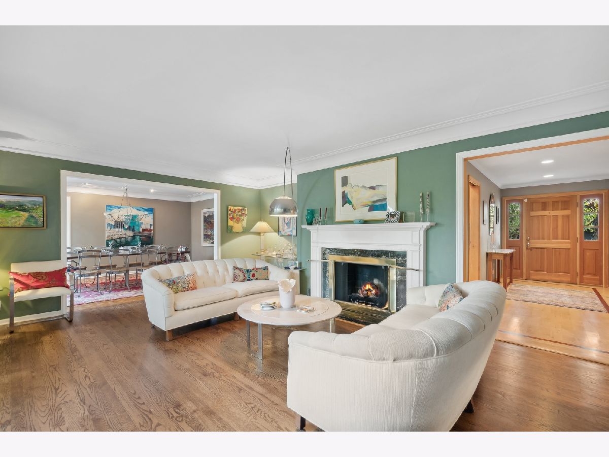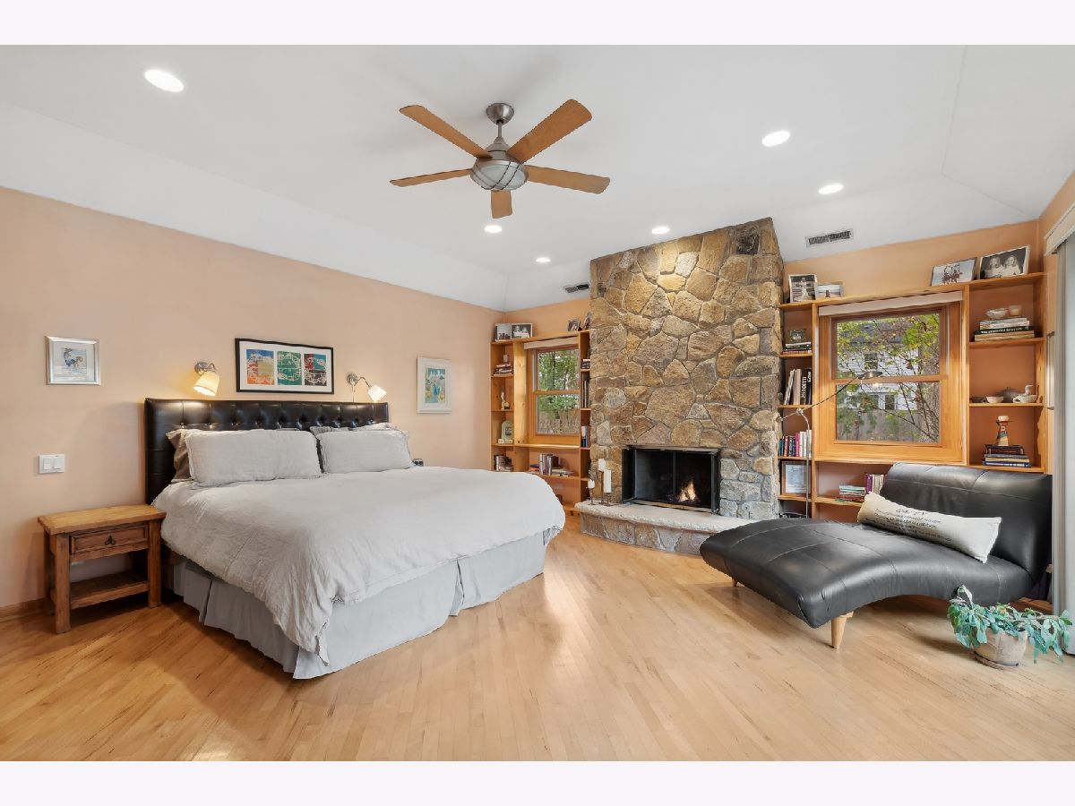 Are you tired of cookie cutter? Drive down Beverly Place in Deerfield to find a tree-lined street with all custom homes. This is a spectacular and sophisticated custom ranch home designed for your family's comfort and enjoyment. You will see that this home has been renovated and upgraded keeping all of the best details. These are distinguished by original plaster crown moldings, expansive Chicago-style windows, hardwood floors throughout, plaster walls and full finished basement. There is an enormous Family Room complete with floor-to-ceiling stone fireplace flanked by built-in bookcases with window seats, vaulted ceiling and French door access to a gigantic patio for a seamless blend of indoor work or play and enjoyment of your beautiful yard. You will also find a huge Kitchen with premium KitchenAid appliances, soaring ceiling, jumbo skylight, panoramic bow windows, oversized island, additional eating area for large table. Access to two-and-a half car garage is from the kitchen. You will be delighted by the completely private sumptuous Primary Bedroom Wing which includes: a luxury marble bath complete with dual copper sinks, a sunken 2-person spa tub, skylight, a shower with body sprays and heated floors; huge bedroom with floor-to-ceiling stone fireplace surrounded by built-in bookcases, vaulted ceiling, walk-in closet and French door access to your private second patio. The bedroom area includes 2 additional updated main floor bathrooms with bathtubs (one with original mid-Century ceramic tile!), a main floor laundry and three additional generously-sized bedrooms, one presently being used as an office. Centrally located to the home is the fabulous Living Room with magnificent windows, center fireplace and plaster crown moldings which adjoins the separate Dining Room large enough for a table seating 12! The Lower Level includes a huge recreation room with stone fireplace, 5th Bedroom, 4th Bathroom, laundry/utility area and loads of storage space! This home is equipped with a whole house Generac generator, security system, 3-zone HVAC and is fully wired for sound. New Roof in 2023! The extra-large double lot is rare for this location on Beverly Place within easy walking distance to award-winning Kipling Elementary School as well as downtown Deerfield amenities. Broker Owned.