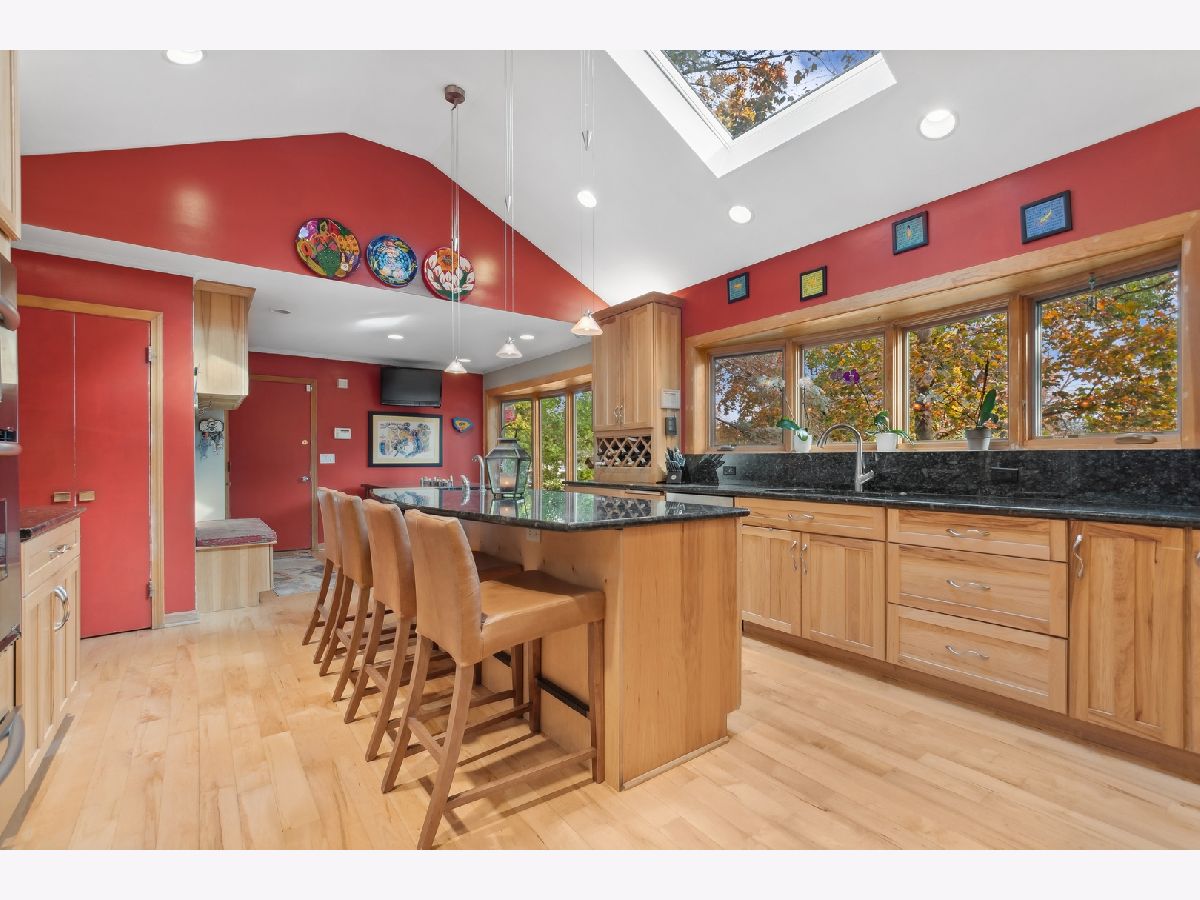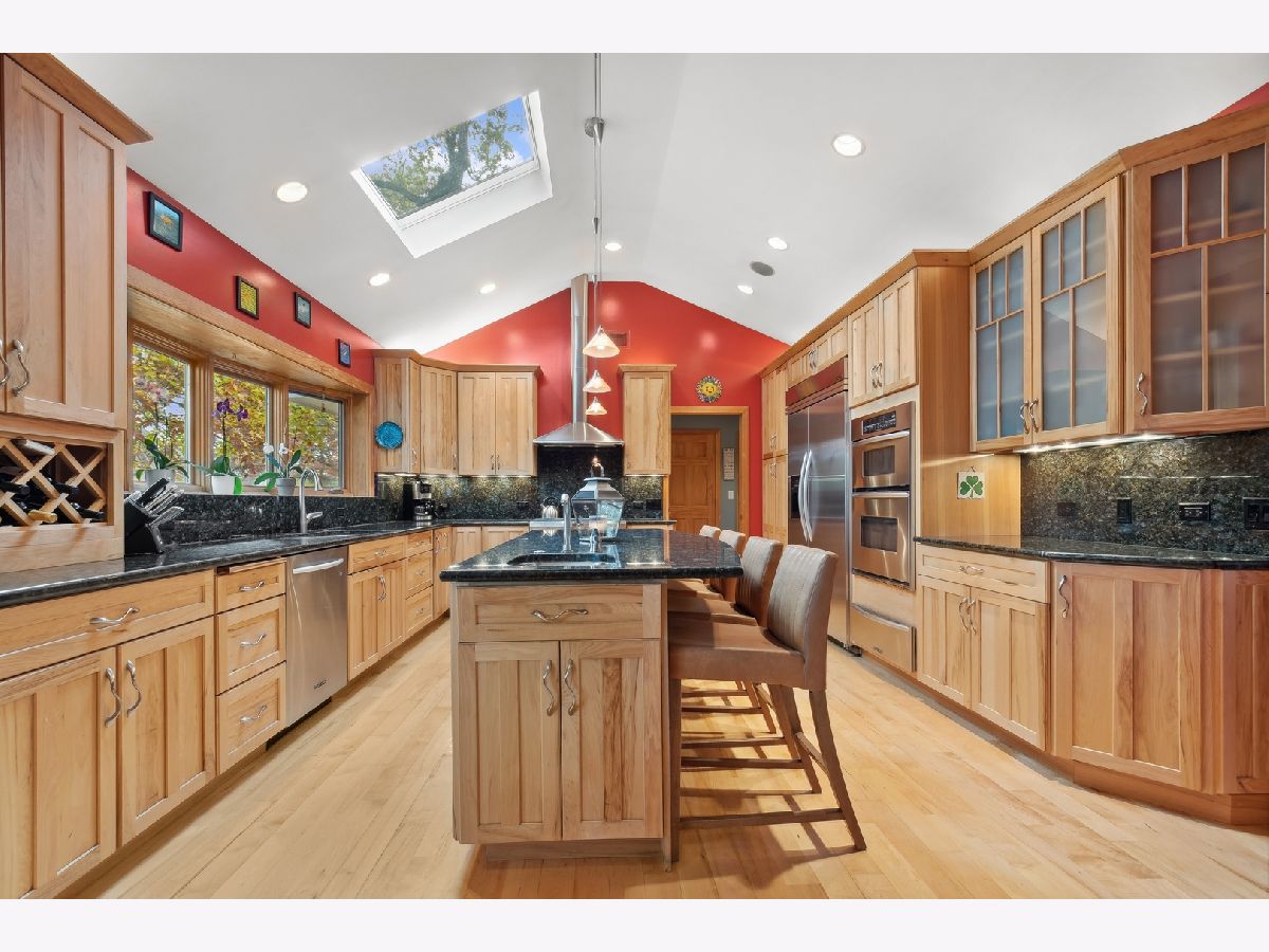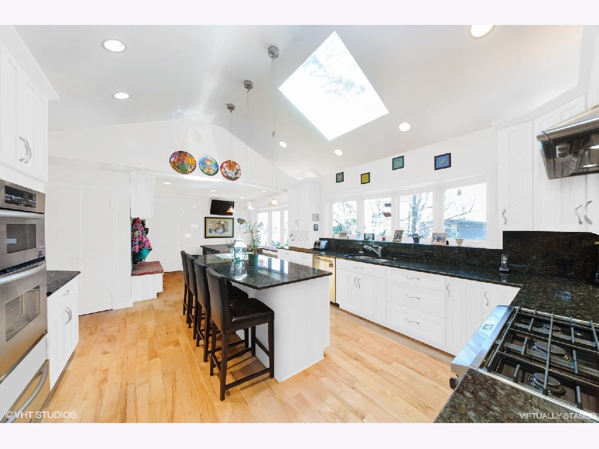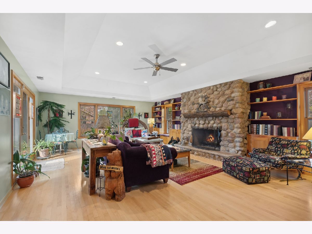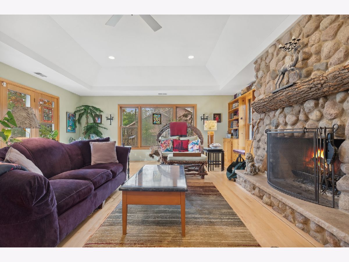 Are you tired of cookie cutter? Drive down Beverly Place in Deerfield to find a tree-lined street with all custom homes. This is a spectacular and sophisticated custom ranch home designed for your family's comfort and enjoyment. You will see that this home has been renovated and upgraded keeping all of the best details. These are distinguished by original plaster crown moldings, expansive Chicago-style windows, hardwood floors throughout, plaster walls and full finished basement. There is an enormous Family Room complete with floor-to-ceiling stone fireplace flanked by built-in bookcases with window seats, vaulted ceiling and French door access to a gigantic patio for a seamless blend of indoor work or play and enjoyment of your beautiful yard. You will also find a huge Kitchen with premium KitchenAid appliances, soaring ceiling, jumbo skylight, panoramic bow windows, oversized island, additional eating area for large table. Access to two-and-a half car garage is from the kitchen. You will be delighted by the completely private sumptuous Primary Bedroom Wing which includes: a luxury marble bath complete with dual copper sinks, a sunken 2-person spa tub, skylight, a shower with body sprays and heated floors; huge bedroom with floor-to-ceiling stone fireplace surrounded by built-in bookcases, vaulted ceiling, walk-in closet and French door access to your private second patio. The bedroom area includes 2 additional updated main floor bathrooms with bathtubs (one with original mid-Century ceramic tile!), a main floor laundry and three additional generously-sized bedrooms, one presently being used as an office. Centrally located to the home is the fabulous Living Room with magnificent windows, center fireplace and plaster crown moldings which adjoins the separate Dining Room large enough for a table seating 12! The Lower Level includes a huge recreation room with stone fireplace, 5th Bedroom, 4th Bathroom, laundry/utility area and loads of storage space! This home is equipped with a whole house Generac generator, security system, 3-zone HVAC and is fully wired for sound. New Roof in 2023! The extra-large double lot is rare for this location on Beverly Place within easy walking distance to award-winning Kipling Elementary School as well as downtown Deerfield amenities. Broker Owned.