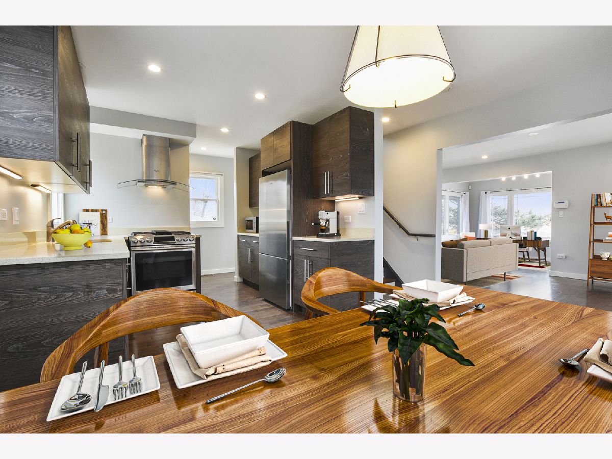 Stunning gut rehab done in 2017. 1st floor is open concept. Plenty of room with the living room AND sunroom, that can easily be a play space, reading room or office. Dining room opens to the designer kitchen with custom cabinets, quartz countertops and high end stainless steel appliances. Clean modern design vibe with hardwood flooring throughout. The 2nd floor offers 3 bedrooms plus a bonus/tandem room between two of the bedrooms. The primary bedroom has a private ensuite bathroom. There is a 2nd full bath on the 2nd floor. The basement is fully finished with a tile floor. Large family room that is "L" shaped and the laundry room. Newer high efficiency furnace and hot water heater. Parking for 3 cars. Walk to parks, school, train and downtown shops! 850 Home offers you all of the spaces you want, is perfectly updated and truly move-in ready! Come unpack and enjoy your summer!