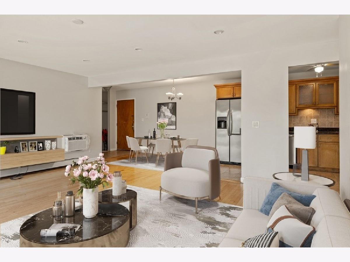 Beautiful and spacious remodeled 2 bedroom 2 bath condo in Skokie Boulevard Condominiums. This condo is over 1000 square feet and has been fully repainted. Remodeled kitchen with stainless steel appliance with open concept. Large living room featuring hardwood floors with patio door leading to the deck. Large sun filled primary bedroom with en suite and walk in closet. Condo comes with 1 exterior parking spot and storage unit. Very convenient location to CTA, Target, Starbucks, library, highway, Old Orchard Mall.