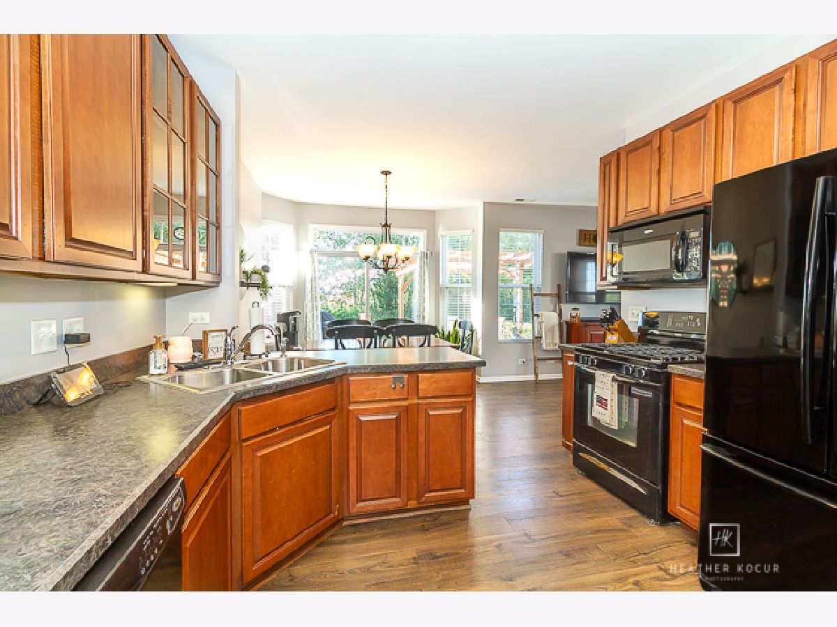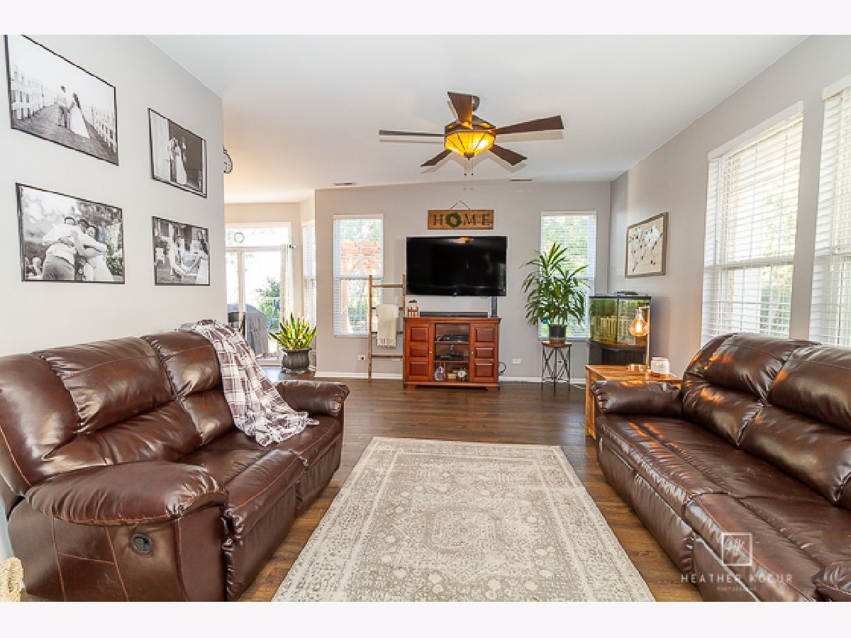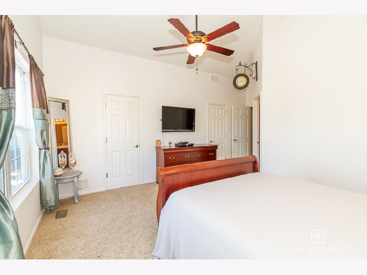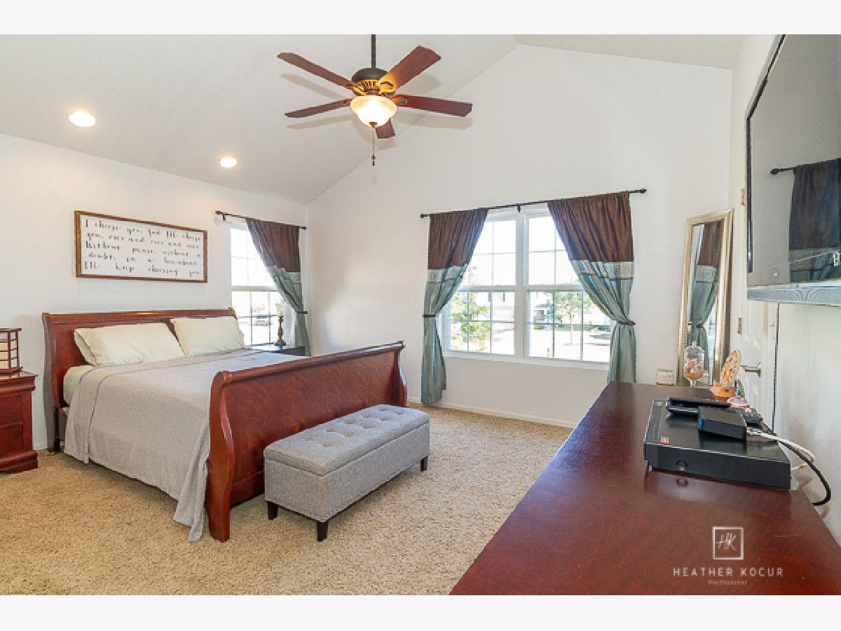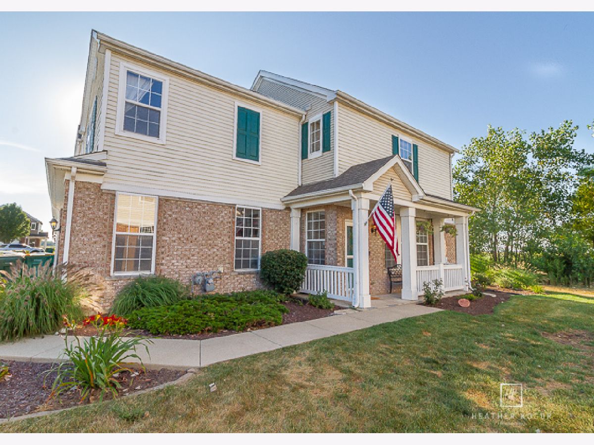 Gorgeous light filled end unit!! Literally move right in! This extremely well maintained home is situated on a cul-de-sac with one way in, one way out residential traffic only. Enjoy quiet evenings sitting under the pergola on the over sized patio watching the stunning sunsets in the open field behind you. Welcome inside where you will find raised 9ft ceilings, brand new luxury vinyl plank flooring, upgraded 42" cabinets, upgraded higher end appliances and under-mount kitchen cabinet lighting. The convenient lower level half bath has a custom shiplap design as well as custom shelving. Check out the beautiful wrought iron banister on your way upstairs where you will find TWO master bedrooms. Need space to spread out? The main master retreat has soaring vaulted ceilings, dual walk in closets and is complete with an en suite which has a raised double bowl vanity. The 2nd master has an additional huge walk in closet. A laundry room, 3rd bedroom and full bath complete the upstairs. The home has a 2 year old water softener, upgraded 6 panel doors and white trim throughout, custom 2" faux wood blinds on most of the windows, upgraded lighting and fixtures, has just been professionally painted and the HVAC was recently cleaned and inspected. Party at your place in your custom built garage bar. Living is effortless with your lawn maintenance and snow removal taken care of. Enjoy the beautiful clubhouse and all it offers with a swimming pool, basketball court, volleyball court, tennis court and exercise room. All of this and the Minooka School District! Make this hidden gem yours today!