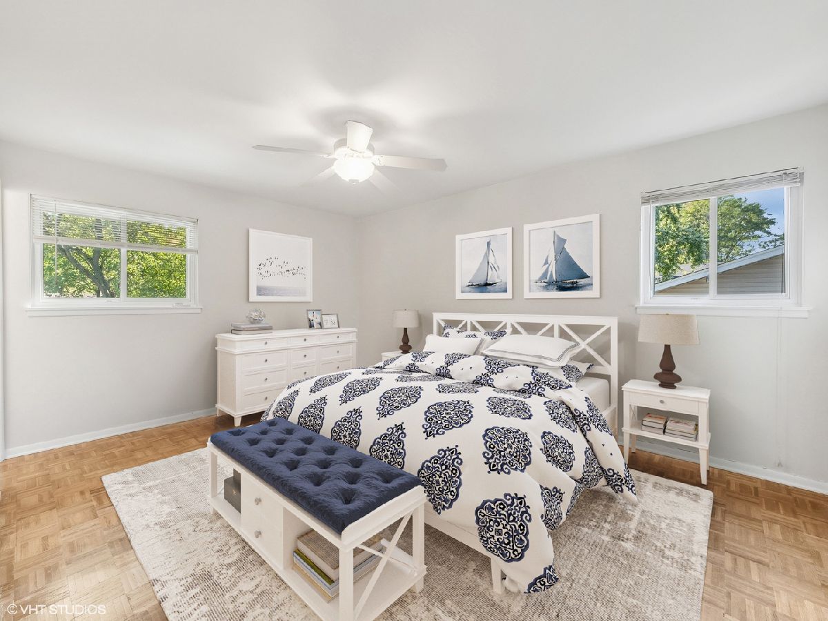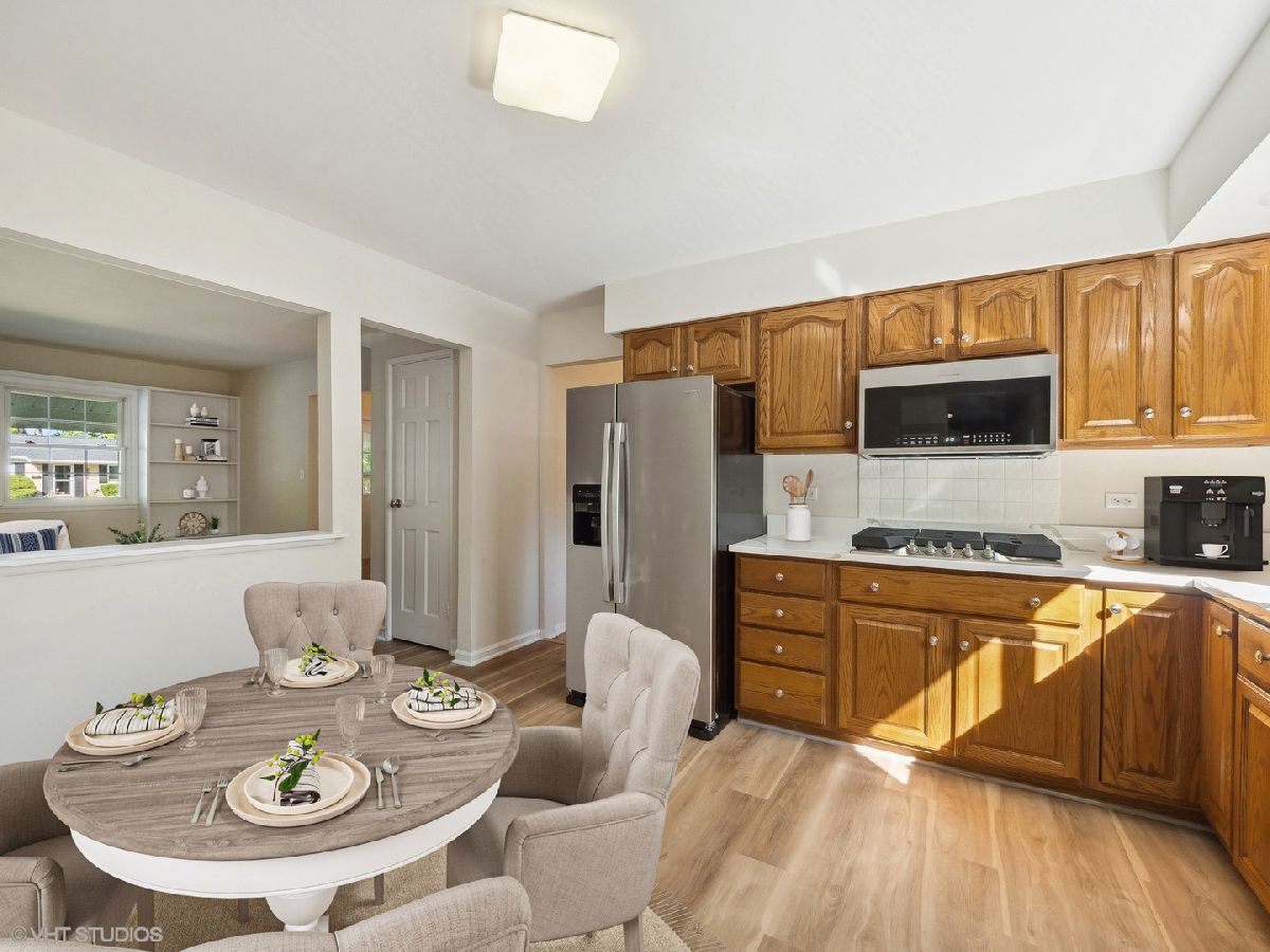 This beautifully updated Winston Park home is situated in a sidewalk community, perfect for those seeking a welcoming neighborhood. As you enter, you'll be greeted by an inviting foyer that leads to the spacious living room filled with natural light from the abundance of windows. The vaulted ceilings and refinished floors add an elegant touch to the space. The living room seamlessly flows into the dining room, providing a formal area for entertaining. The kitchen has been modernized with new granite countertops ('24), stainless steel appliances ('24), and vinyl flooring ('24), creating a fresh and inviting atmosphere. An additional space for an eat-in kitchen table adds to the functionality of the space. Adjacent to the kitchen is the family room, featuring built-ins and new vinyl flooring ('24), perfect for gatherings. The main level also includes a convenient laundry/mud room and a remodeled half bath ('24). Step outside to your private patio and spacious backyard, ideal for outdoor entertaining or relaxing. Moving to the second level, you'll find the primary suite with his/her closets and an updated primary bathroom ('24) featuring a walk-in shower. Three additional bedrooms with beautiful parquet floors and a full bathroom complete the upper level living space. Additional updates include: Roof ('23), gutters & downspouts ('23), A/C ('19), newer windows, freshly painted throughout ('24), polished hardwood floors ('24), light fixtures throughout ('24), ceiling fans in bedrooms ('24), new toilets ('24), faucets ('24). The house is conveniently located near downtown Palatine, offering easy access to Metra, dining, shopping, and entertainment options. Plus, it's within walking distance to schools and parks, providing a well-rounded living experience for the whole family.