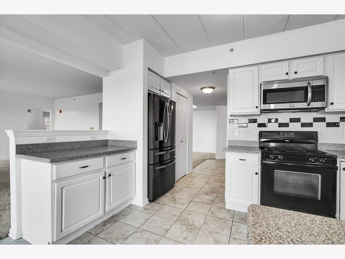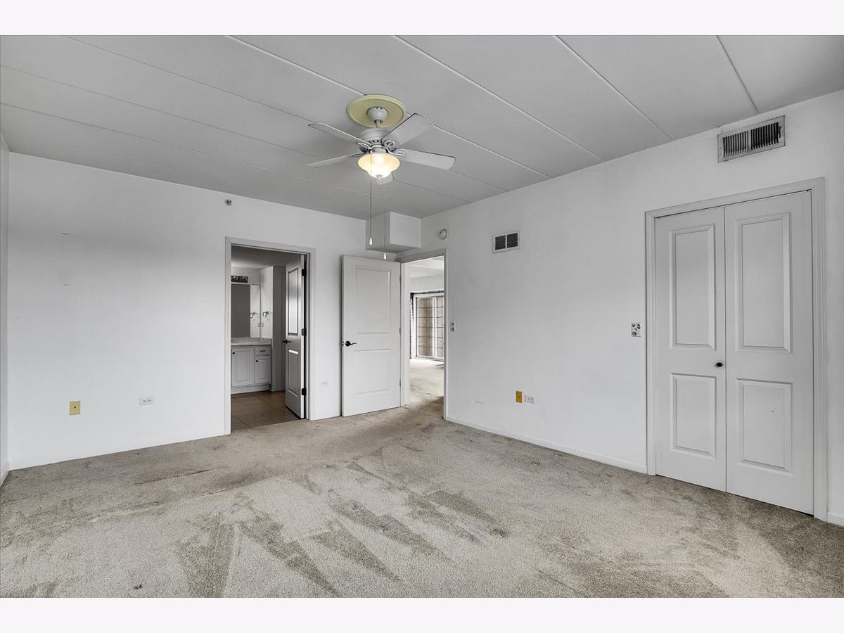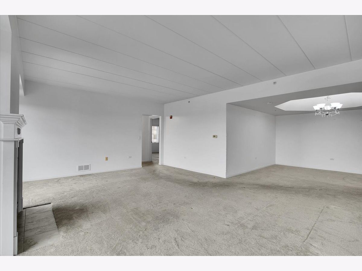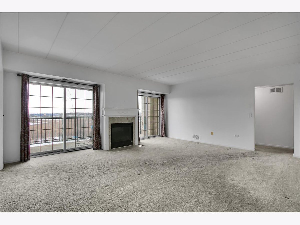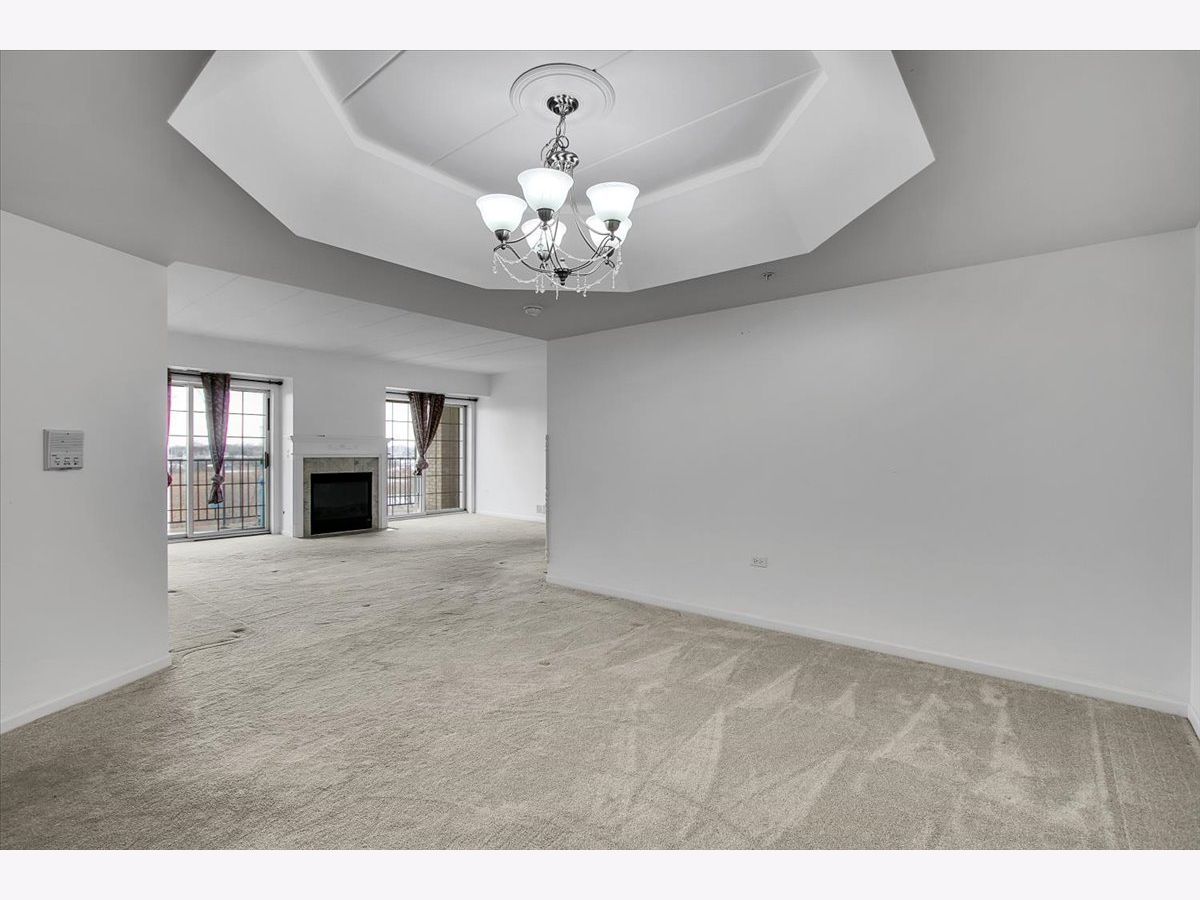 Rarely available condo in the highly desirable Farmingdale Village community. This bright, open home offers a spacious layout with an oversized dining area that can easily function as a home office or flexible living space. The living room features a cozy fireplace and large sliding glass doors that open to the balcony, filling the home with natural light. The eat-in galley kitchen includes white cabinetry, stainless steel appliances, and a practical layout for everyday living. The primary bedroom features a walk-in closet and a private en-suite full bathroom, while multiple walk-in closets throughout the unit provide excellent storage. Located in an elevator building with heated indoor garage parking. Convenient access to I-55 and I-355 and close to shopping, dining, and everyday amenities. Property is being sold as-is.