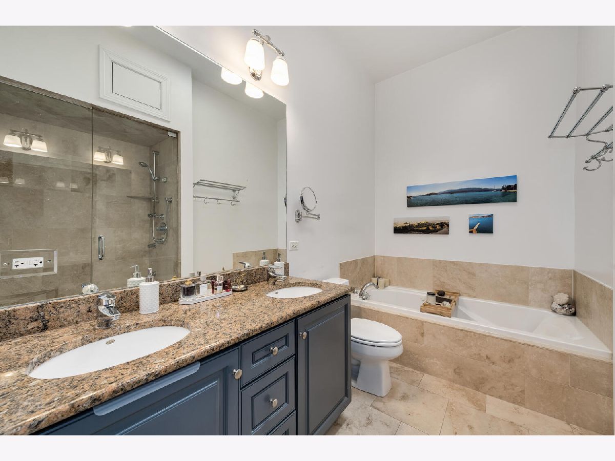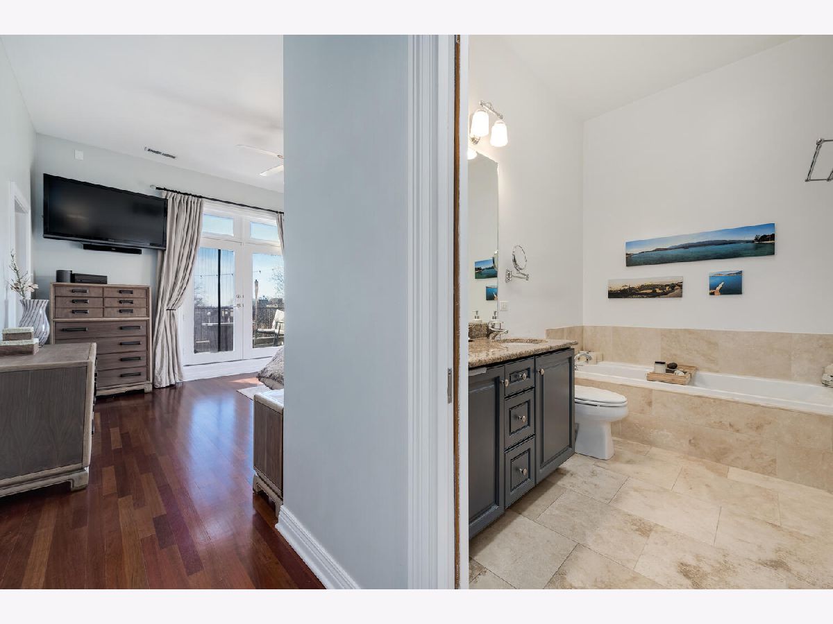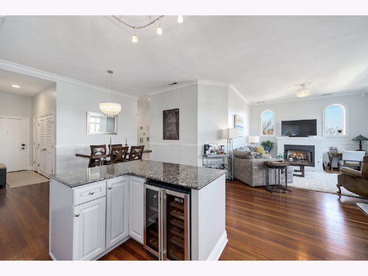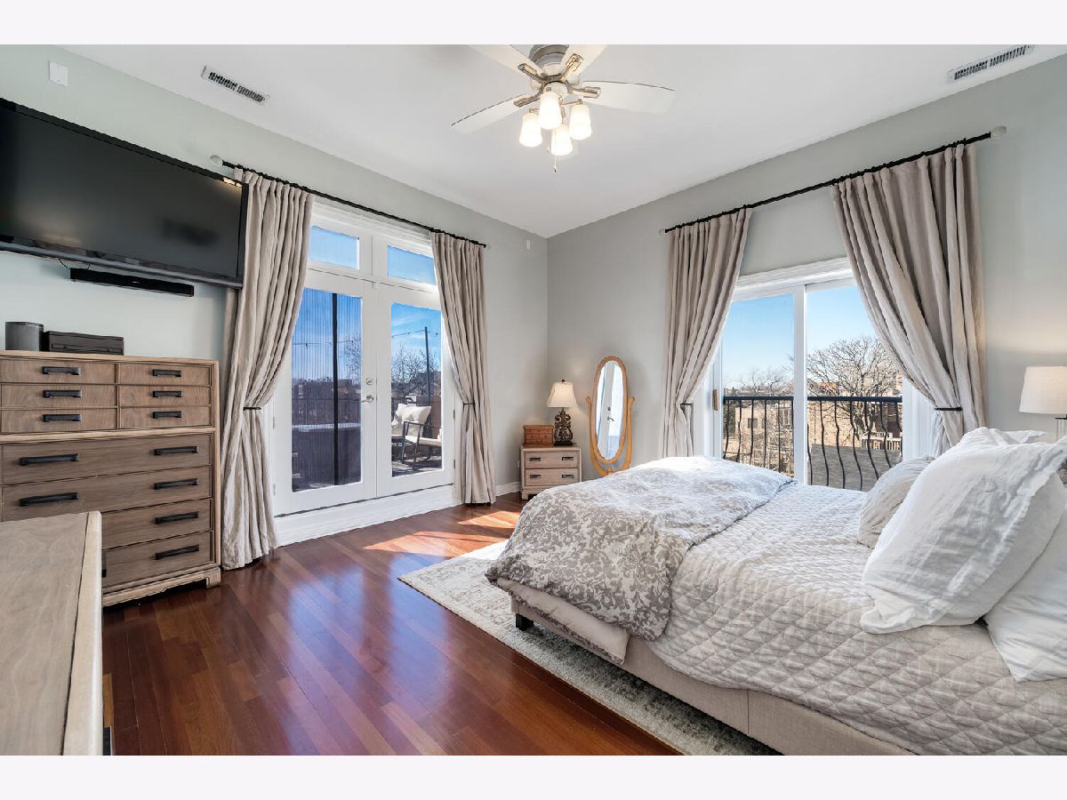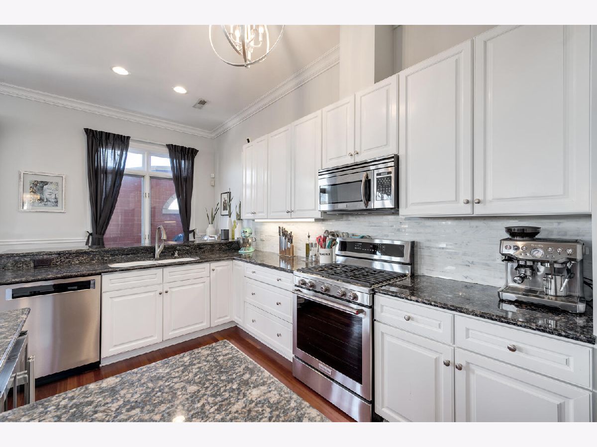 One of a kind corner 3 bed/2 bath penthouse in West Town ELEVATOR building. This condo features two outdoor spaces - east facing balcony with views of the skyline and a west facing patio. There are TWO indoor heated garage parking spots. Large, open living space with 10 ft ceilings, crown molding, open concept living space, and a cozy fireplace. The kitchen offers plenty of room for a full size dining table, white cabinets, newer appliances, large island, wine fridge, breakfast bar, walk-in pantry, tile backsplash, and updated light fixtures. Primary suite is a haven for relaxation with a private deck, large walk-in closet, and ensuite spa bath featuring heated floors, skylight for incredible natural light, steam shower with body jets, and jacuzzi tub. All bedrooms face the backside/side of the building. Great location right across the street from Black Dog Gelato, blocks away from multiple parks, highly-rated restaurants, and just one block to Mariano's.