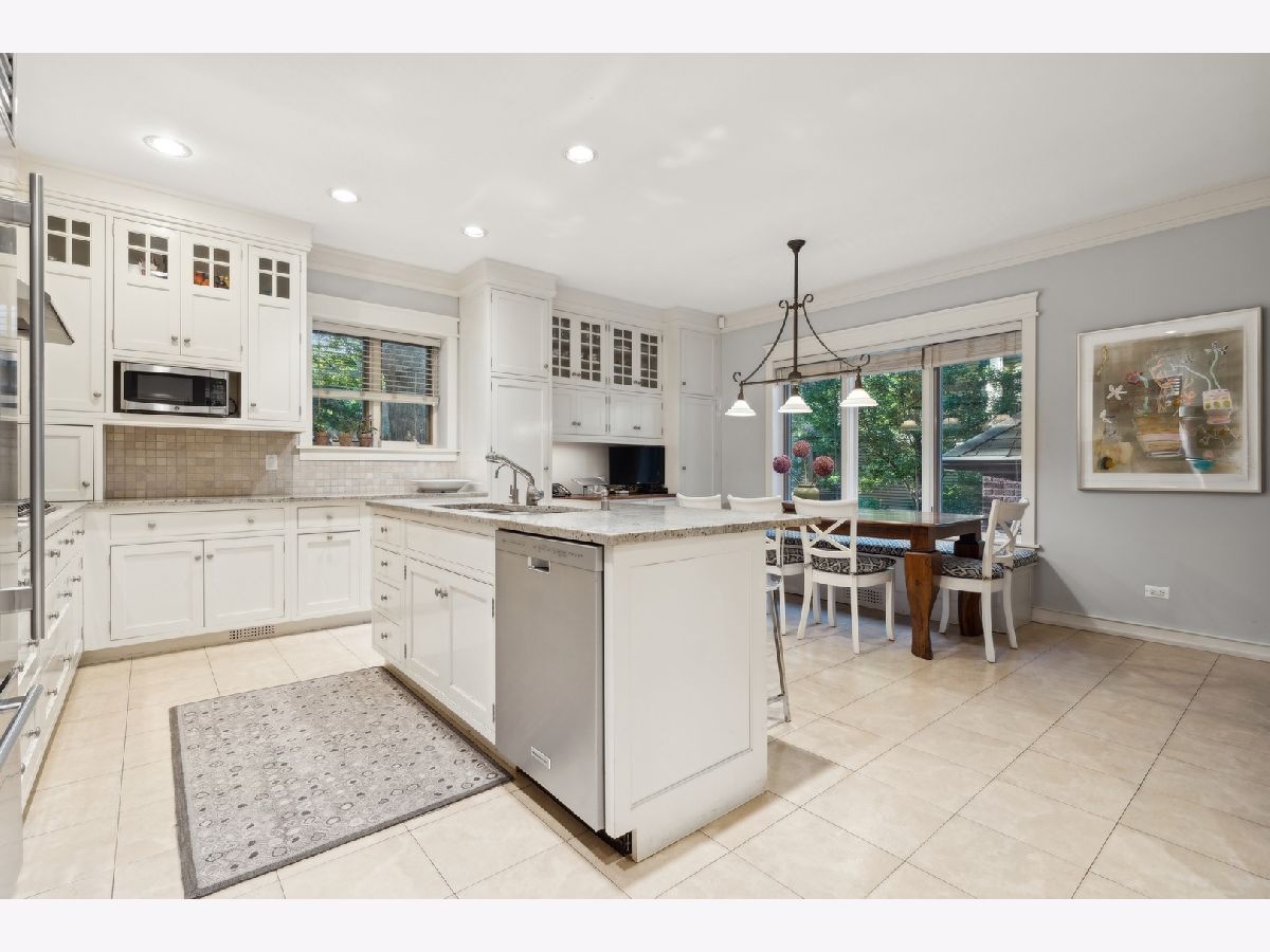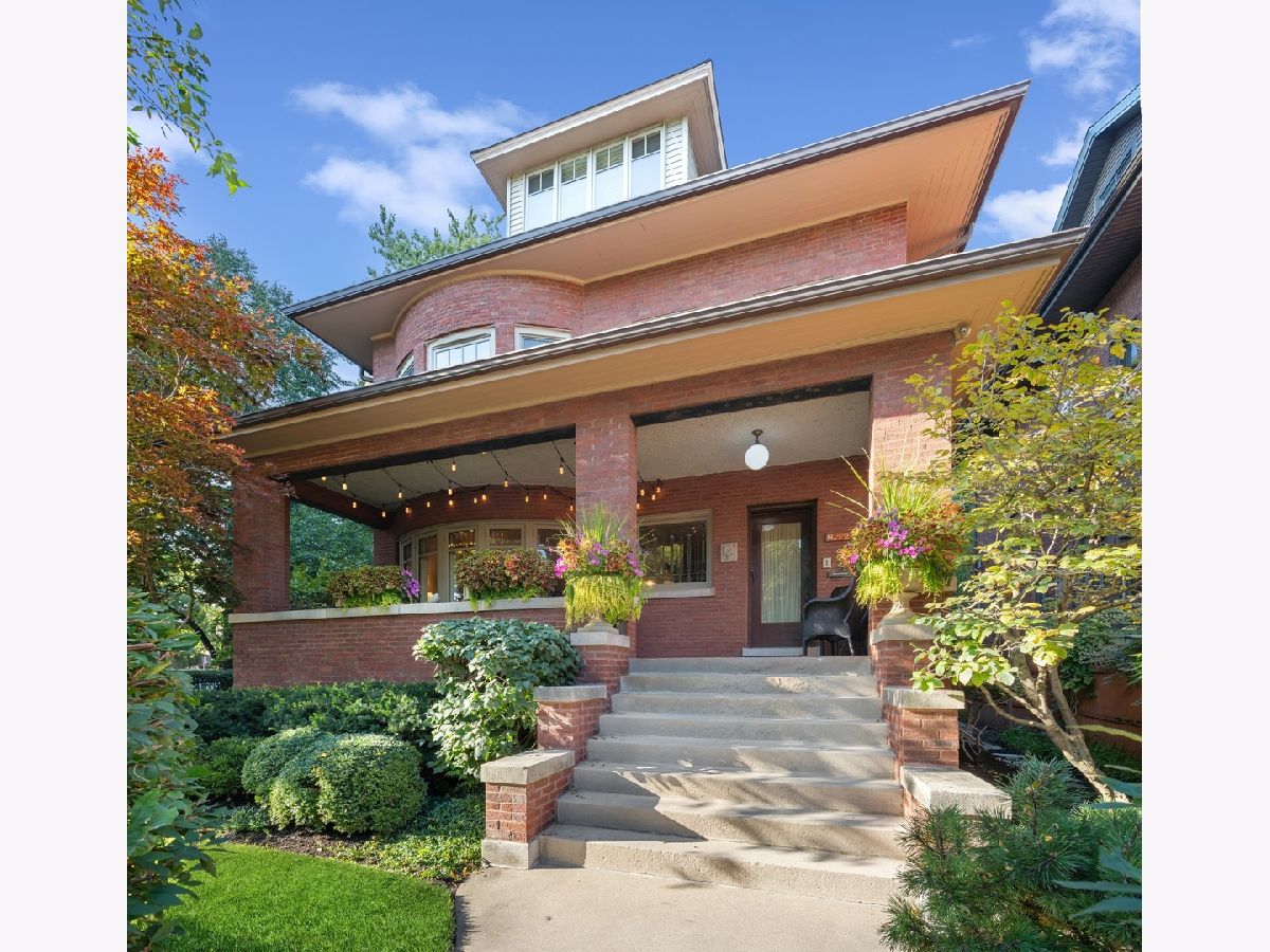 Effortlessly charming and beautifully updated, 852 W. Junior Ter. is a 5 bed/4.5bath, approximately 7,000-square-foot single-family Craftsman built in 1910 with gorgeous green spaces and a two-car garage. Located in Buena Park, a residential gem of a neighborhood in Chicago that's lake-adjacent, this home makes a classic statement from the street with its corner position, original ironwork fencing, brick facade, mature trees, lush landscaping, and covered front porch. Inside, the main level begins with a fabulous foyer that flaunts this home's well-preserved woodwork, stained glass, and turn-of-the-century hardware. The foyer links to a light and bright living room with hardwood floors, a big bay window, a wood-burning fireplace, and built-in bookcases - and a delightful sunroom with leaded glass window details. The main level also features a large formal dining room with a coffered ceiling and an enviable chef's kitchen with custom white Shaker cabinetry, granite countertops, professional-grade appliances, an island with counter seating, a built-in banquette and desk, and a walk-in butler's pantry with display shelving, plus an adjacent mudroom that connects to the garage. Upstairs, the second level presents a bright secondary bedroom with treetop views and a walk-in closet, a full hallway bath, a handsome WFH office with more beautiful built-ins, an upstairs laundry room, and the home's spectacular primary suite. Sizable and well-appointed, the primary bedroom features two walk-in closets (one of which is a 10.5' x 19.5' sunroom that was converted into a custom dressing room but could easily be converted back based on preference) and a spa-like ensuite bath with a dual vanity, a soaking tub, and a standalone shower. The top floor features a stylish family room with vaulted ceilings and built-ins that are great for a homework area, another large bedroom with a cozy window seat, a full bath, a second office, and a walk-in storage closet. But there's more... The fully finished basement level comes complete with a spacious rec/media room, a guest bedroom, a gym, a full bath and a kitchenette that make this space perfect for generational living or an au pair. Additional callout details include design-forward light fixtures, custom wallcoverings, original French doors, and an abundance of storage, plus front and side yards, a paver patio and a private driveway. Close to the walking/biking path along the lakefront, Montrose Beach and Lake Shore Drive, and a short commute to some of Chicago's best schools including Lycee Francais and Sacred Heart, 852 W. Junior Ter. is a rare find in the city!