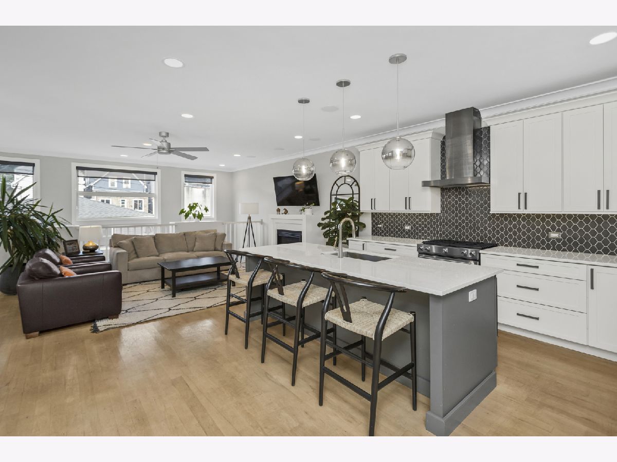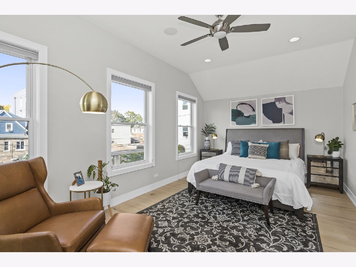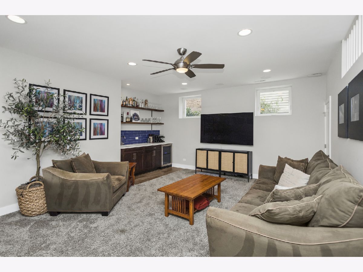 This stunning luxury home is located on a picturesque, tree-lined street in West Town, surrounded by newly built homes and just steps from Humboldt Park and a short distance to Smith Park. Custom-built with thoughtful details throughout, the home sits on an extra-wide 35' lot. The exterior is clad in durable Hardie board, complemented by a charming front porch, planters along the south side, a spacious backyard, and a 3-car garage. Inside, natural light pours in through 14 large windows, creating a bright and airy atmosphere. Blonde maple floors further enhance the light-filled feel of the home. The stylish kitchen boasts gray and white cabinetry, quartz countertops, stainless steel appliances, and a large island with a breakfast bar-perfect for casual dining. The lower level offers a cozy family room, wet bar, two additional bedrooms, a full bath, radiant heated floors, and additional laundry room. It's a perfect setup for an Au pair or in-law suite. Upstairs, you'll find three more bedrooms and two bathrooms, including the luxurious primary suite with a walk-in closet, skylight, and a spa-like bath featuring heated floors, dual vanities, a soaking tub, and a separate shower. Additional features include built-in speakers throughout, Grohe fixtures, two fireplaces, and dual-zoned HVAC. This home is truly a must-see! Enjoy the convenience of walking to popular local spots like Spinning J's, Segnatore, and Flying Saucer. Both Smith Park and Humboldt Park are just a short stroll away, with easy access to the Western Metra station, biking routes, and bus lines for a quick commute.