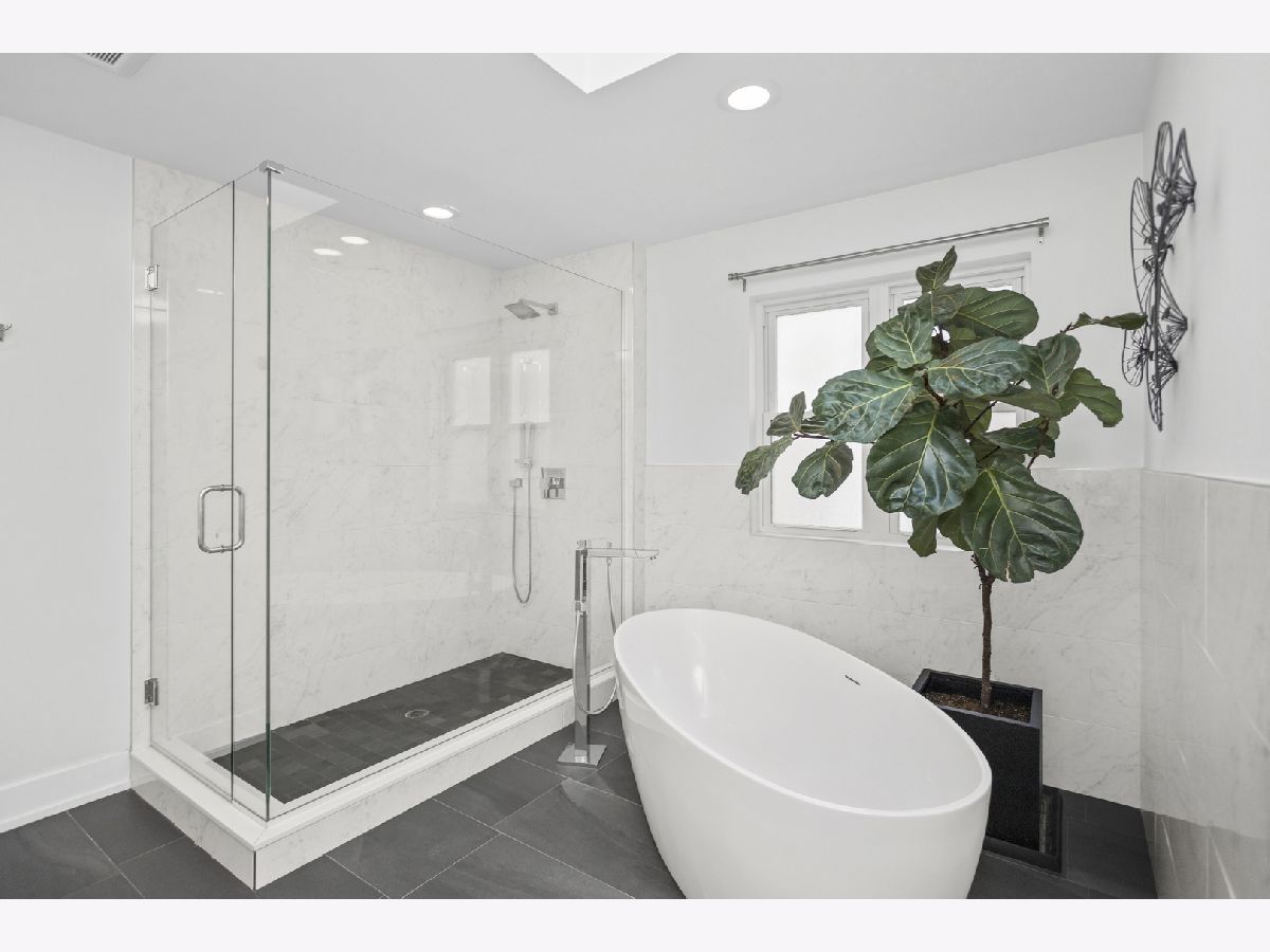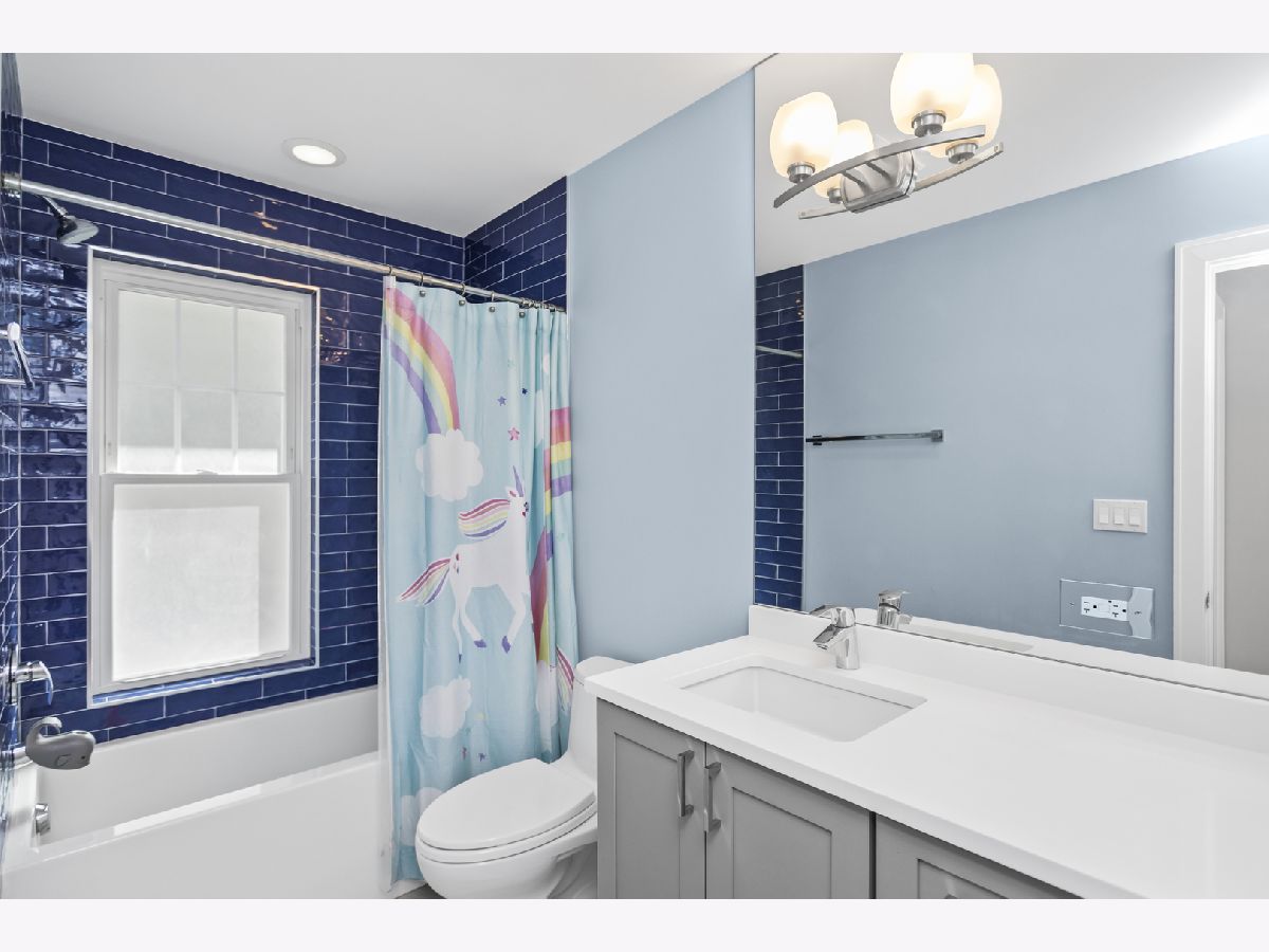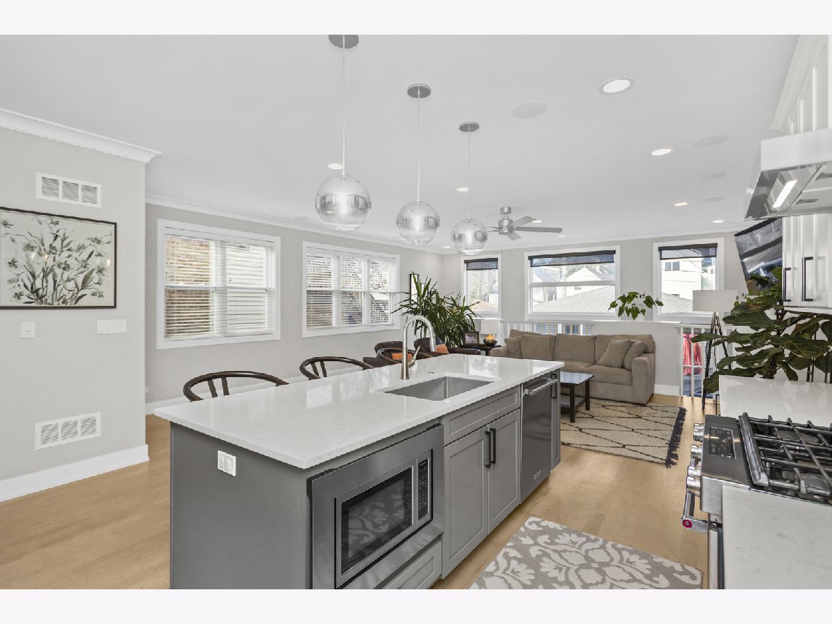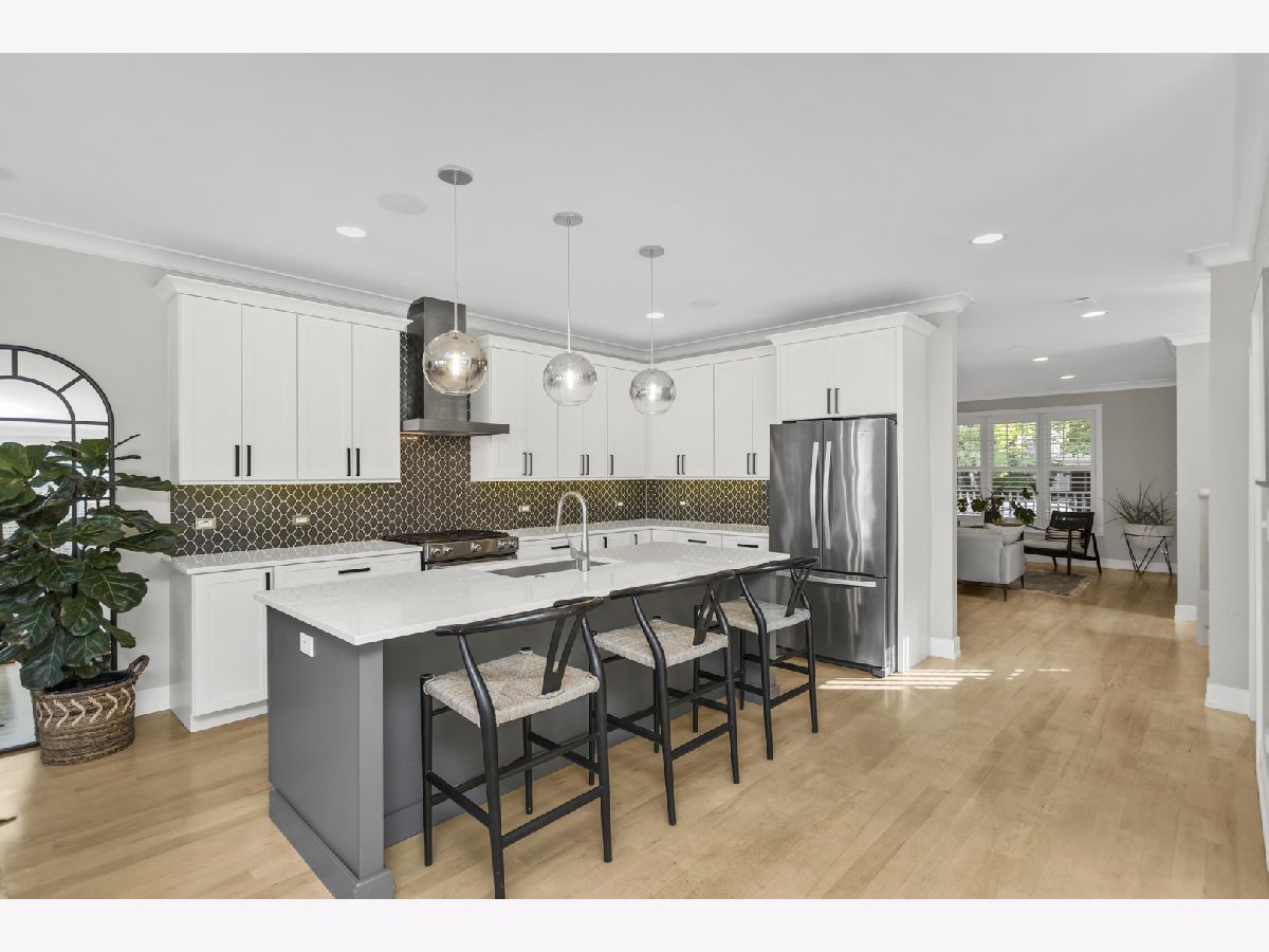 This stunning luxury home is located on a picturesque, tree-lined street in West Town, surrounded by newly built homes and just steps from Humboldt Park and a short distance to Smith Park. Custom-built with thoughtful details throughout, the home sits on an extra-wide 35' lot. The exterior is clad in durable Hardie board, complemented by a charming front porch, planters along the south side, a spacious backyard, and a 3-car garage. Inside, natural light pours in through 14 large windows, creating a bright and airy atmosphere. Blonde maple floors further enhance the light-filled feel of the home. The stylish kitchen boasts gray and white cabinetry, quartz countertops, stainless steel appliances, and a large island with a breakfast bar-perfect for casual dining. The lower level offers a cozy family room, wet bar, two additional bedrooms, a full bath, radiant heated floors, and additional laundry room. It's a perfect setup for an Au pair or in-law suite. Upstairs, you'll find three more bedrooms and two bathrooms, including the luxurious primary suite with a walk-in closet, skylight, and a spa-like bath featuring heated floors, dual vanities, a soaking tub, and a separate shower. Additional features include built-in speakers throughout, Grohe fixtures, two fireplaces, and dual-zoned HVAC. This home is truly a must-see! Enjoy the convenience of walking to popular local spots like Spinning J's, Segnatore, and Flying Saucer. Both Smith Park and Humboldt Park are just a short stroll away, with easy access to the Western Metra station, biking routes, and bus lines for a quick commute.