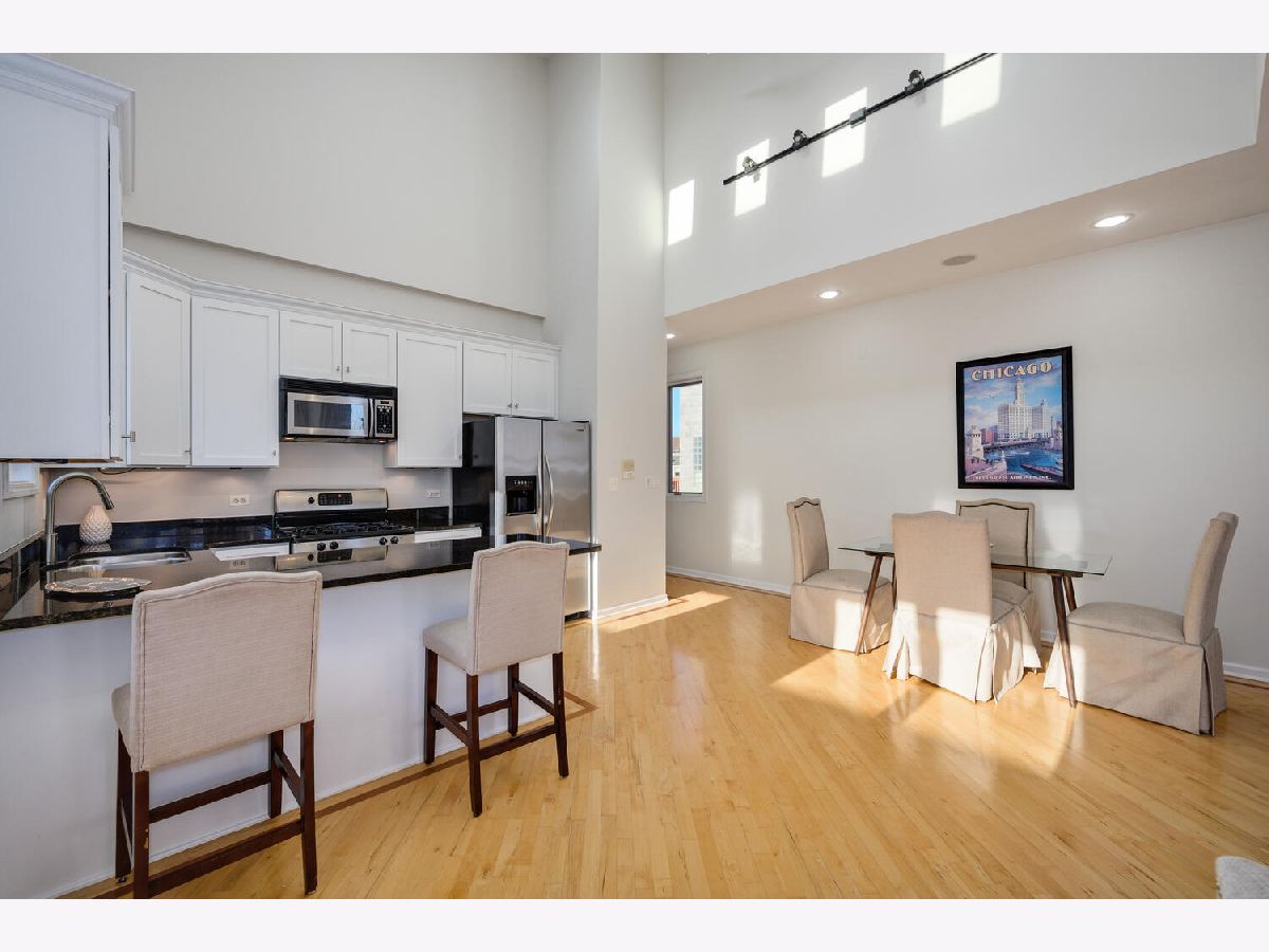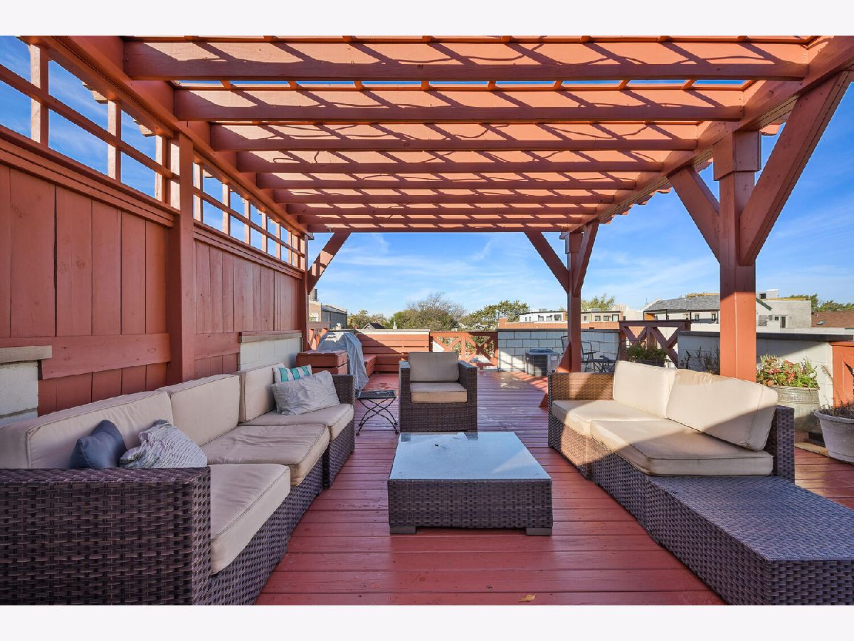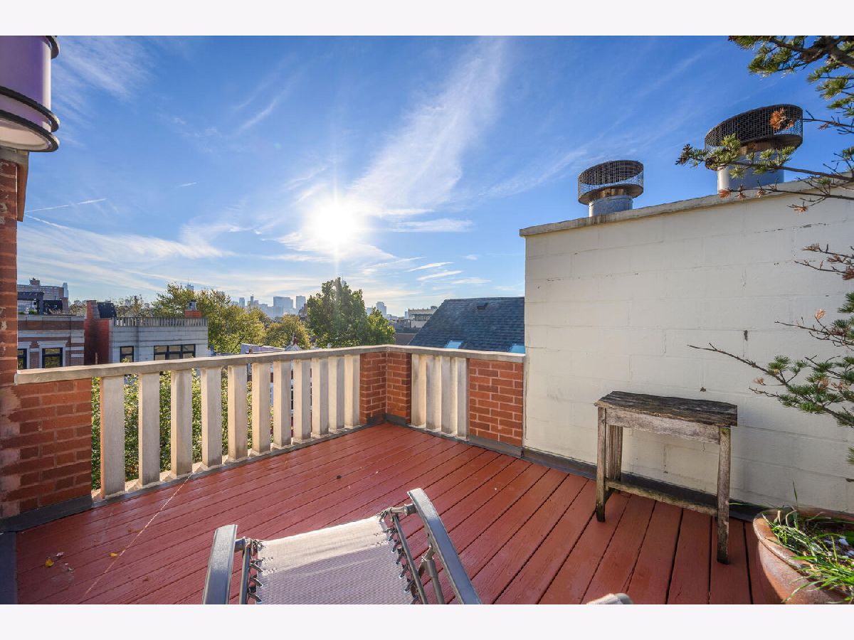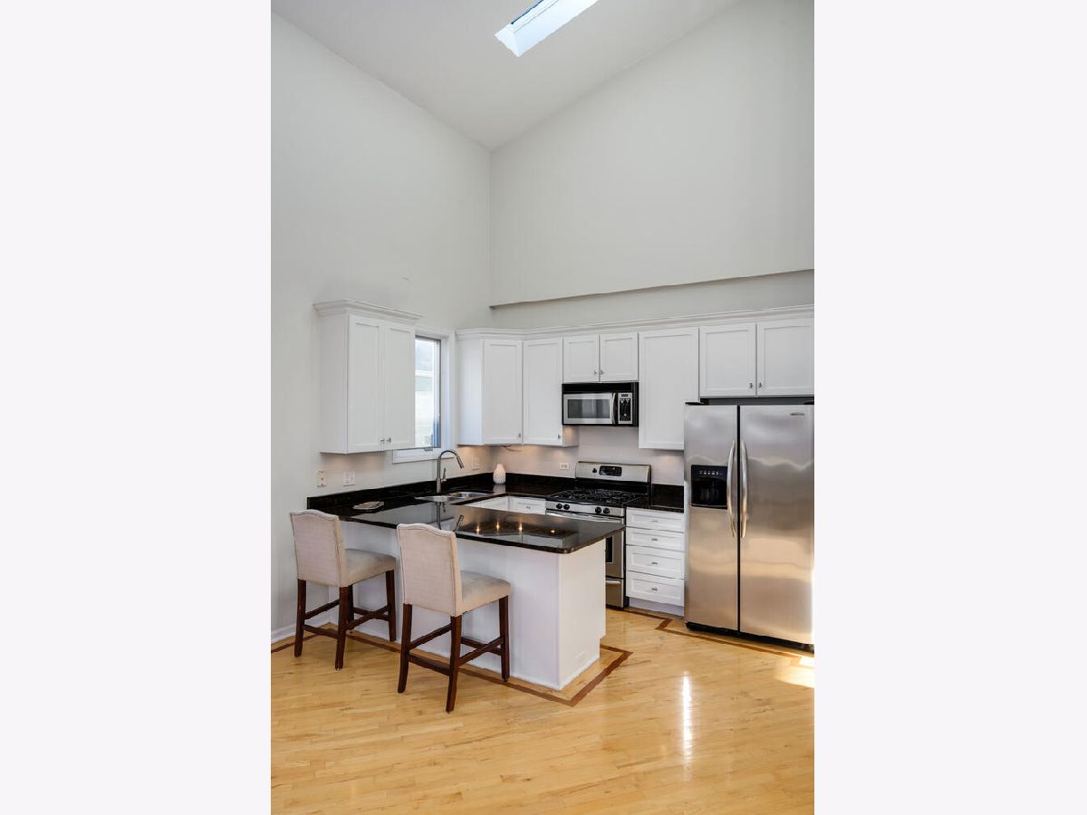 Very cool, lofty East Village 2 Bedroom, 2 bath Penthouse has it all with garage parking space and huge private and fabulous roof top deck! This Open and airy unit has private entry staircase with Exposed brick to a jaw dropping living space with soaring ceilings, skylights and great living space! This unit is flooded with sunlight and features maple wood floors, fireplace, Open kitchen with white cabinets, granite counters and stainless appliances, generous bedrooms sizes included king sized primary bedroom suite with updated bath with walk in shower and subway tile. Other highlights include custom drapery, updated lighting, laundry in unit, freshly painted so ready to move right in! Interior staircase leads to storage area and an awesome private roof top deck with pergola and skyline views! Additional storage outside of unit in basement and 1 on site Garage parking space Included! Fantastic Hot location very convenient to CTA blue line, Division Street & Chicago Avenue corridor for top shopping, dining, bars and grocery store!