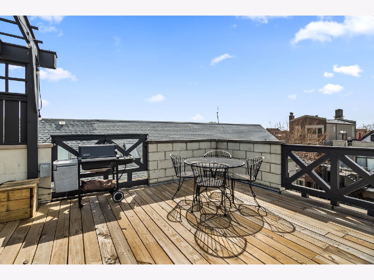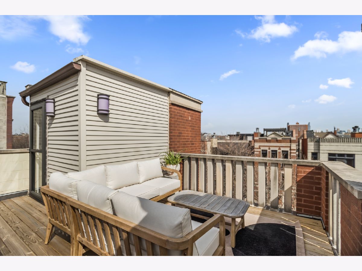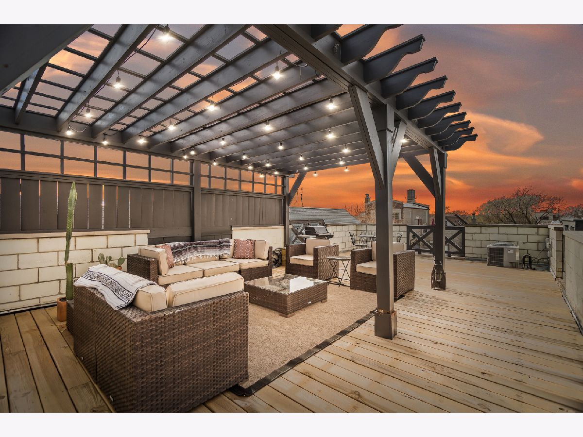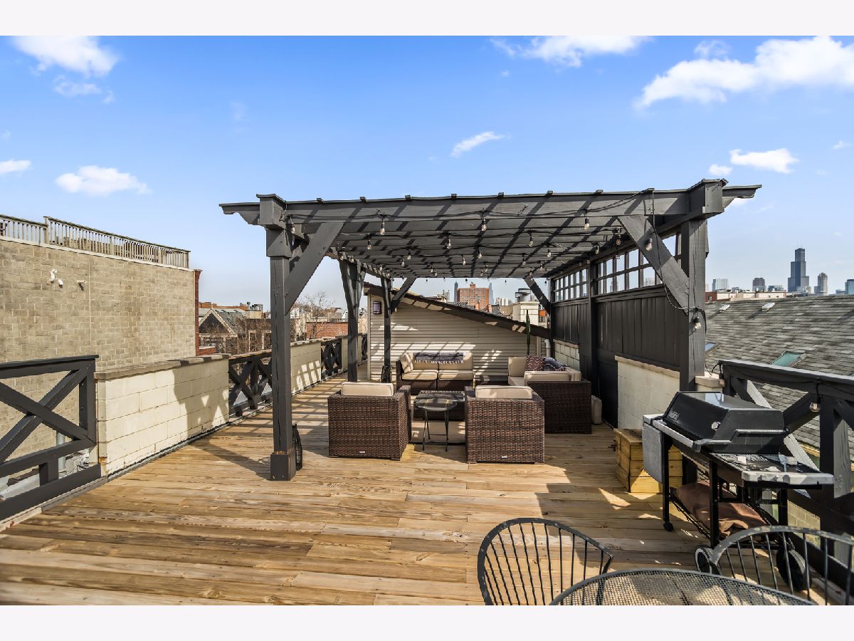 Experience the best of East Village living in this stunning 2-bedroom, 2-bath penthouse suite, complete with a spectacular private rooftop deck! This open and airy unit boasts a private entry staircase with interior exposed brick, leading to an impressive living space with soaring high ceilings, skylights, and abundant natural light. The home features maple hardwood floors, a fireplace, and an open kitchen equipped with granite countertops and stainless-steel appliances. The bedrooms are generously sized, including a king-sized primary suite with access to a private outdoor deck via sliding glass door and an updated primary bathroom featuring a walk-in shower. An interior staircase with floor-to-ceiling windows and interior exposed brick provides exclusive access to a private rooftop retreat with 360 degree skyline views, complete with a lounge area that opens to a massive gathering space covered by a HUGE pergola. Gas and water hookups make this a perfect space for grilling and hosting guests! One garage parking space and oversized extra storage closet are included in the price! Located in prime West Town, this home is just steps away from bustling Chicago Avenue and Division Street with some of the best shopping, entertainment and nightlife in Chicago! Just a short walk to the CTA Blue Line Train, Target and Eckhart Park. Schedule a showing today!