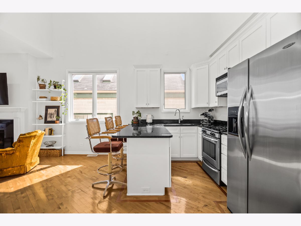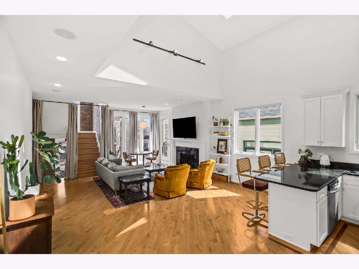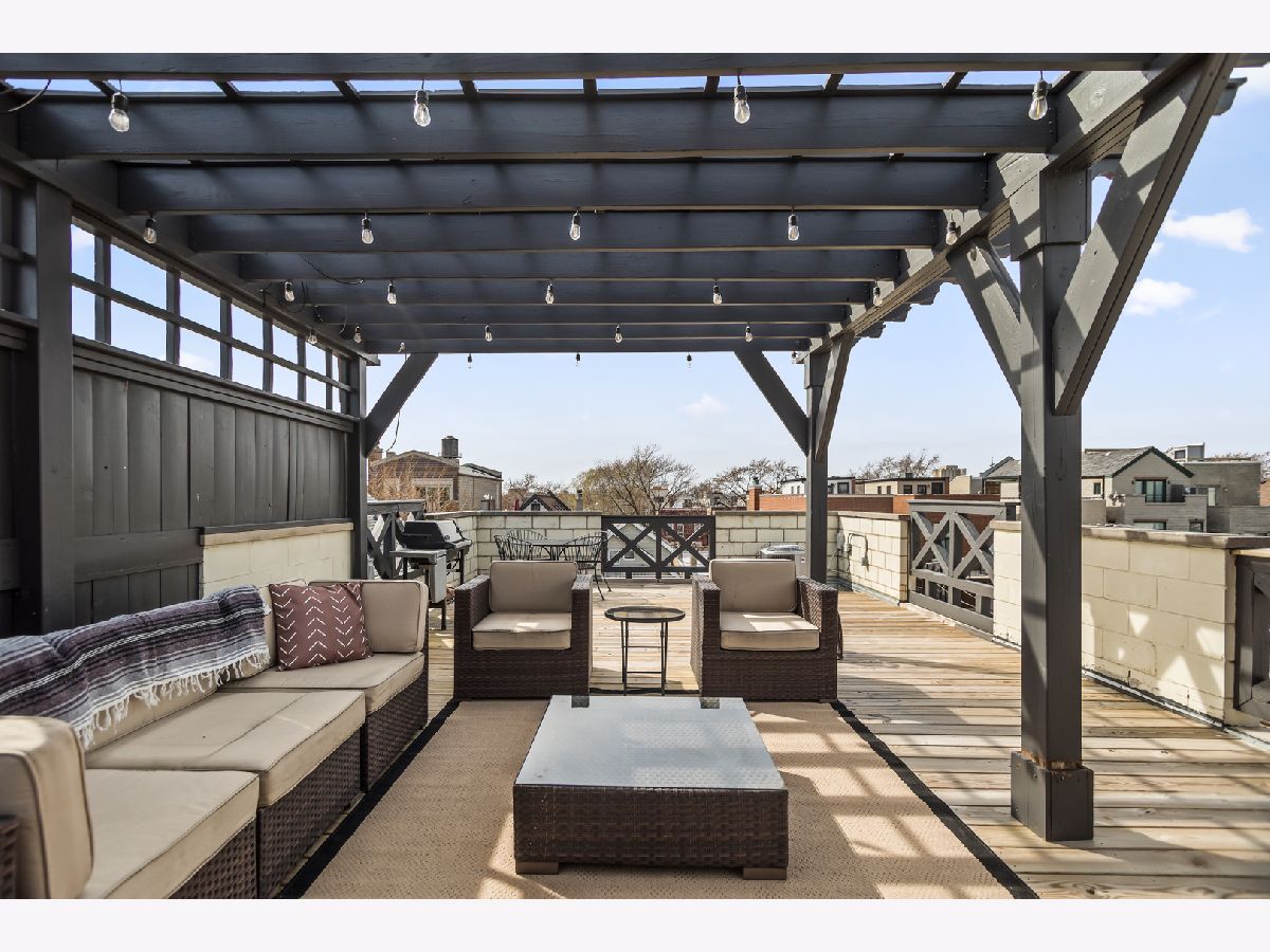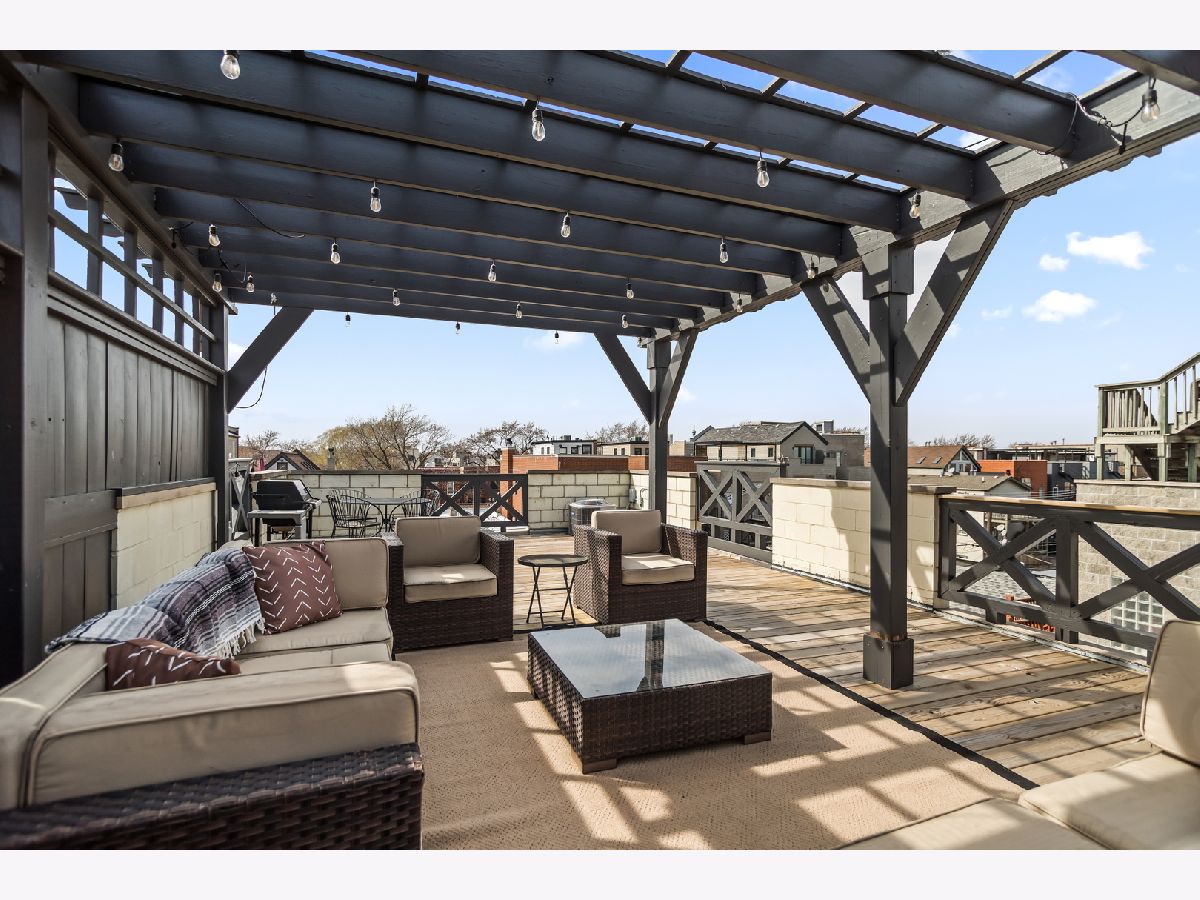 Experience the best of East Village living in this stunning 2-bedroom, 2-bath penthouse suite, complete with a spectacular private rooftop deck! This open and airy unit boasts a private entry staircase with interior exposed brick, leading to an impressive living space with soaring high ceilings, skylights, and abundant natural light. The home features maple hardwood floors, a fireplace, and an open kitchen equipped with granite countertops and stainless-steel appliances. The bedrooms are generously sized, including a king-sized primary suite with access to a private outdoor deck via sliding glass door and an updated primary bathroom featuring a walk-in shower. An interior staircase with floor-to-ceiling windows and interior exposed brick provides exclusive access to a private rooftop retreat with 360 degree skyline views, complete with a lounge area that opens to a massive gathering space covered by a HUGE pergola. Gas and water hookups make this a perfect space for grilling and hosting guests! One garage parking space and oversized extra storage closet are included in the price! Located in prime West Town, this home is just steps away from bustling Chicago Avenue and Division Street with some of the best shopping, entertainment and nightlife in Chicago! Just a short walk to the CTA Blue Line Train, Target and Eckhart Park. Schedule a showing today!