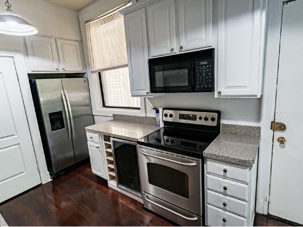 They don't build them like this anymore!!! Located on Hyde Park's historic Drexel Square this vintage 4bd/2bth spacious (2000 sq ft) condominium boasts high ceilings and rests inside a classic red brick multi-unit building a short distance from the University of Chicago campus. Open social floorplan the kitchen has ample cabinet space with folding butcher block with stainless steel appliances including range with overhead microwave and vent, dishwasher, wine cooler and refrigerator. Large sun room, big windows and open design allows for ample natural light. Spacious closet with in unit washer/dryer stacked combo and additional storage space. Classic hardwood flooring throughout most of the unit and it's open living concept provides great space for entertaining. Master bathroom has spacious jacuzzi tub. All appliances Included: Stainless Steel Range, Stainless Steel Overhead Microwave & Vent, Stainless Steel Refrigerator, stainless steel wine cooler, stainless steel dishwasher and new washer/dryer stacked combo.