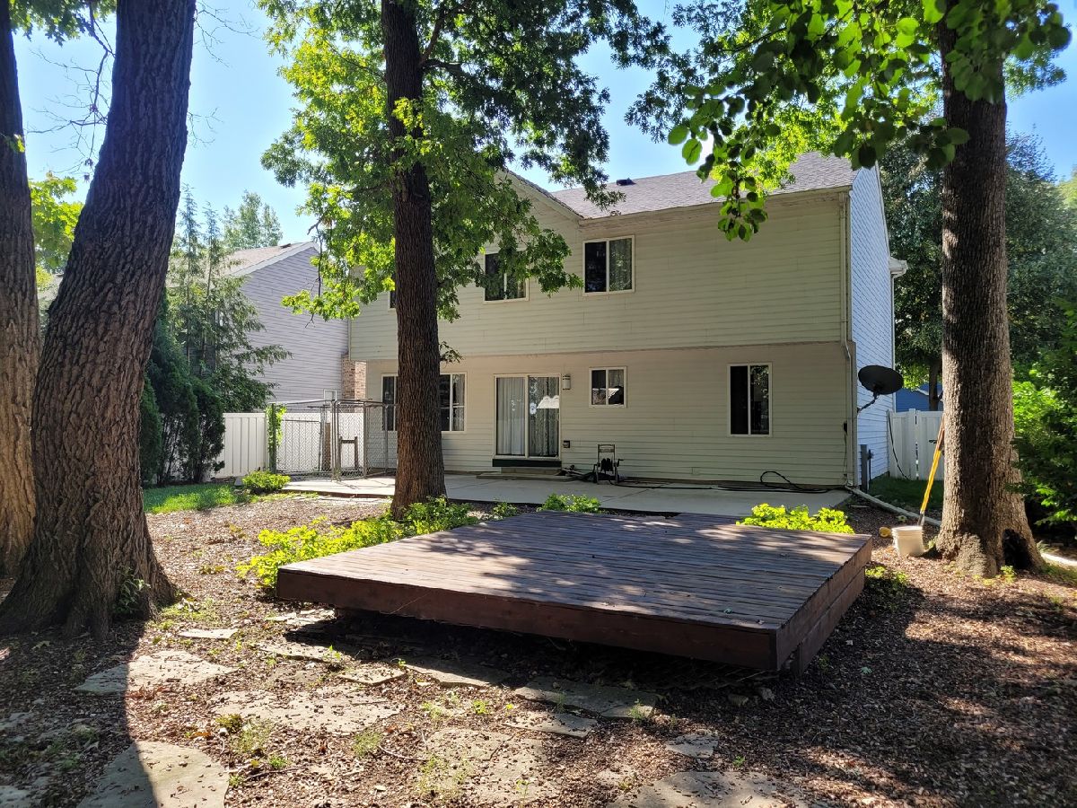 RARELY AVAILABLE home in desirable Hickory Cove! 4 bedroom home located on quiet dead end street, wooded lot with backyard that overlooks conservation area. All new wood laminate flooring throughout and freshly painted in neutral colors. New carpeted stairs and hallway. Spacious primary bedroom has wall of closets and also walk in that could be converted to a full bath. Bright and sunny loft area. Unfinished bonus room to finish anyway you wish. So much room for storage in the full unfinished basement and plumbed for future bathroom. Maintenance free privacy fence complete with dog run. Large concrete patio and deck. New roof 2020, dishwasher 2019, water heater 2018, water softener 2017. Neighborhood private boat launch, docks and park area with large firepit! This one won't last long!