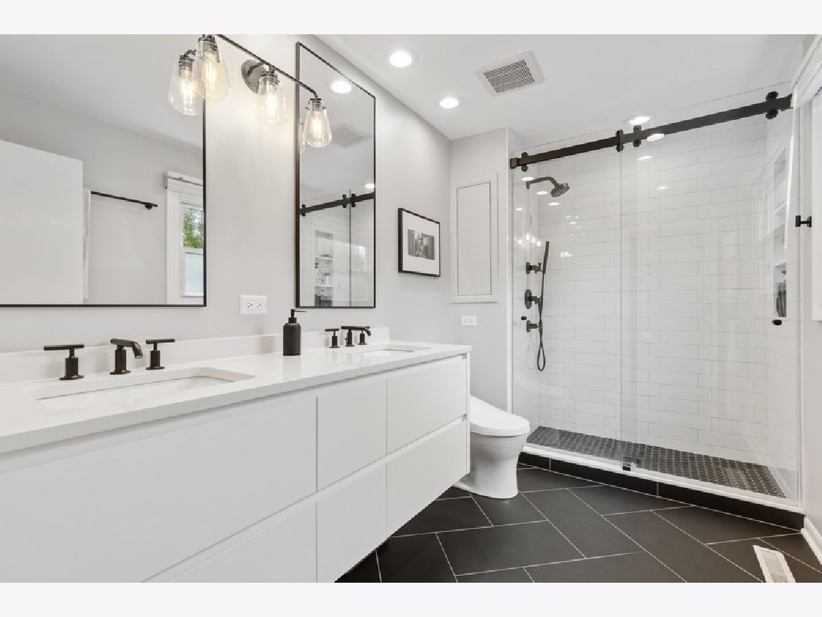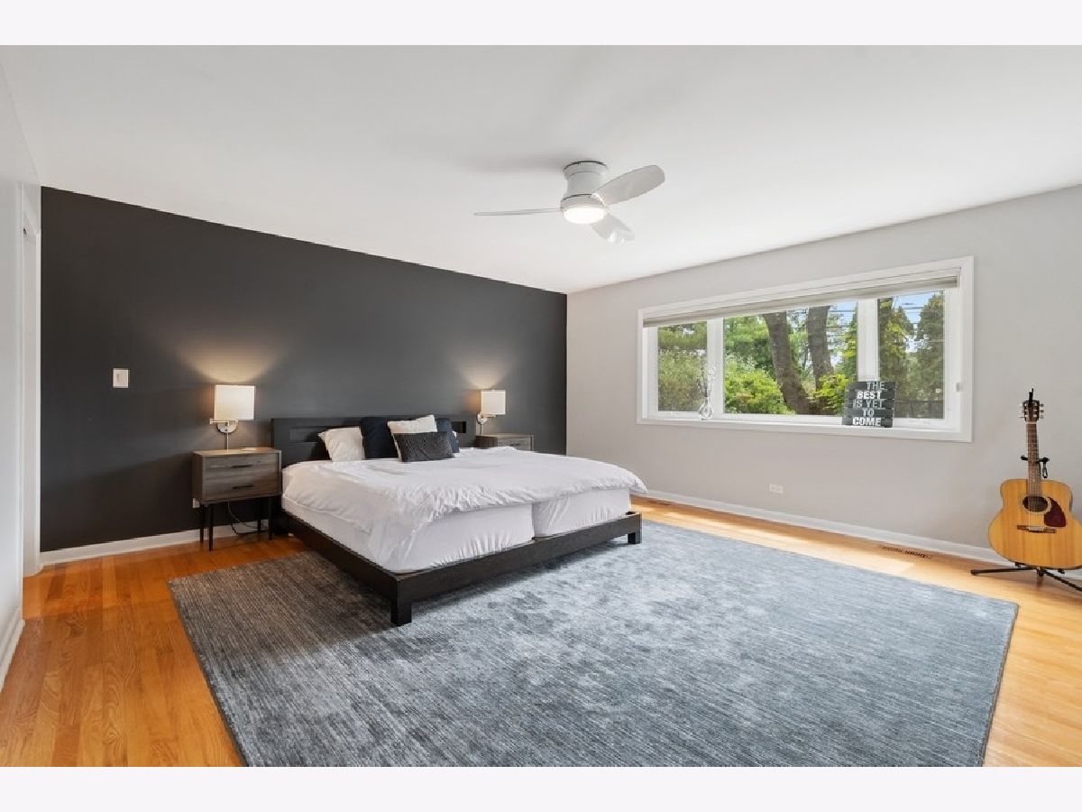 Phenomenal, updated and expanded mid-century modern in East HP! Buyers will adore the newly renovated (2021) primary bathroom featuring subway tile, barn door shower door, double sinks, up to the minute finishes, plus dream closet! 2005 addition of master suite and downstairs bonus room. Open floor plan with fresh neutral paint, hardwood floors, vaulted ceilings and huge windows providing an abundance of natural light. Lovely updated eat-in kitchen w/granite countertops, stainless appliances, subway tile backsplash, neutral wood cabinetry, and huge window overlooking fenced and newly landscaped spacious backyard. Expansive lower level family room with fireplace leads to bonus room now being used an an office/work out room with three sides of windows to provides tons of light & walk out to the backyard. Powder room in lower level. Huge mud/laundry room with great storage. 2 generous sized family bedrooms upstairs share a renovated hall bath and 3rd bedroom has an en-suite bathroom - all bedrooms have hardwood floors! Underground sprinkler system, tons of storage, wonderful neighborhood! Fabulous location close to Ravinia, Botanic Gardens and the lake - this one checks all the boxes! This is a Relo property. Relo addendum required.