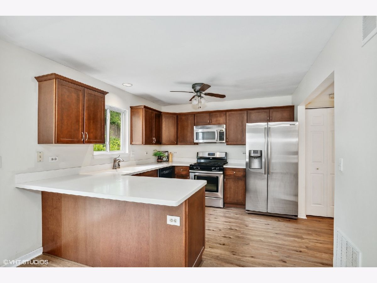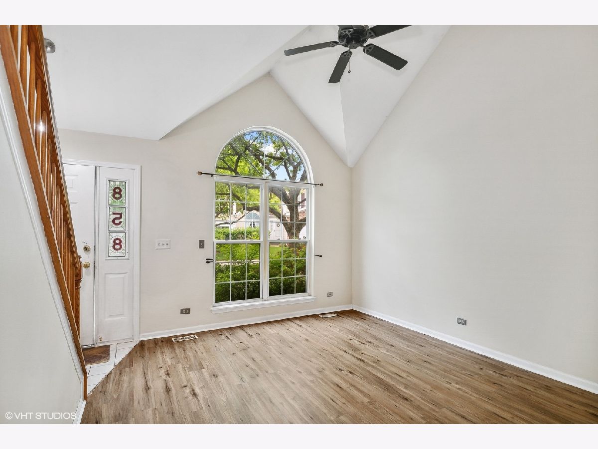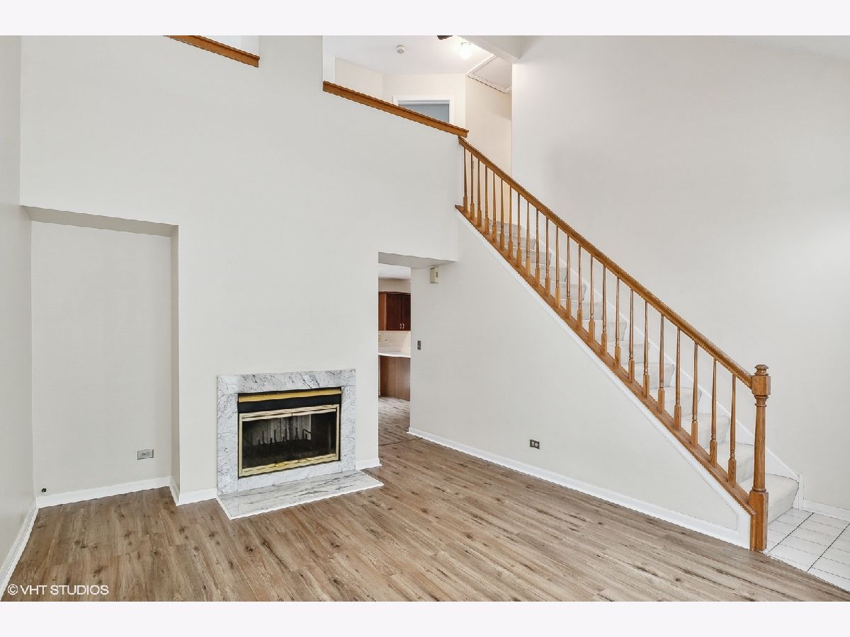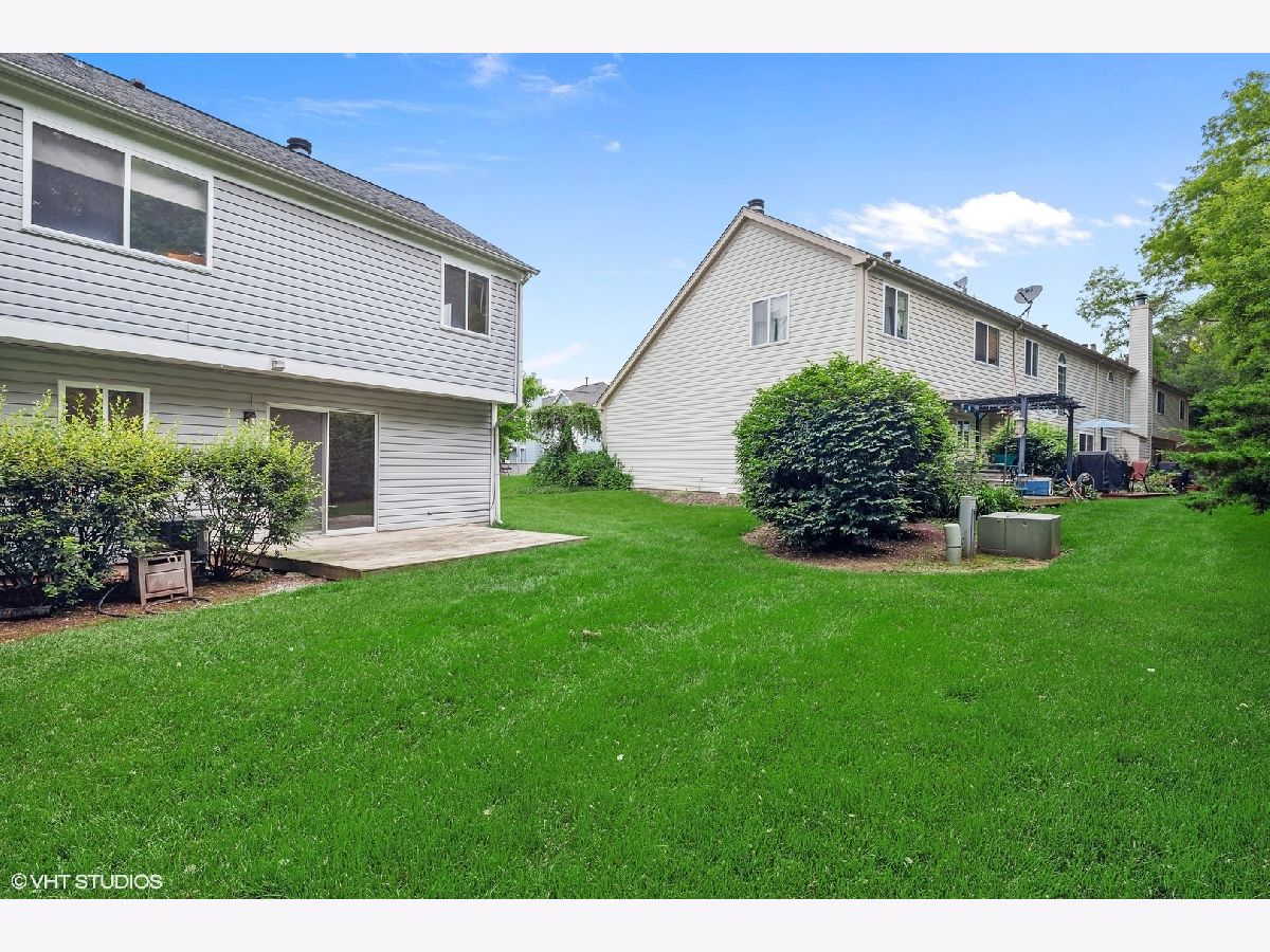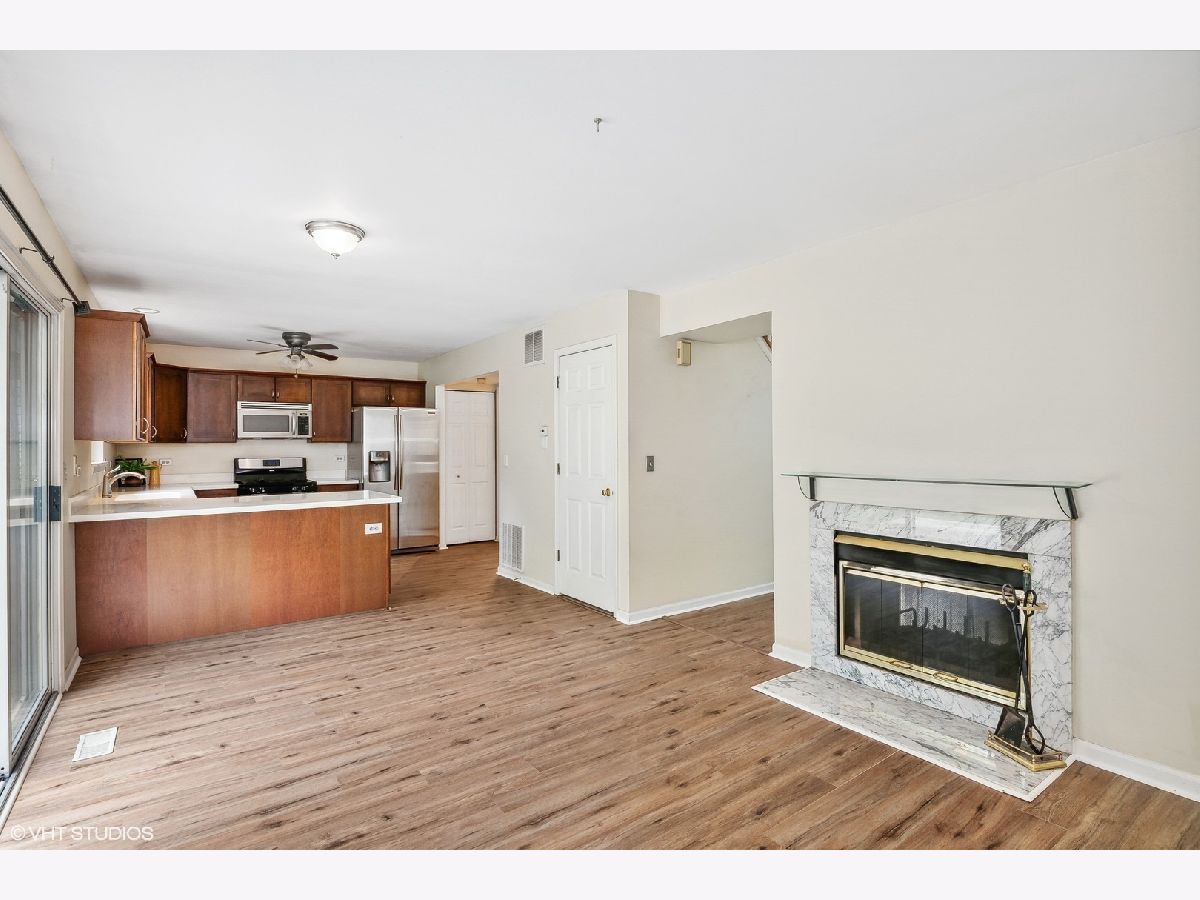 Bright End Unit with private entry and it backs to wooded green space (no neighbors behind you). The highlight of this Dorchester Model is the Two-Sided wood burning fireplace that can be enjoyed from either the 2-story living room or the family room/kitchen eating area. Spacious kitchen with breakfast bar, room for a table, SS appliances, pantry closet which opens into the family room and sliders to the deck and backyard. The bedroom level includes a large loft that can easily be converted to a 3rd bedroom. Convenient 1st floor laundry/mudroom connects to the 1-car garage with storage. Move-in and enjoy the newly installed vinyl plank flooring throughout the main level. Short distance to Metra, schools, shopping and Converse Park with biking/hiking trails, playground, ball fields, picnic area even a pavilion for summer concerts is across Rt 176. QUICK-CLOSE is possible. NOTE: The property taxes do not include a homestead exemption.
